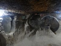 Ein weiterer Eingang führt in einen Felsenkeller, in dem ein begehbares Taufbecken verborgen ist, das mit Bögen geschmückt ist. Nebenan ein Schulraum. Im gegenüberliegenden Felsen eine weitere Kirche und ein großer Raum für die Weinherstellung. Auf der rückwärtigen Seite noch eine Kirche, deren Decke mit Mustern, Weinreben und Granatäpfeln bemalt ist in rot, gelb, weiß und orange, sie wirkt heiter. Da die Eingangswand herausgebrochen ist, fällt viel Licht ein. Auch die Malereien sind hier besser erhalten und erkennbar.