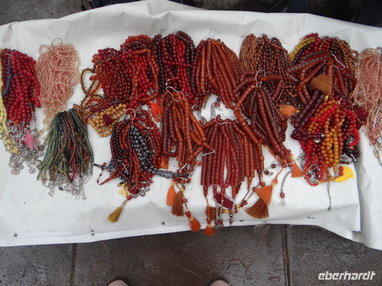 Zunächst besuchen wir die Moschee im Hunat-Hatun-Komplex, einem islamischen religiösen Areal aus dem 13. Jahrhundert. Hierzu gehört auch die Medrese, die Koranschule, in der auch Fächer wie Astronomie, Mathematik und Sprachen unterrichtet wurden. Heute ist der große Hof mit umliegenden Räumen ein Handwerkerhof, in dem die Hersteller ihre Erzeugnisse verkaufen.