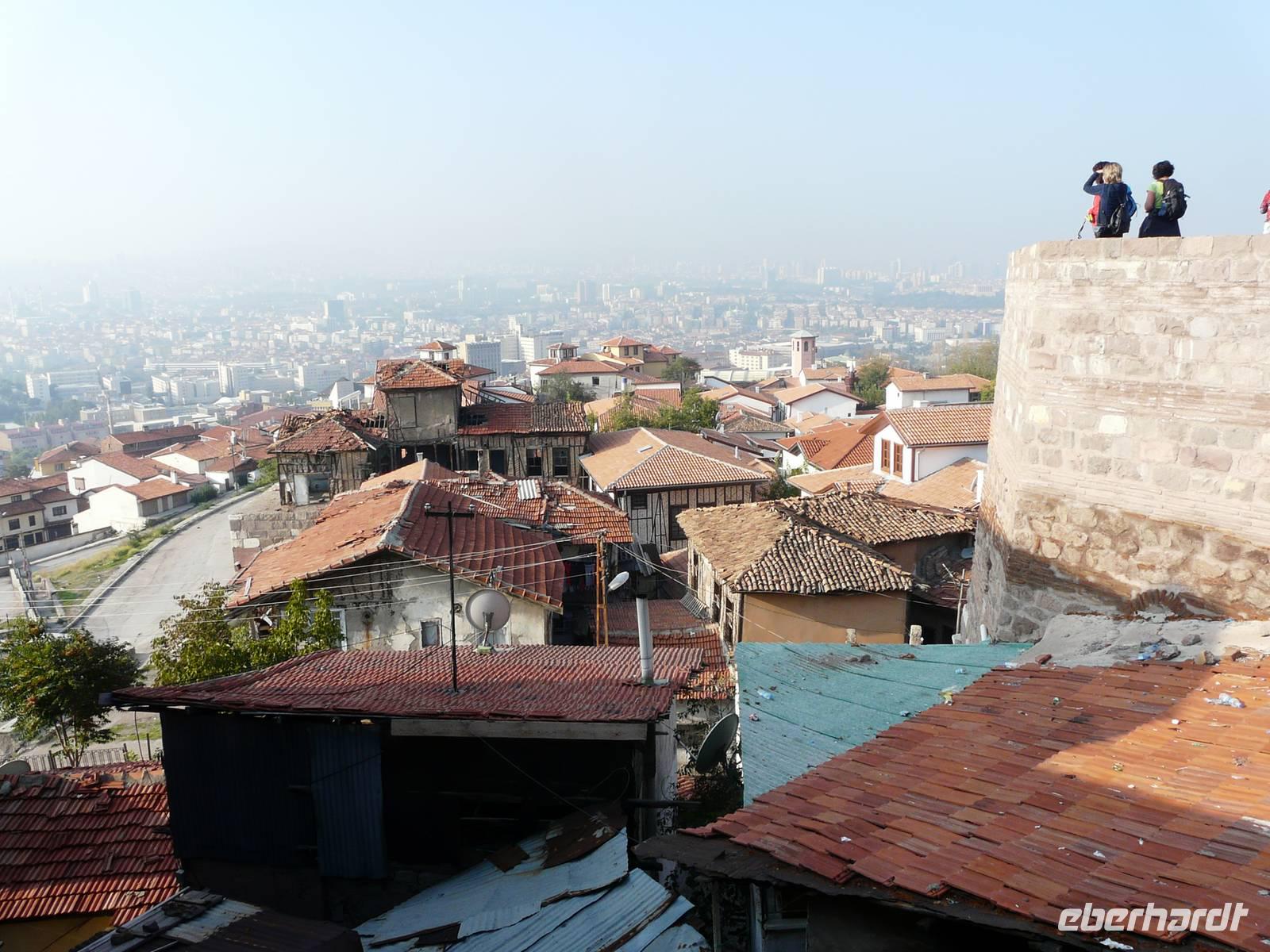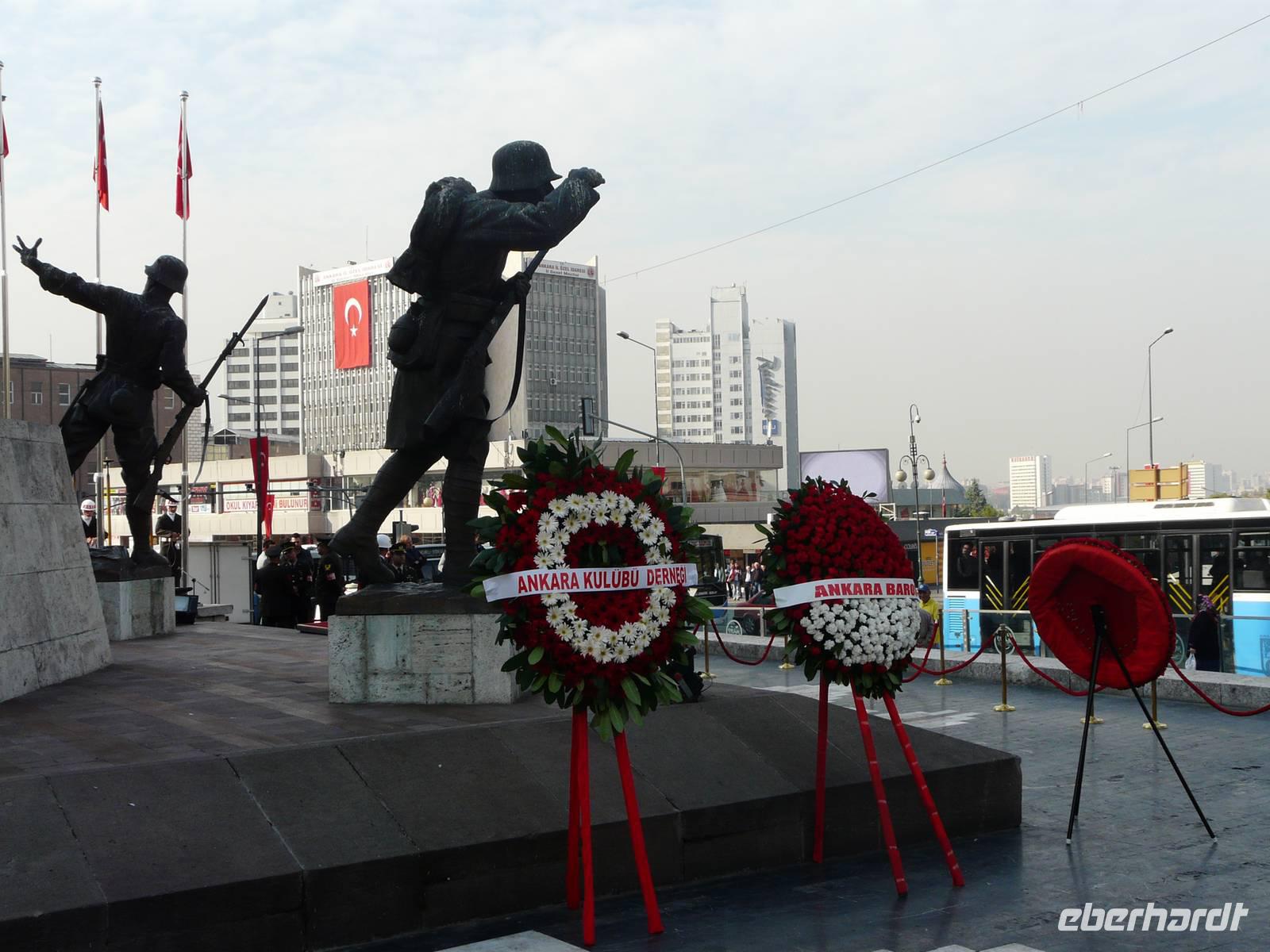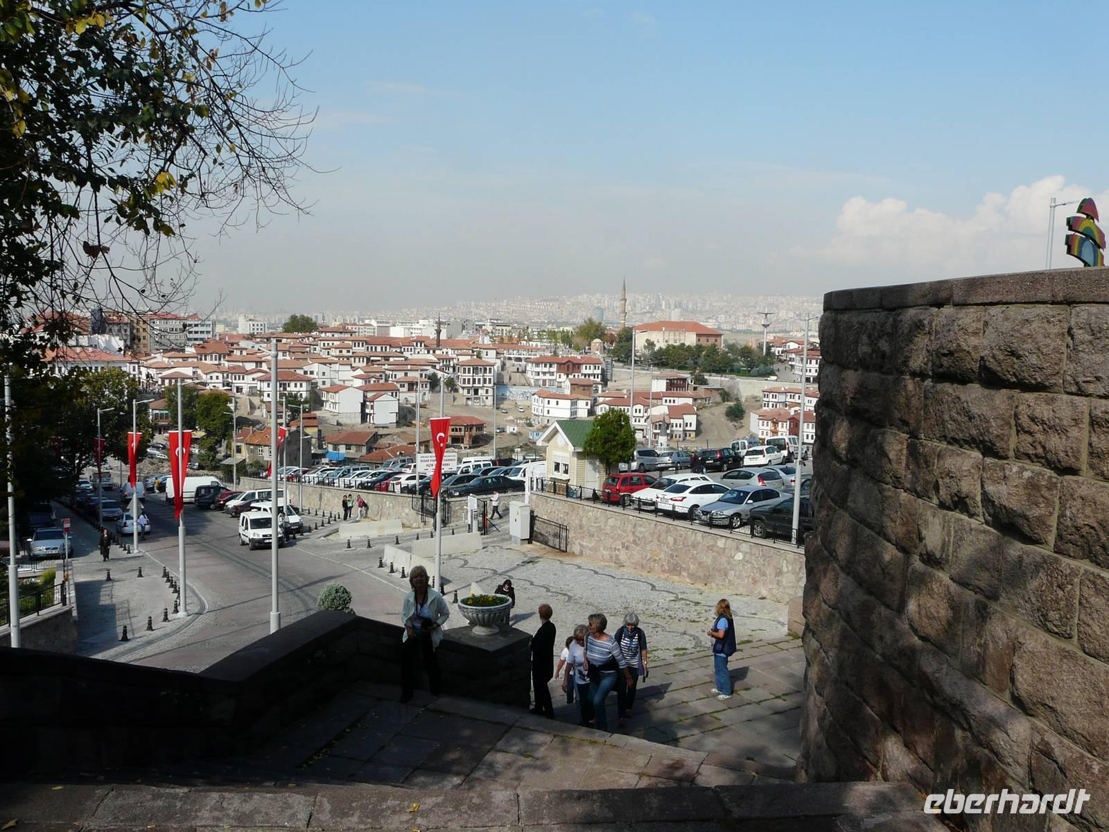 Aufgrund der guten Flugzeiten haben wir am Vormittag noch etwas Zeit und gehen erneut auf Erkundungstour durch Ankara. Ziel ist heute der große Basar der Stadt. Doch schon auf dem Weg dorthin werden wir etwas stutzig. Es ist noch mehr Verkehr als sonst, auch ist viel Polizei unterwegs. Als wir am Reiterdenkmal Atatürks dann auch noch Blumengebinde sehen werden wir neugierig, fragen nach und erfahren, dass heute vor 91 Jahren Ankara zur Hauptstadt der Türkei gemacht wurde. Später sollen wir sogar noch einen kleinen Umzug zum Feiertag sehen. Angekommen am Basar ist es nun wieder eine ganz andere Welt - hier gibt es frischen Fisch, Gemüse und Obst, Gewürze aber auch sämtlich Haushaltsgegenstände, Taschen, Waschmittel, kurz - alles was man für den täglichen Bedarf braucht. Wir machen uns einen Treffpunkt aus und so kann jeder individuell durch die Stände stöbern. Später laufen wir noch einmal Richtung Festung und genießen ein letztes Mal den einmaligen Blick über Ankara.