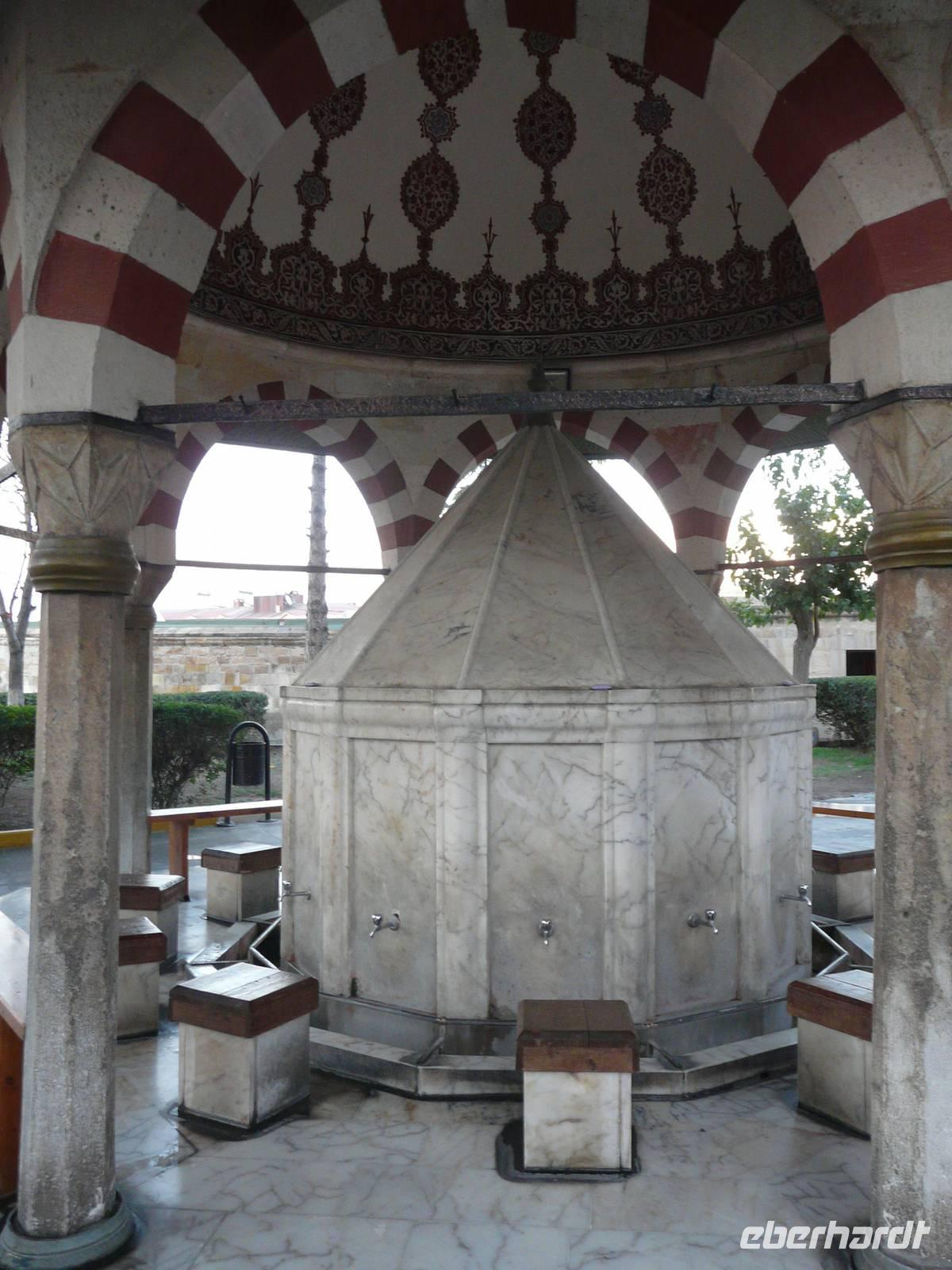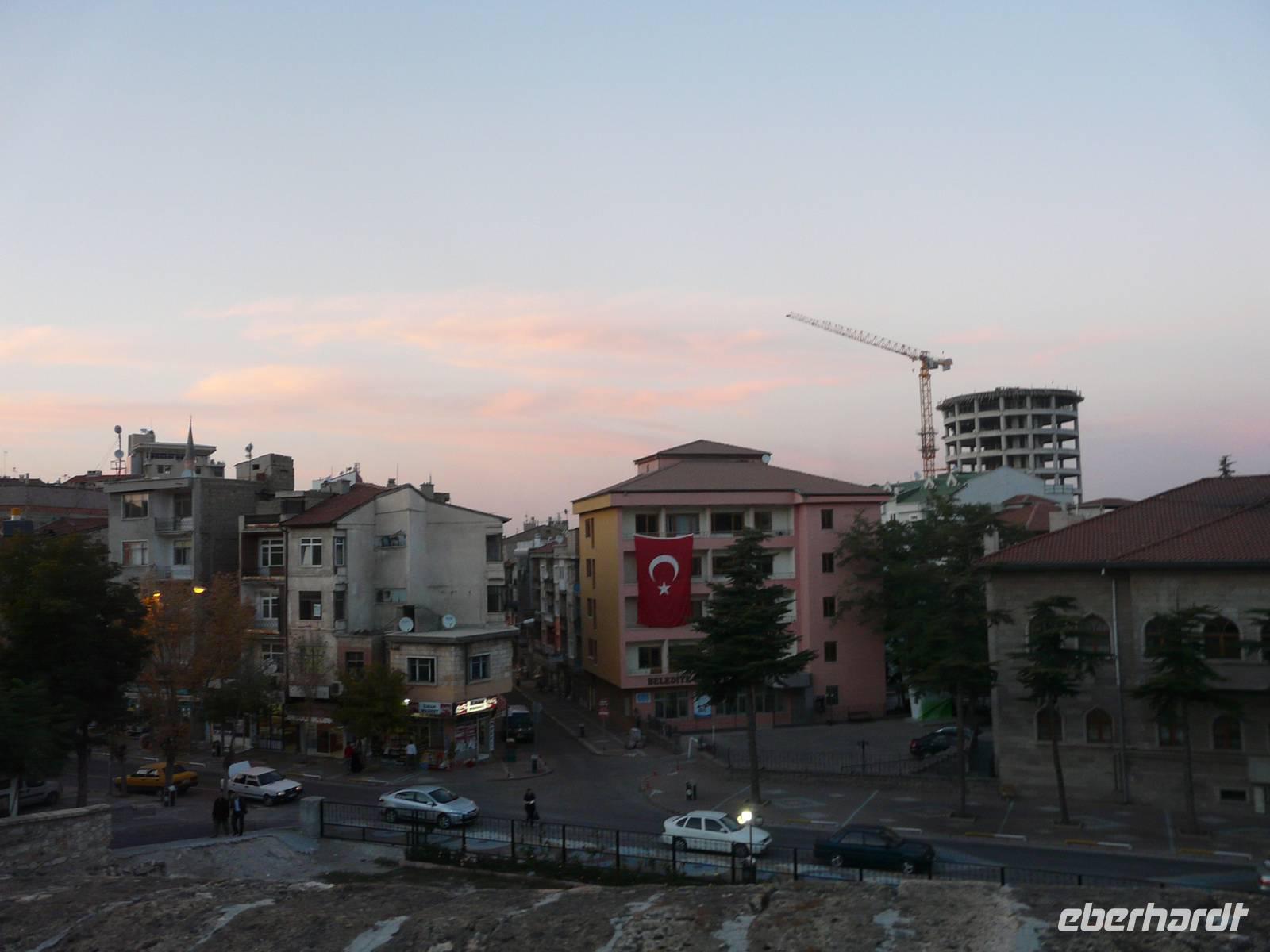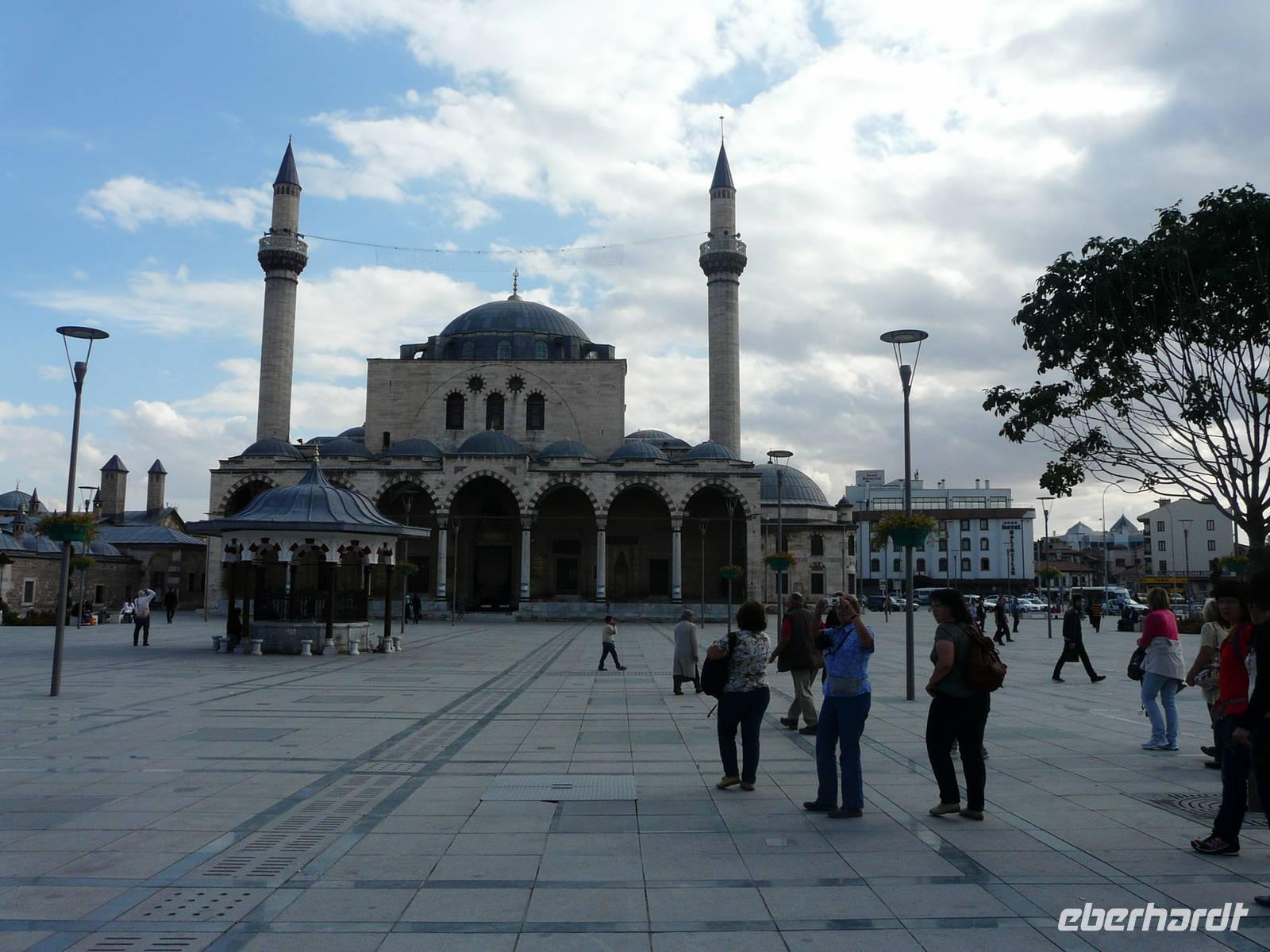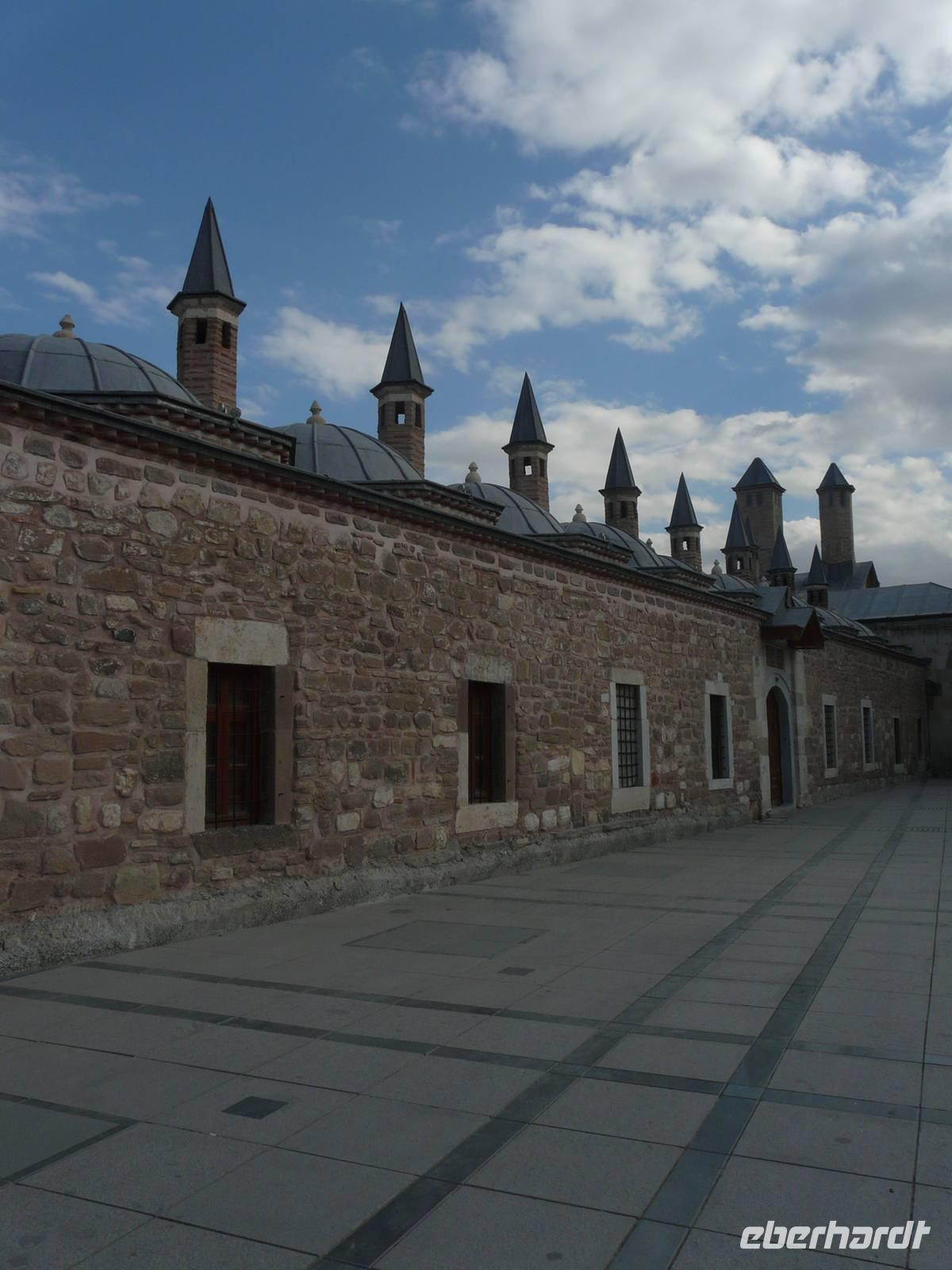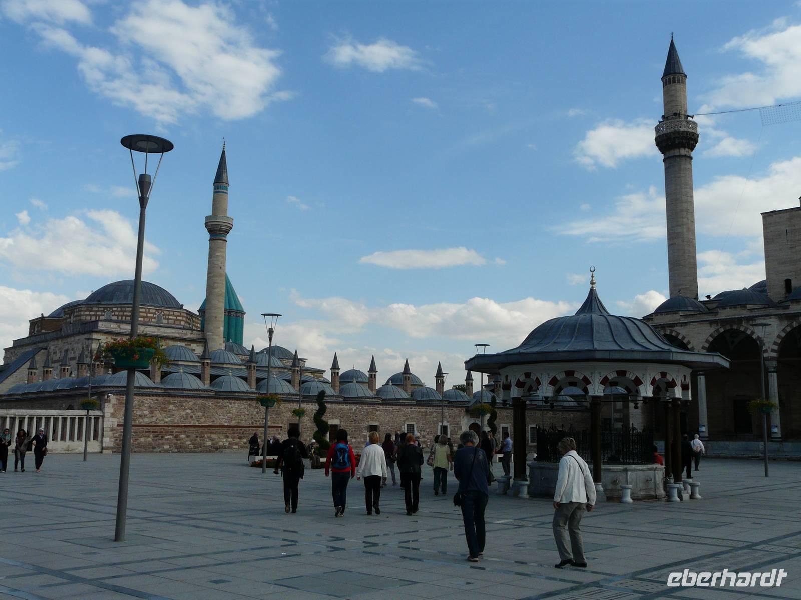 Heute heißt es Abschied nehmen aus Kappadokien. Wir besichtigen am Morgen eine kleine Töpferei in Avanos, bestaunen die Mitarbeiter bei ihrem Handwerk und wer will kann sogar selbst noch an die Töpferscheibe. Die Teller, Vasen und Tassen, welche hier gefertigt werden, sind alles kleine Kunststücke. Danach wartet eine lange Fahrt auf uns. Knapp 3 Stunden fahren wir durch die anatolische Einöde, nur ein Stopp in der Nähe einer Karawanserei bietet einen kurzen Höhepunkt. Wir erreichen Konya zum frühen Nachmittag uns scheinen das erste Mal seit einer Woche wieder in einer Großstadt zu sein. Das Zentrum des Sufismus erscheint quirlig, der Hauptplatz wird von einer riesigen Moschee bestimmt. Ehe wir uns das Mevlana-Museum ansehen, gibt es Mittag in einem typisch türkischen Bistro. Im Museum haben wir dann etwas mehr Zeit. Hasan erzählt uns über die Entstehung dieser Glaubensrichtung, die Religion der Derwische und ihren Lebensinhalt. In vielen kleinen Räumen ist hier dargestellt, wie das frühere Leben der Derwische aussah und natürlich gibt es auch hier eine Moschee, in der die Gläubigen auch heute noch beten können. Wir schlendern noch etwas über das parkähnliche Gelände, ehe wir uns sammeln und nun noch den langen Weg nach Ankara in Angriff nehmen. Als wir in Ankara ankommen ist es mittlerweile stockduster. Wir checken in unser mittlerweile schon bekanntes Sergah-Hotel im Zentrum der türkischen Hauptstadt ein. Den Essenssaal teilen wir uns diesmal mit einer Gruppe Japanern, was zur Folge hat, dass es heute wesentlich ruhiger als am Anreisetag ist. Später finden wir uns alle in ein und dem selben Zimmer wieder und lassen bei Rotwein und Salzstangen die Reise schon etwas Revue passieren.