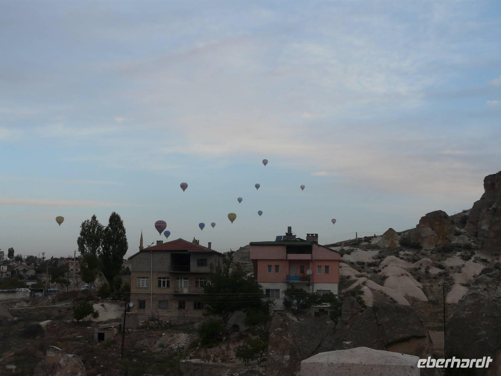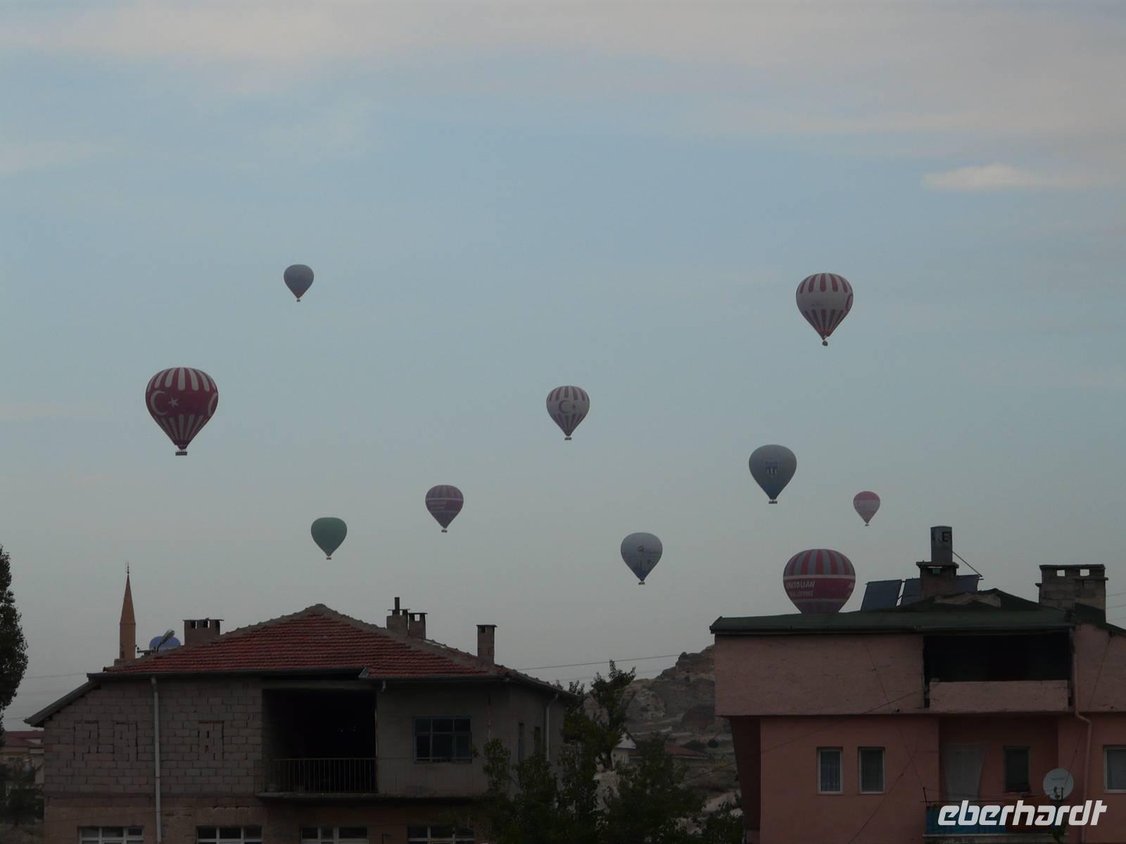 Frühaufsteher kommen heute auf ihre Kosten - der Großteil unserer Gruppe nimmt heute morgen an dem einmaligen Erlebnis einer Ballonfahrt in Kappadokien teil. Mit teilweise über 50 Ballons gleichzeitig am Himmel vergisst hier wohl jeder seine Höhenangst - und dann gab es wohl einen "feurigen" spanischen Ballonfahrer ;-) !?