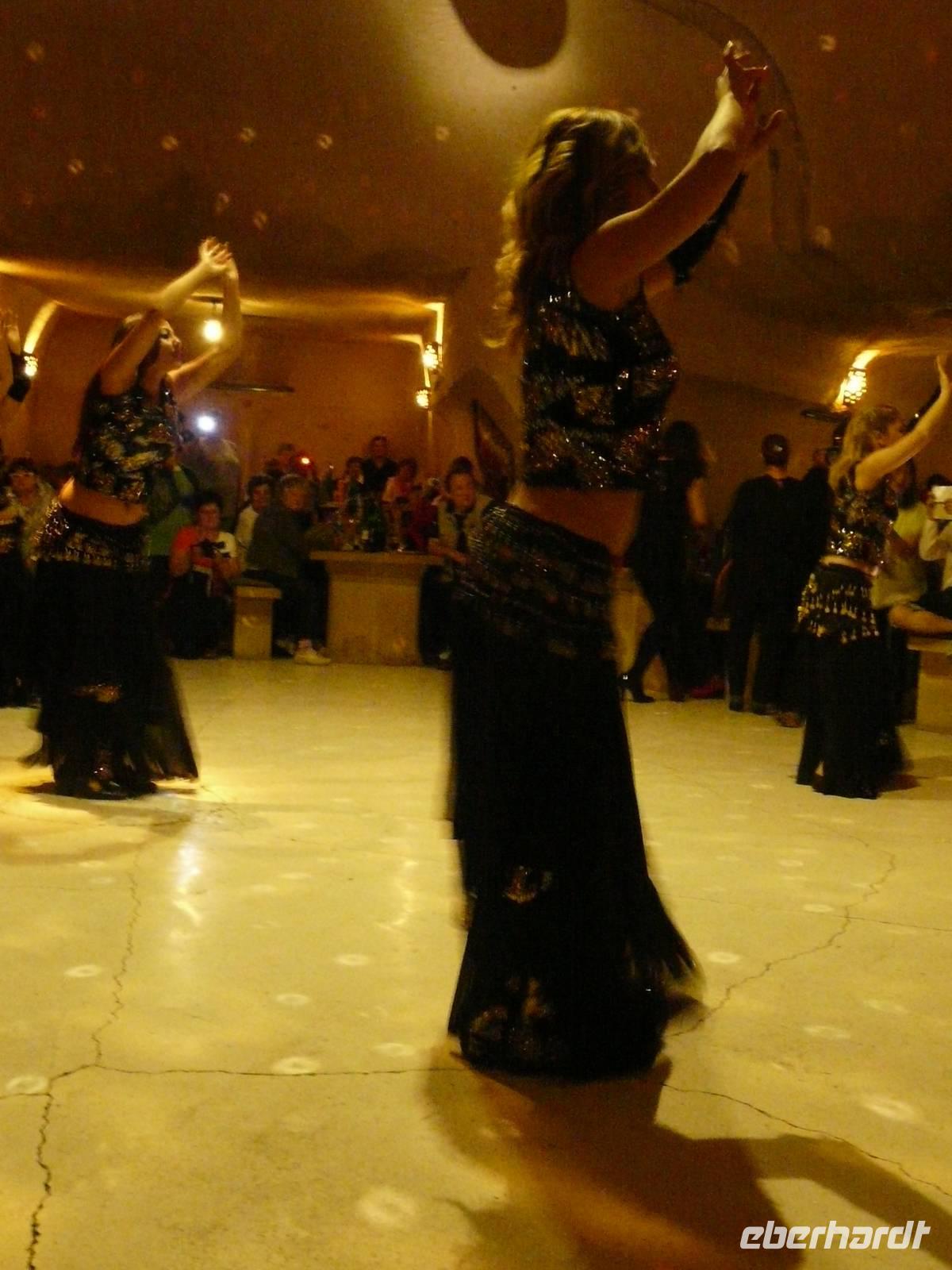 Am Abend verabschieden wir uns dann zünftig aus Kappadokien. Hasan hat für uns den Besuch eines Folklore-Abends organisiert. Wir sehen verschiedene Tänze, Derwische, eine kappadokische Hochzeit und natürlich Bauchtänzerinnen. Passend dazu gibt es Raki und verschiedene kleine Leckereien auf unserem Tisch. Einige von uns lassen es sich am Ende dann auch nicht nehmen, selbst noch etwas zu tanzen und so lassen wir alle beschwingt den langen Tag ausklingen.