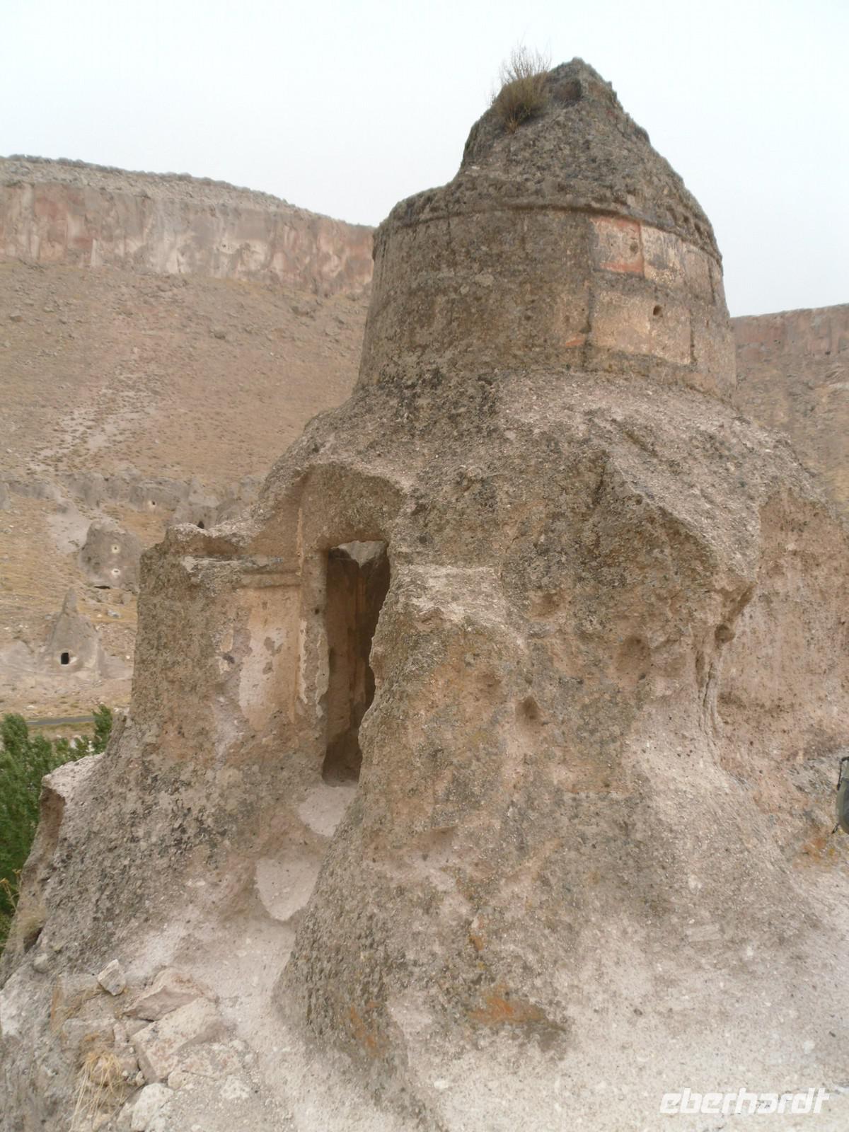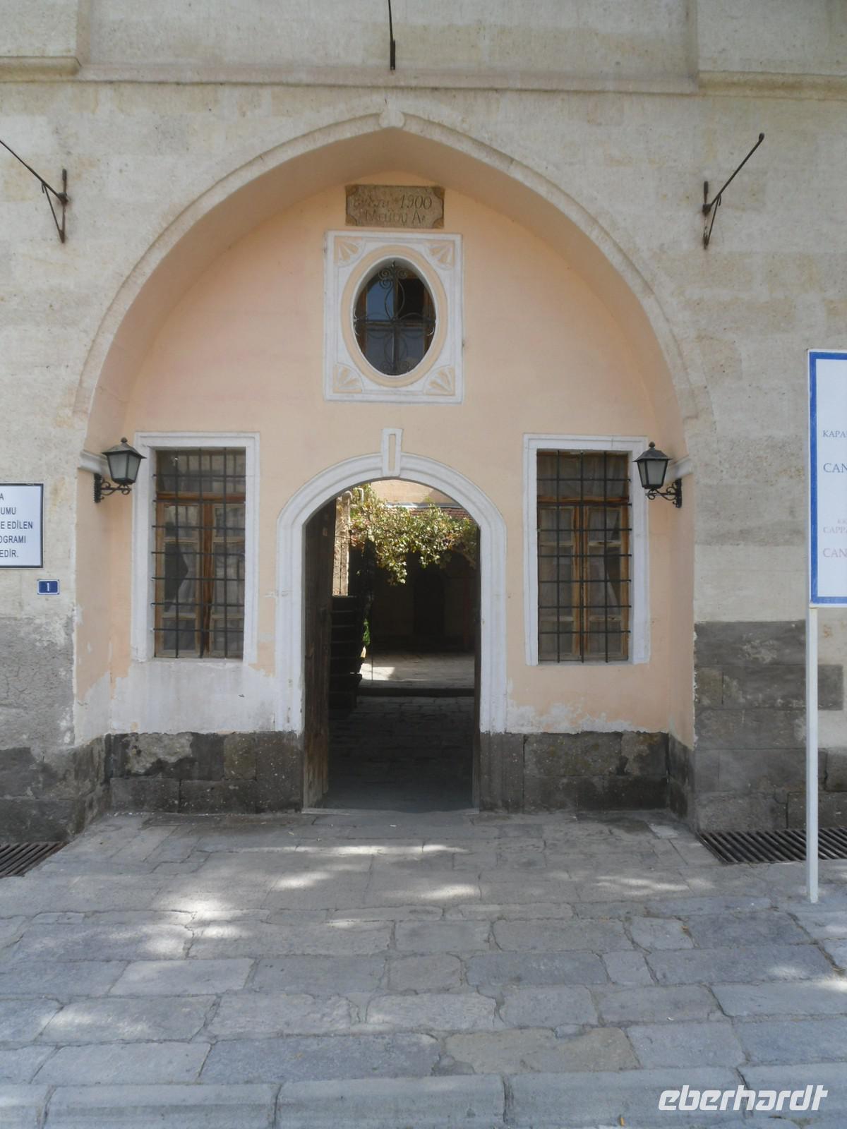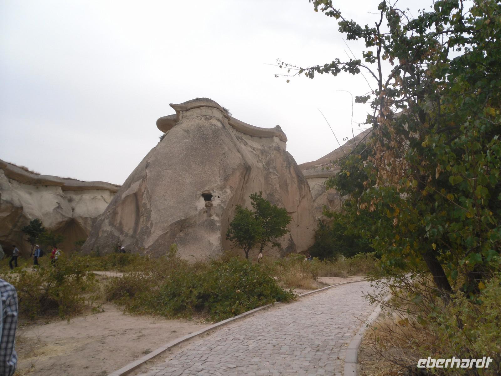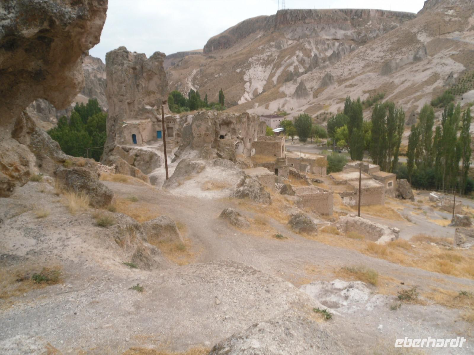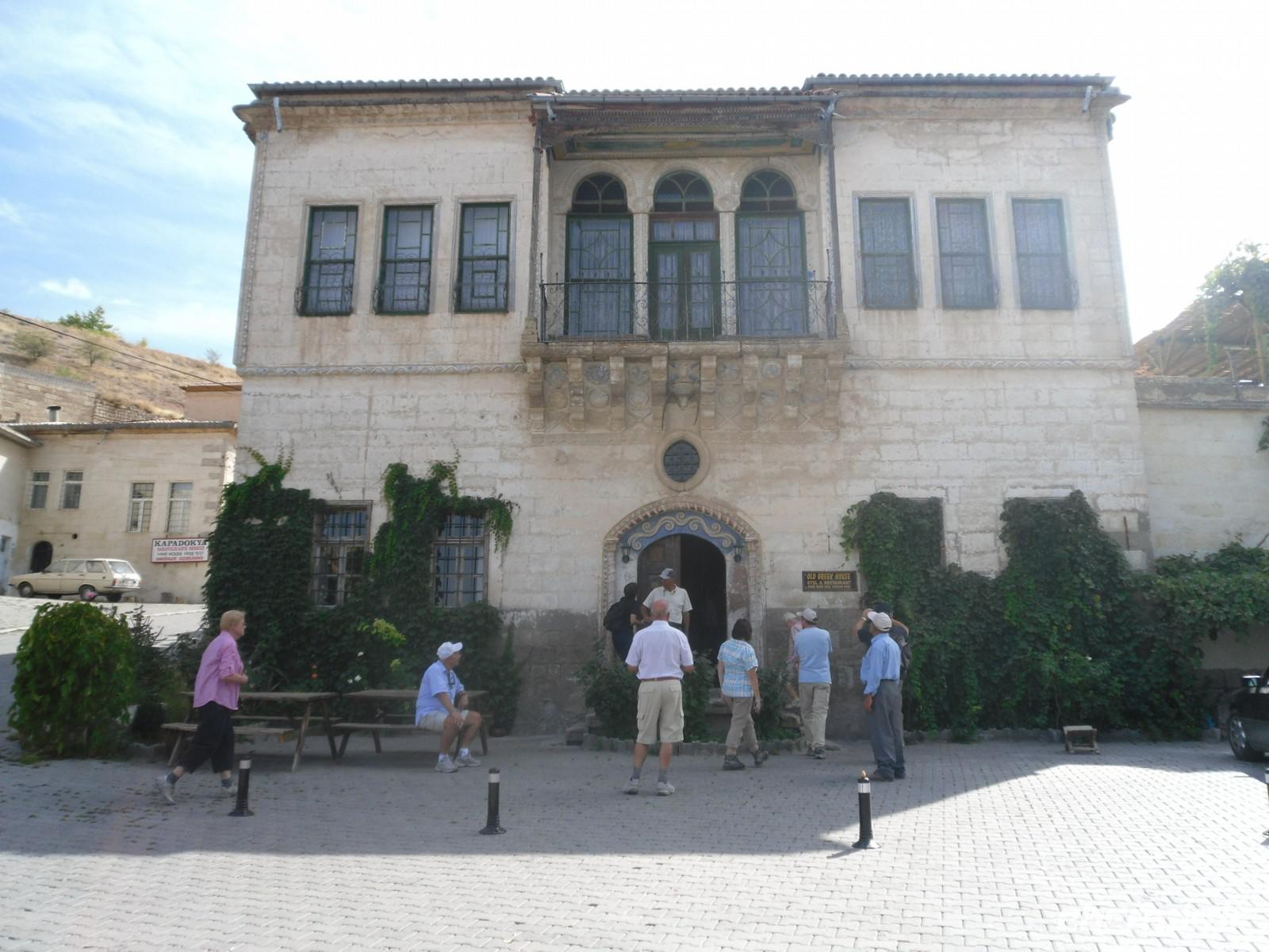 Nach einer kurzen Pause fuhren wir weiter nach Mustafapasa, dem ehemaligen Sinassos. Hier lud uns Hasan zum Tee ein und zeigte uns den kleinen Ort. Dieser war einst die Hauptstadt Kappadokiens. Hier lebten überwiegend Griechen, was an der malerischen Architektur der Häuser unschwer zu erkennen ist. Heute gibt es in Mustafapasa zahlreiche Universitäten und Schulen und wird hauptsächlich von Türken bewohnt.