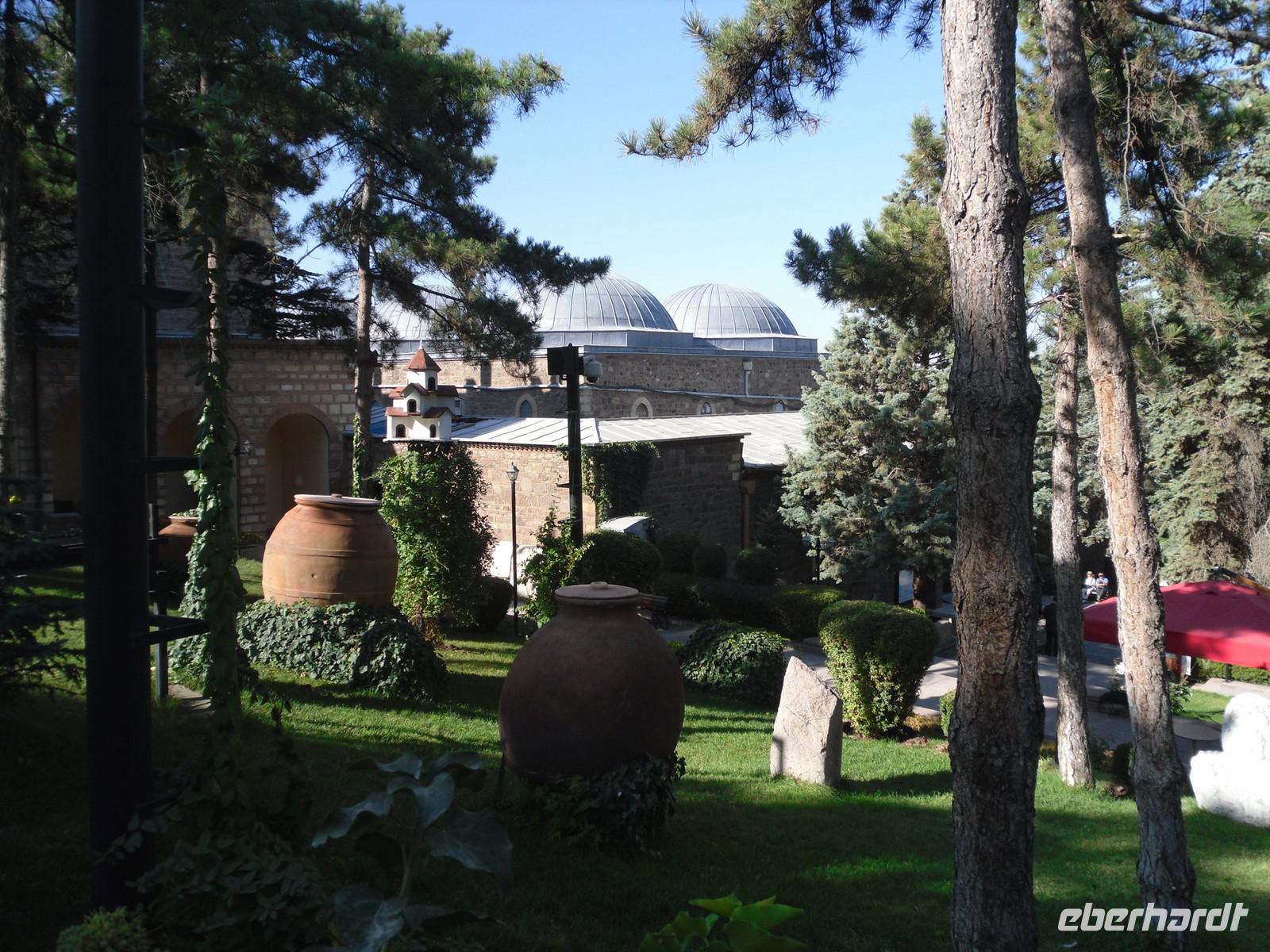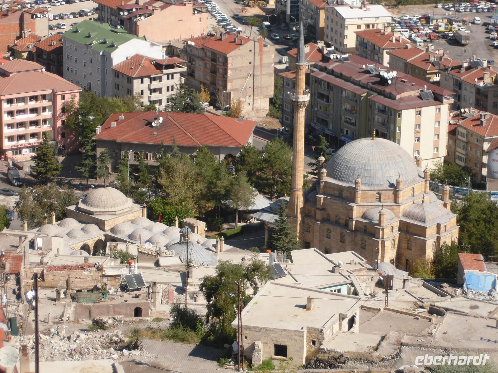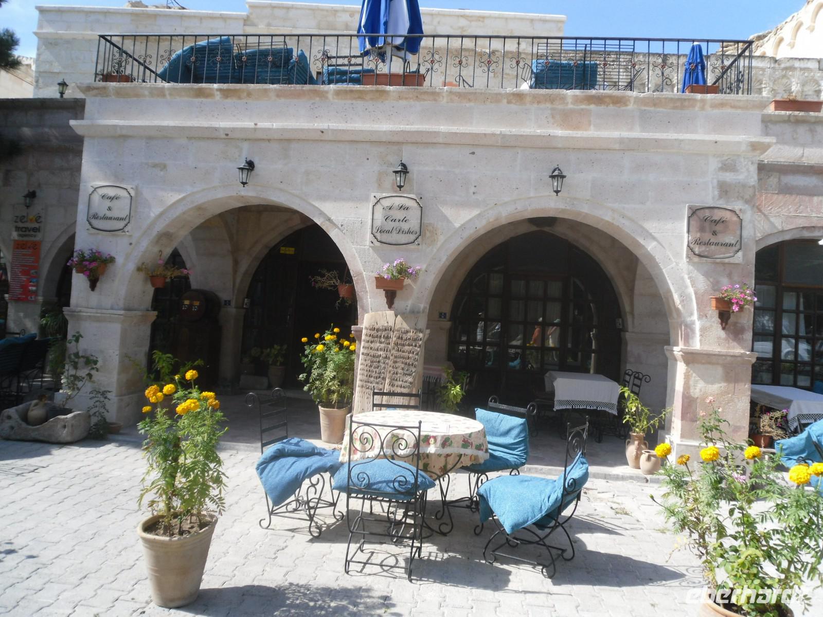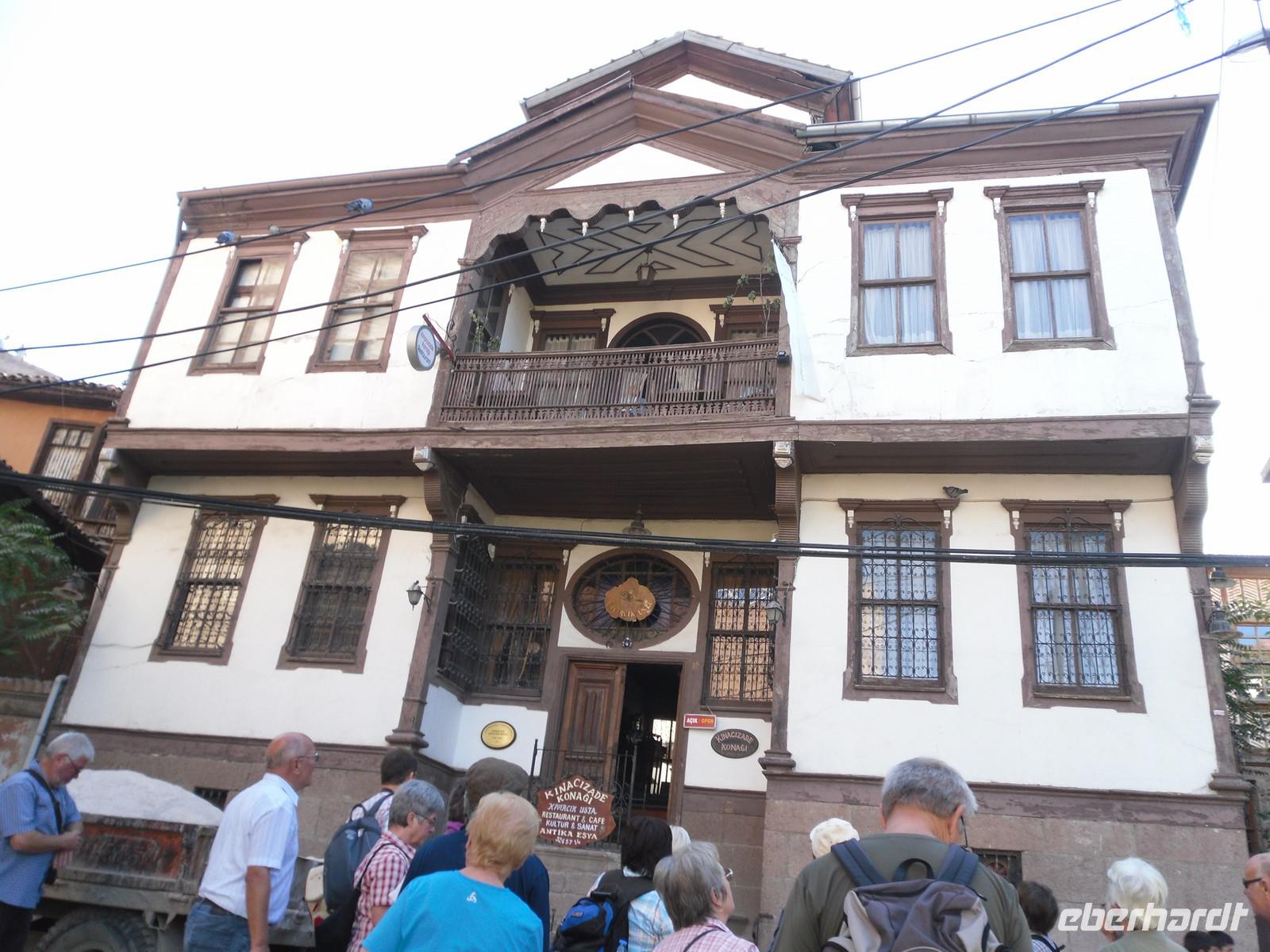 Nach einer kurzen Pause fuhren wir weiter nach Mustafapasa, dem ehemaligen Sinassos. Hier lud uns Hasan zum Tee ein und zeigte uns den kleinen Ort. Dieser war einst die Hauptstadt Kappadokiens. Hier lebten überwiegend Griechen, was an der malerischen Architektur der Häuser unschwer zu erkennen ist. Heute gibt es in Mustafapasa zahlreiche Universitäten und Schulen und wird hauptsächlich von Türken bewohnt.