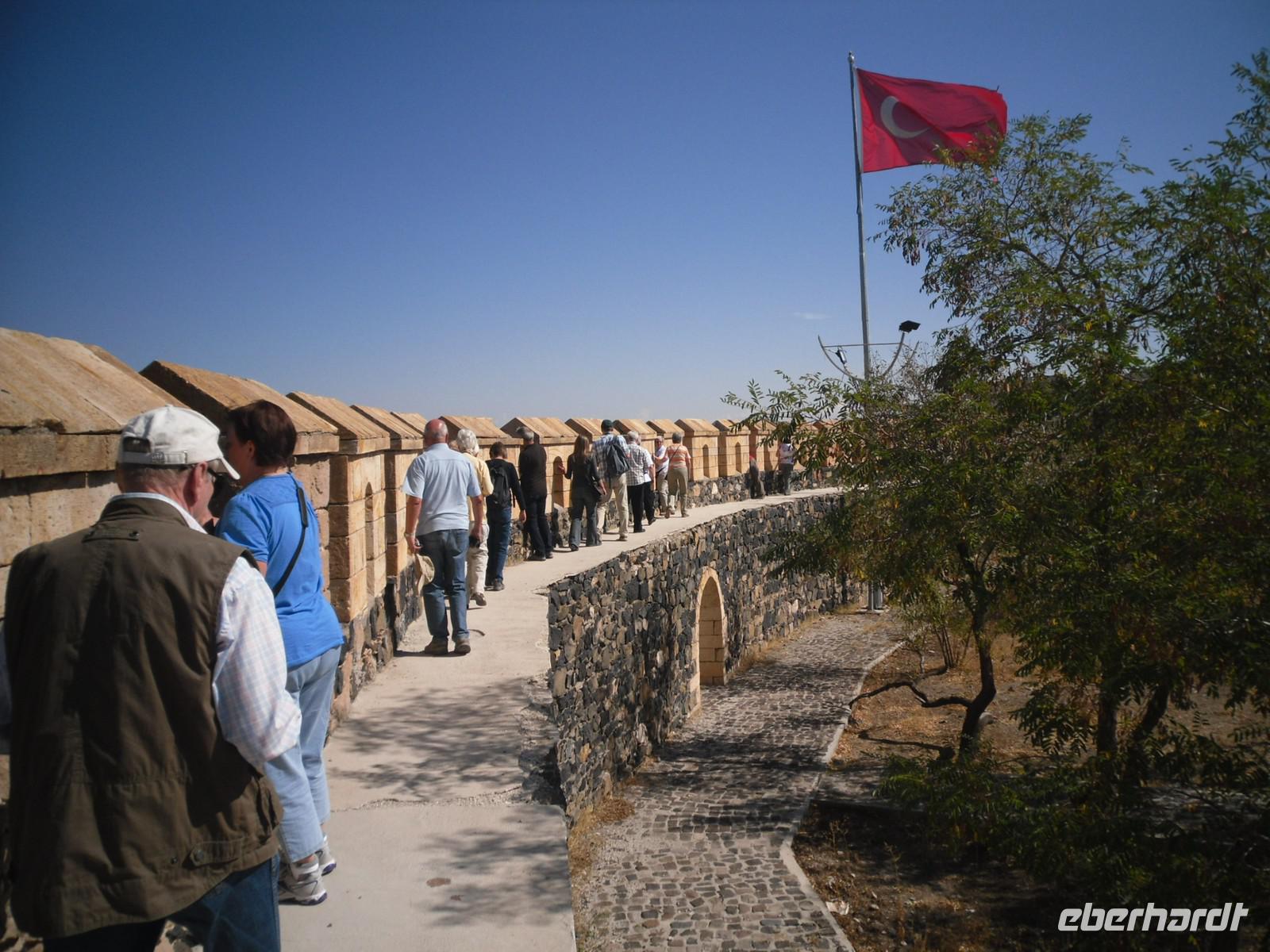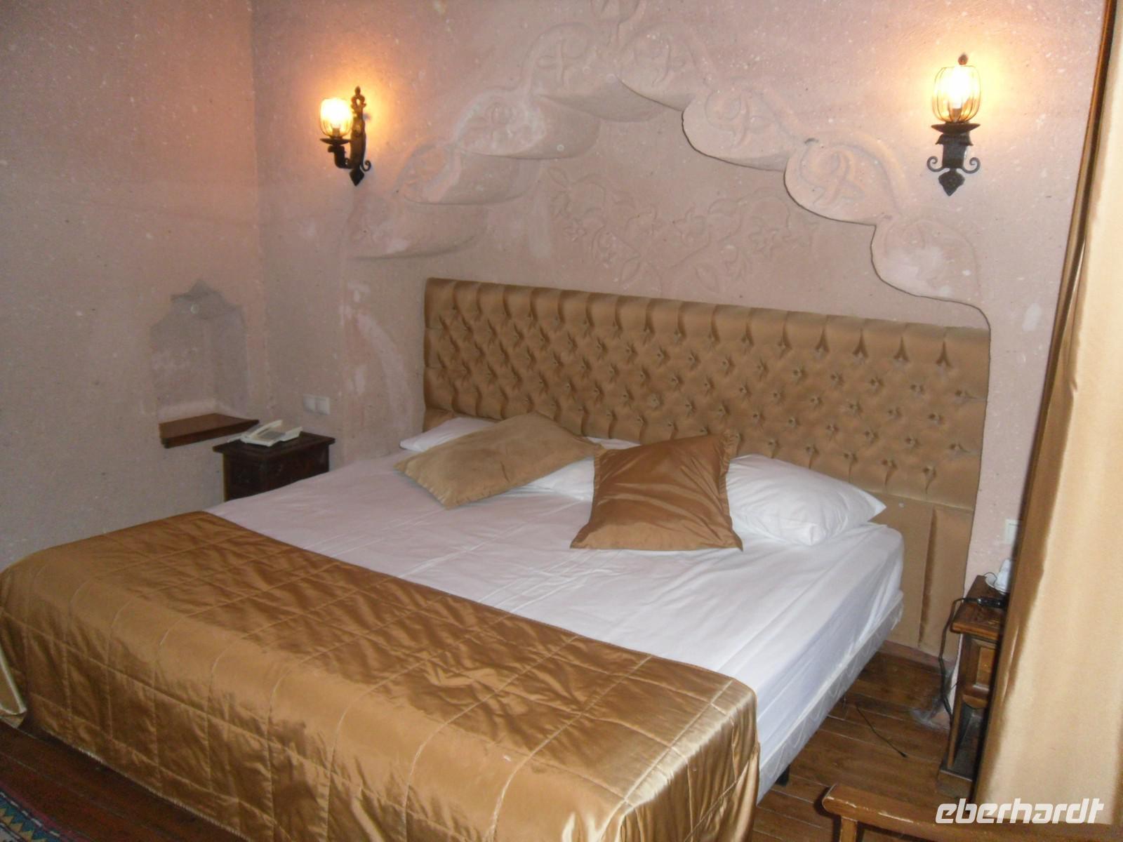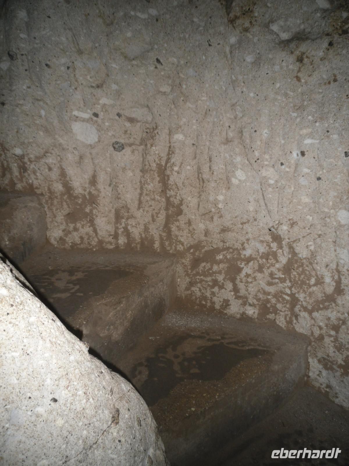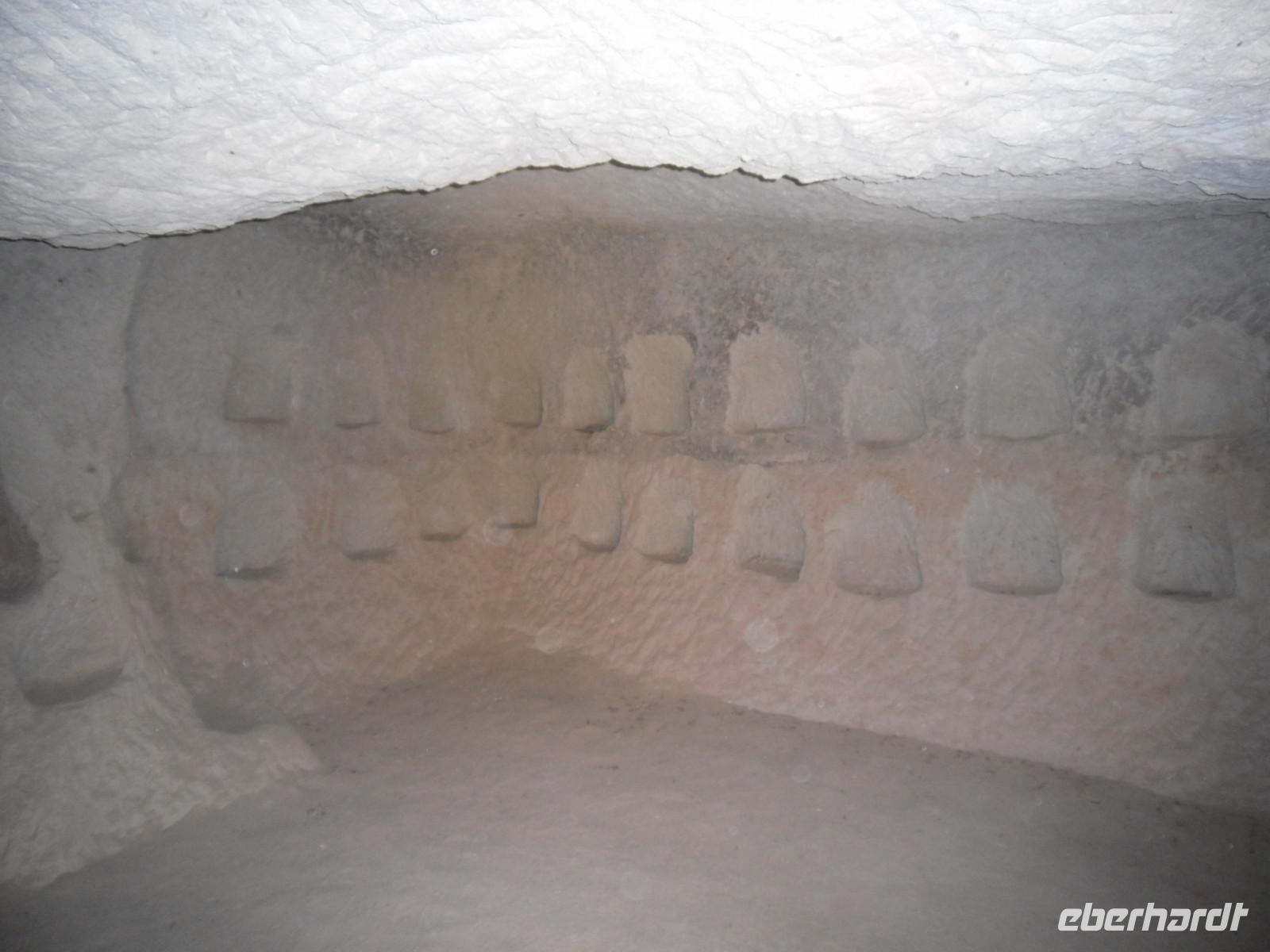 Anschließend ging es zurück in unser Hotel um zu frühstücken. Begeistert schilderten wir den anderen Gästen unsere Erlebnisse. Gut gestärkt fuhren wir dann zur Ihlara-Schlucht. Die 15 Kilometer lange und 150 Meter tiefe Schlucht gleicht einem Naturwunder und hat verblüffende Ähnlichkeit mit dem Grand Canyon. Wir besichtigten alte Kirchen und genossen die schöne Landschaft. Nach einer kurzen Teepause „im" Fluß gingen wir bis zum Ende der Schlucht wo wir unsere Mittagspause mit frischen türkischen Spezialitäten verbrachten. Danach spazierten wir noch durch den Ort, um daraufhin die Weiterreise zur unterirdischen Höhlenstadt Derinkuyu antreten zu können. Knapp 20000 Menschen sollen hier einst Zuflucht gefunden haben, aber ob es tatsächlich so vielen Menschen waren, kann heute niemand mehr genau sagen. Bis zu 25 Meter in die Tiefe stiegen wir durch enge, niedrige Gänge und Treppen. Alle waren von den Höhlen beeindruckt. Selbst eine Kirche gab es in der unterirdischen Stadt. Erschöpft von dem langen Tag ging es anschließend zurück in unser Hotel.