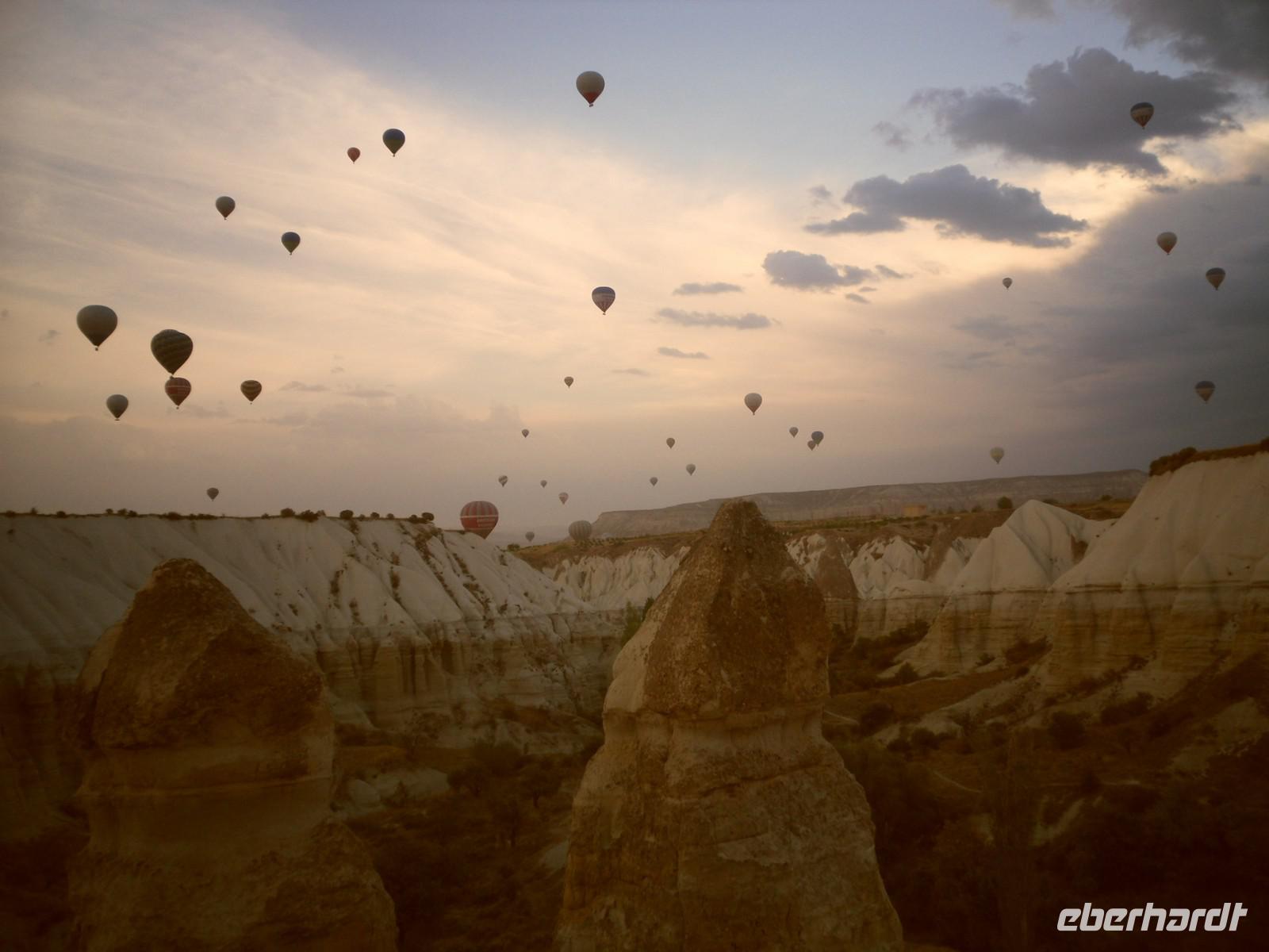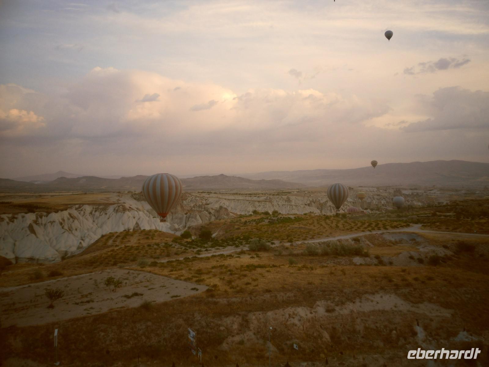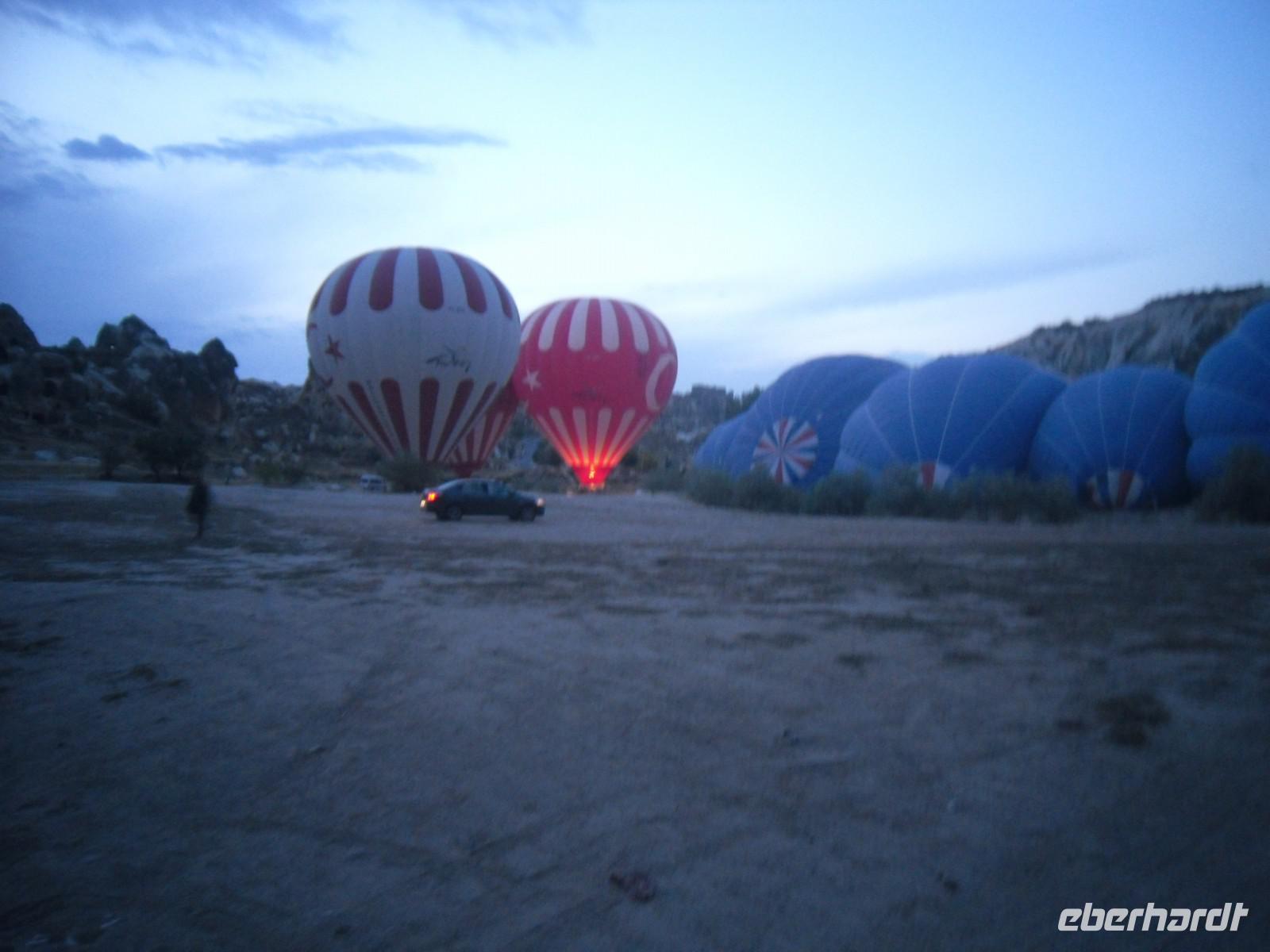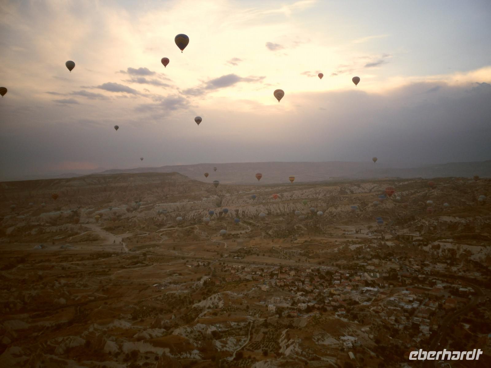 Heute Morgen war es endlich soweit. Für 12 Gäste und mich hieß es früh aufstehen, dann bereits um 5.20Uhr wurden wir zur heiß ersehnten Ballonfahrt abgeholt. Kurze Zeit später erreichten wir Göreme - den Ort wo unser kleines Abendteuer begann. Bevor es losging konnten wir uns mit Keksen, Kaffee und Tee stärken. Die ersten Ballons stiegen bereits auf. Und dann ging es auch für uns los und wir wurden zu unserem gigantischen Heißluftballon gebracht. Nach einer kurzen Sicherheitseinführung ging es dann schon hoch in die Luft. Erst überquerten wir das schöne Göreme und später das malerische Liebestal, durch welches wir bereits wanderten. Bis zu 1500 Meter stieg unser Pilot mit uns auf. Nach der Landung wurden wir für unseren Mut mit einer Urkunde und einem Glas Sekt belohnt.