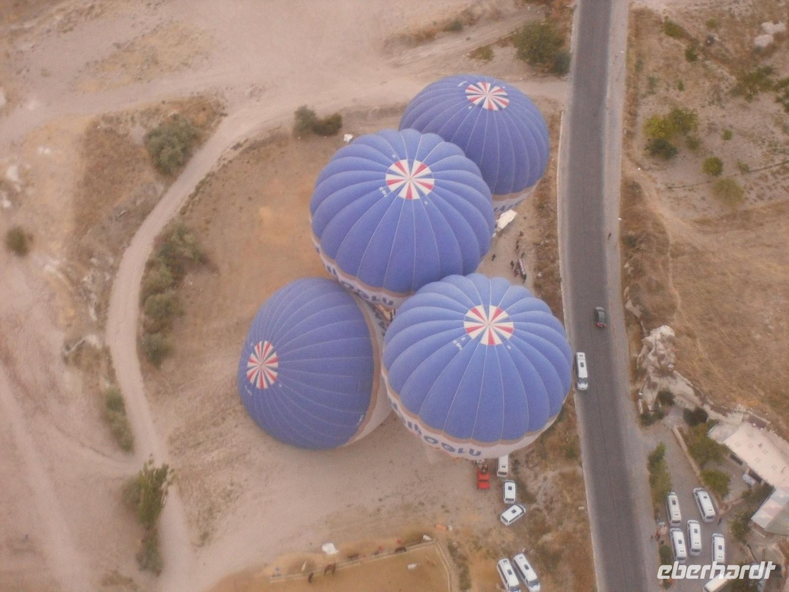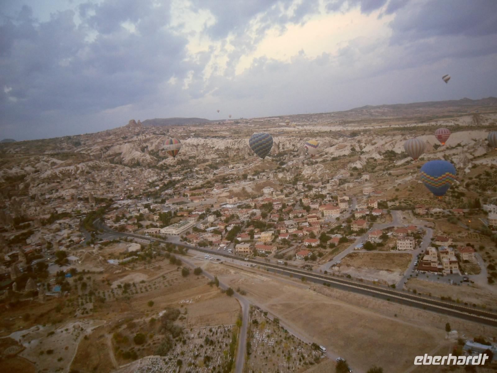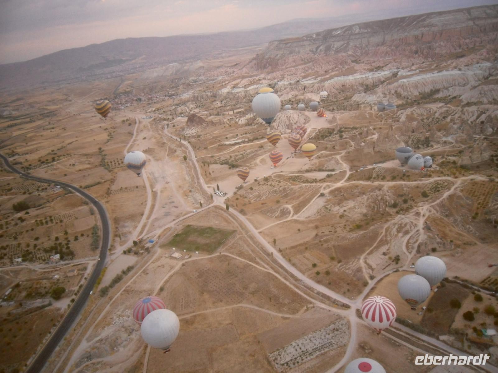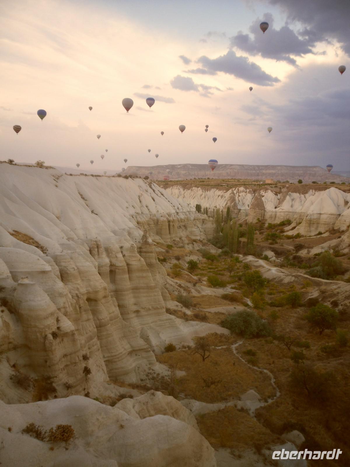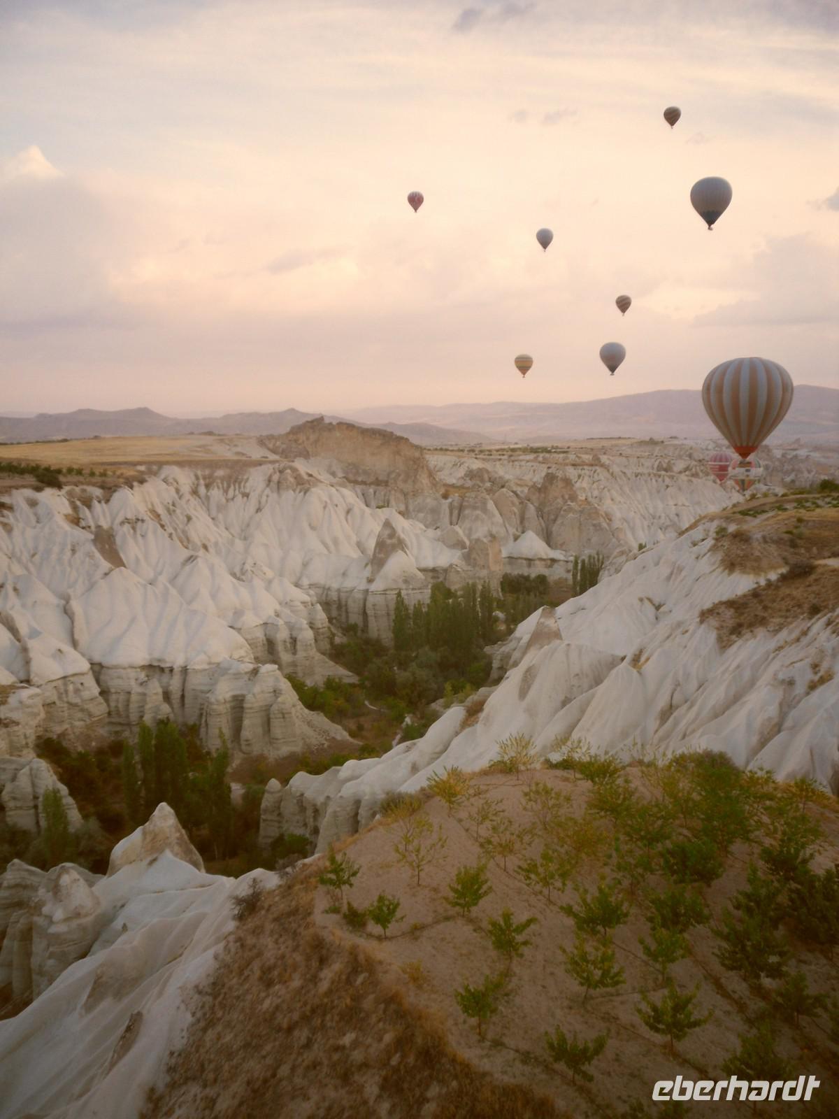 Heute Morgen war es endlich soweit. Für 12 Gäste und mich hieß es früh aufstehen, dann bereits um 5.20Uhr wurden wir zur heiß ersehnten Ballonfahrt abgeholt. Kurze Zeit später erreichten wir Göreme - den Ort wo unser kleines Abendteuer begann. Bevor es losging konnten wir uns mit Keksen, Kaffee und Tee stärken. Die ersten Ballons stiegen bereits auf. Und dann ging es auch für uns los und wir wurden zu unserem gigantischen Heißluftballon gebracht. Nach einer kurzen Sicherheitseinführung ging es dann schon hoch in die Luft. Erst überquerten wir das schöne Göreme und später das malerische Liebestal, durch welches wir bereits wanderten. Bis zu 1500 Meter stieg unser Pilot mit uns auf. Nach der Landung wurden wir für unseren Mut mit einer Urkunde und einem Glas Sekt belohnt.