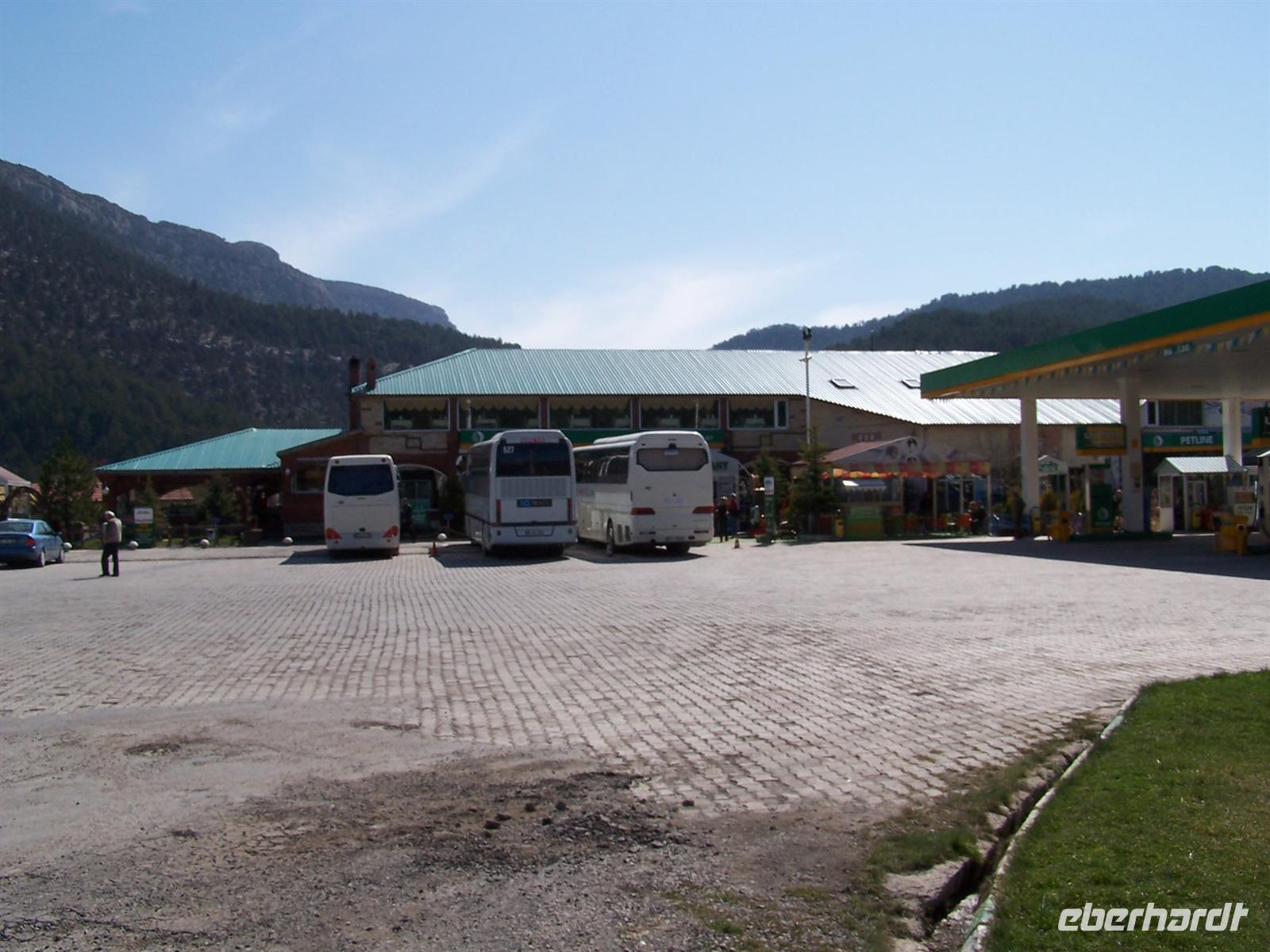 Nach einem dreistündigen Flug von Dresden nach Antalya kamen wir pünktlich um 14.00 Uhr am Flughafen in Antalya an. Unser Reiseleiter Hakan erwartete uns vor dem Terminal und gemeinsam fuhren wir zum Hotel Nazar Beach in Antalya-Lara. Das Hotel liegt auf einem Felsvorsprung über dem Meer. Bei einem Begrüßungsgetränk stellte uns Hakan das Programm der folgenden Tage vor. Das Buffet zum Abendessen und zum Frühstück war hervorragend und auf den Zimmern fanden wir zur Begrüßung einen Früchteteller vor. Ein kleines Manko war die Lage des Hotels. die Starts und Landungen der Flugzeuge waren hörbar, was die Aufenthaltsqualität ein wenig beeinträchtigte.