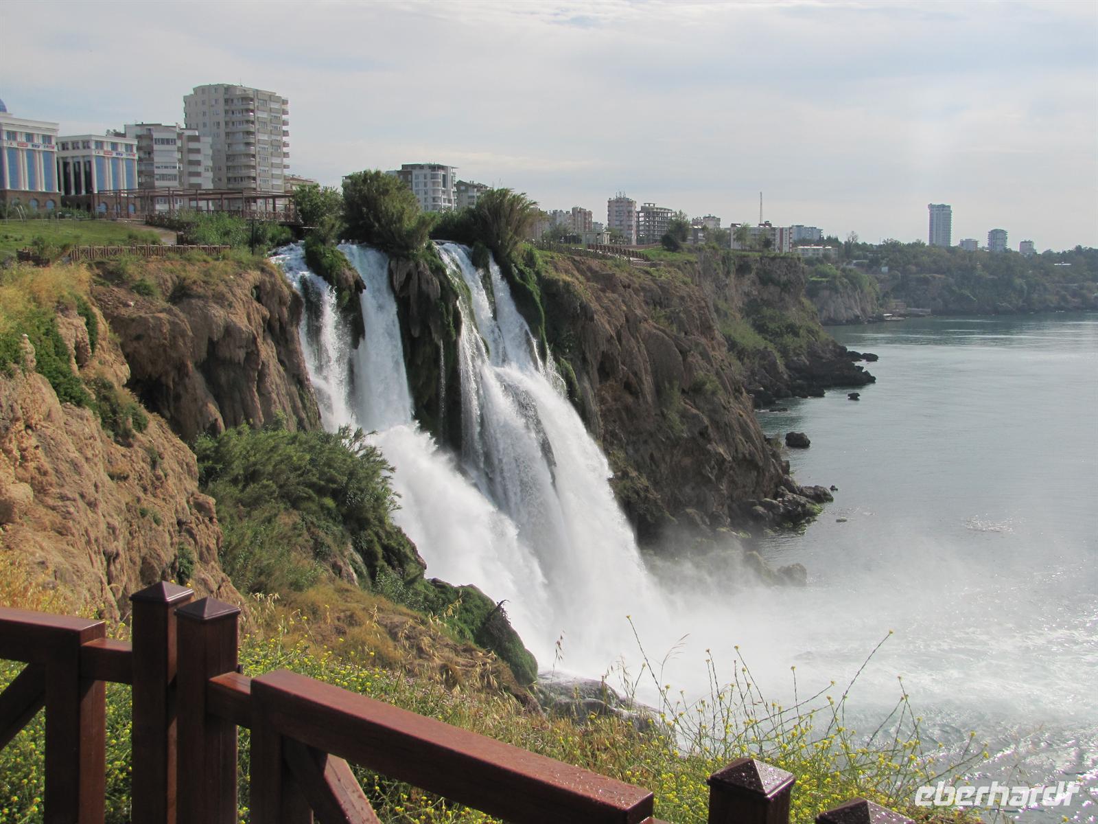 Nach dem Frühstücksbuffet ging es für uns mit dem Bus durch Antalya zu einem Wasserfall der direkt ins Meer führt. Dies war am frühen morgen, bei klarer Sicht ein toller Anblick.