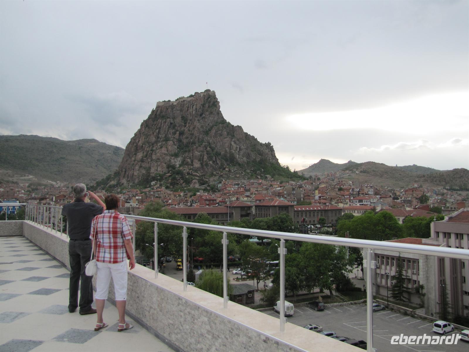 In Afyon angekommen besichtigten wir eine Moschee und begaben uns durch die Altstadt. Nun sind wir in der richtigen Türkei angekommen, abseits der Touristenstrecken. Wir wurden auf den Straßen oft angestarrt und fotografiert. Ein Gast gab sogar in einer Moschee ein kleines Interview an die Lokalzeitung, für die wir wahrscheinlich ein außergewöhnlicher Besuch gewesen sind.