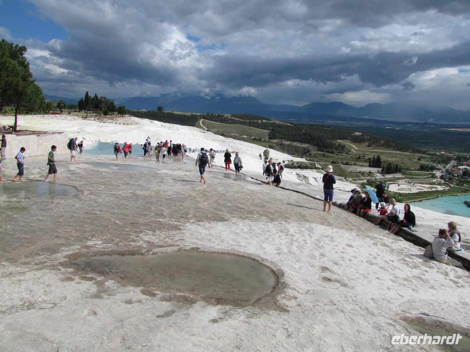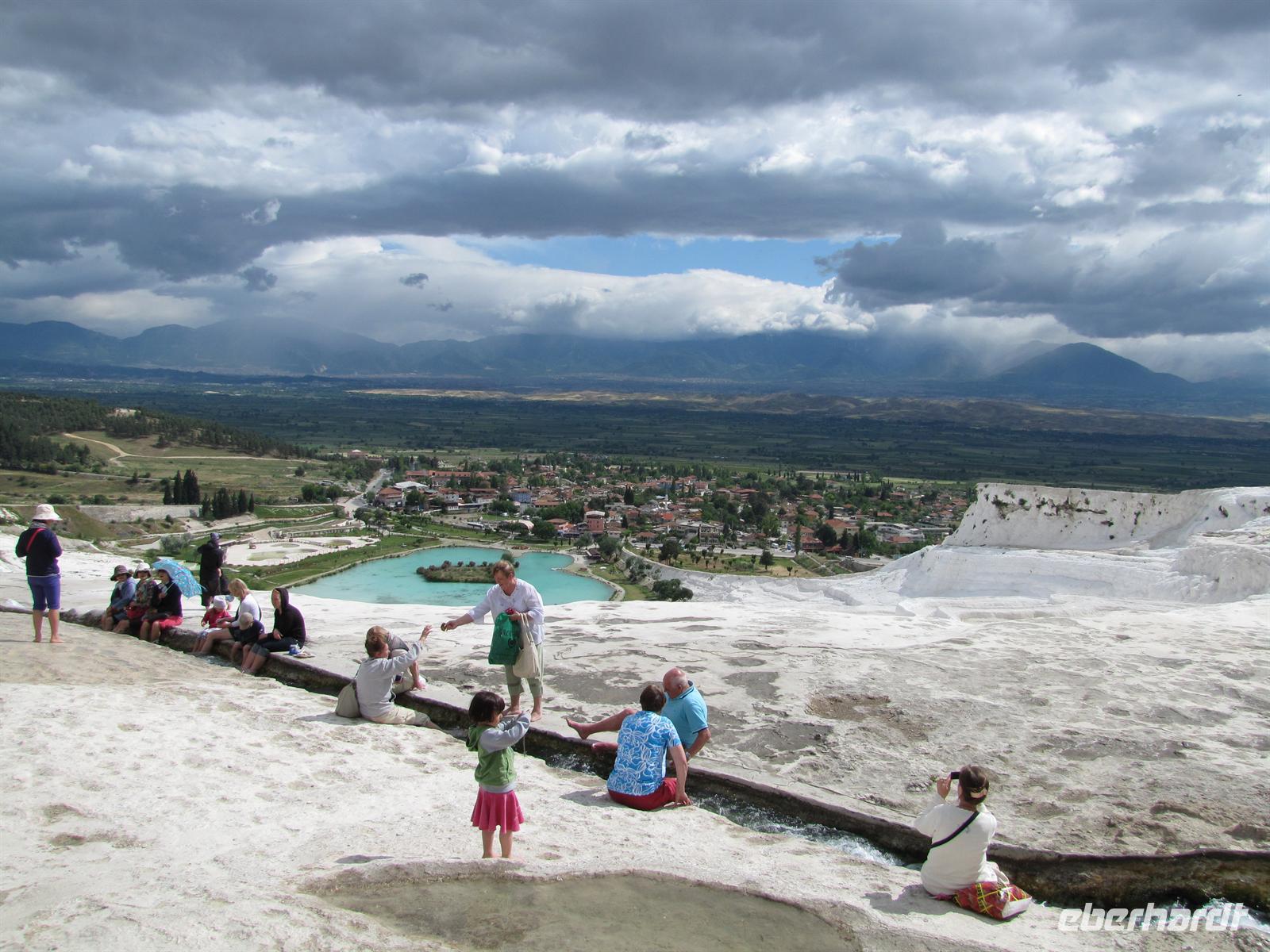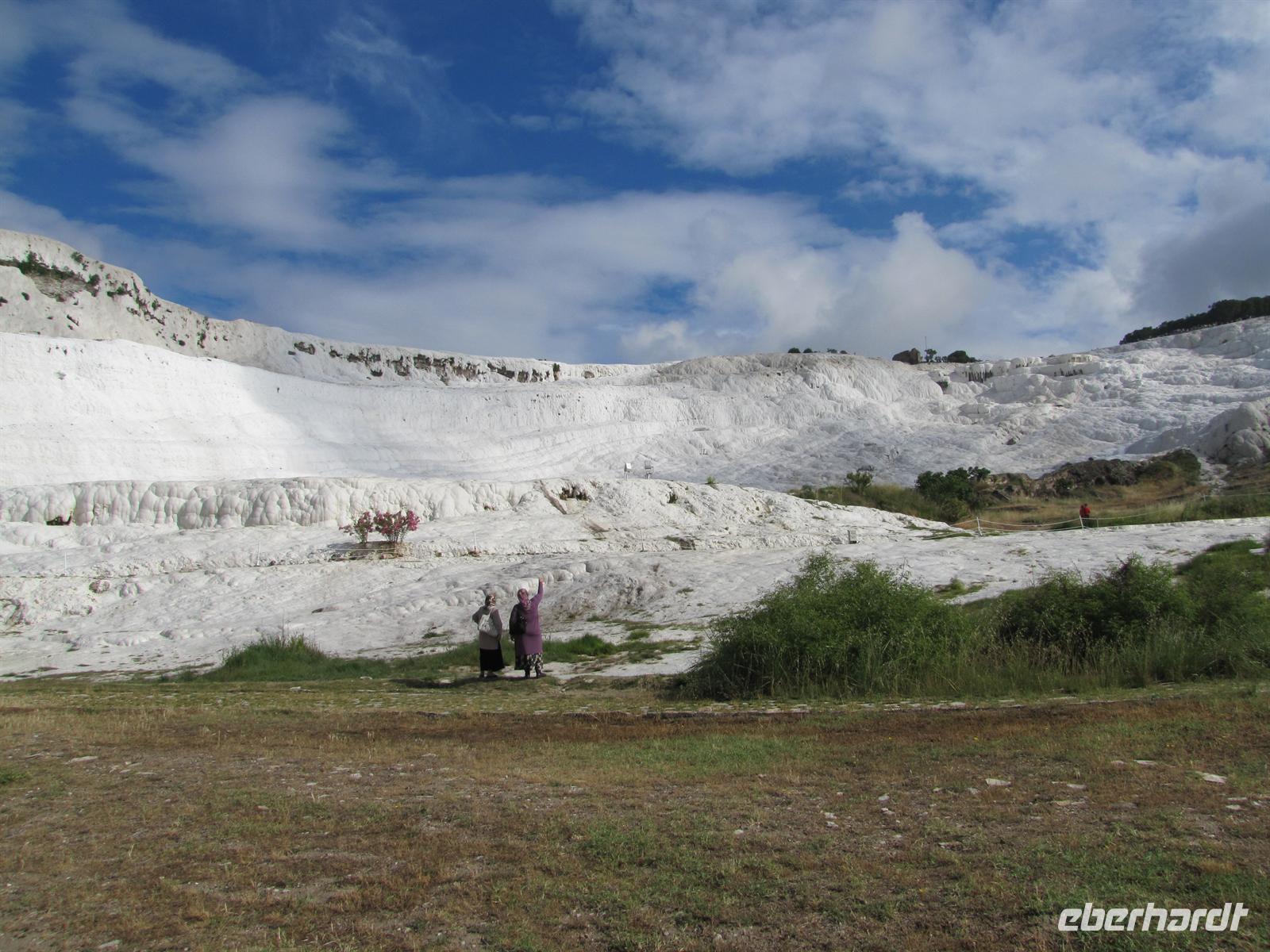 Danach fuhren wir ca. 2,5 stunden weiter in Richtung Westen. Nach dem Mittagessen war es nur noch ein Katzensprung zu den Kalksteinterrassen von Pamukkale. Dort nutzten einige die Möglichkeit mit den Füßen im Wasser entlang der weißen Kalksteine zu laufen. Schon die alten Römer und Griechen nutzten solch natürliche Wellnessbereiche.