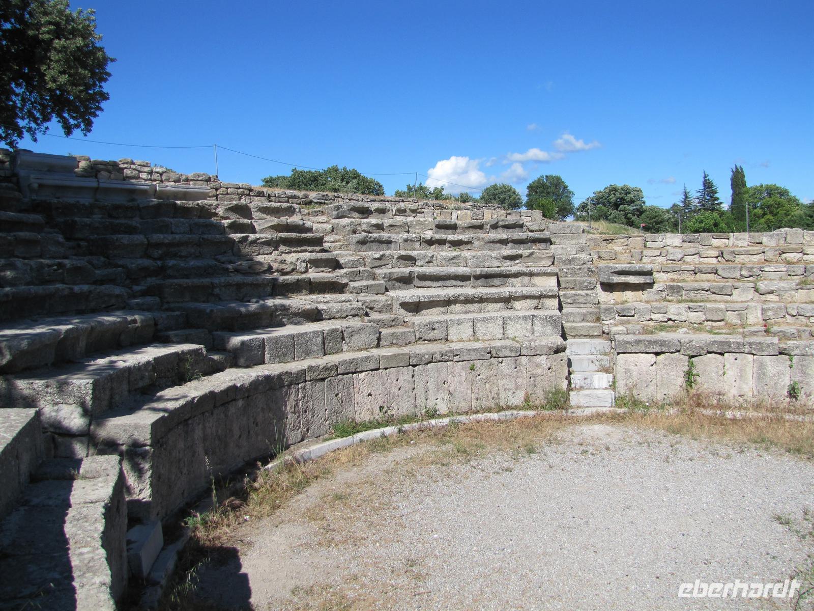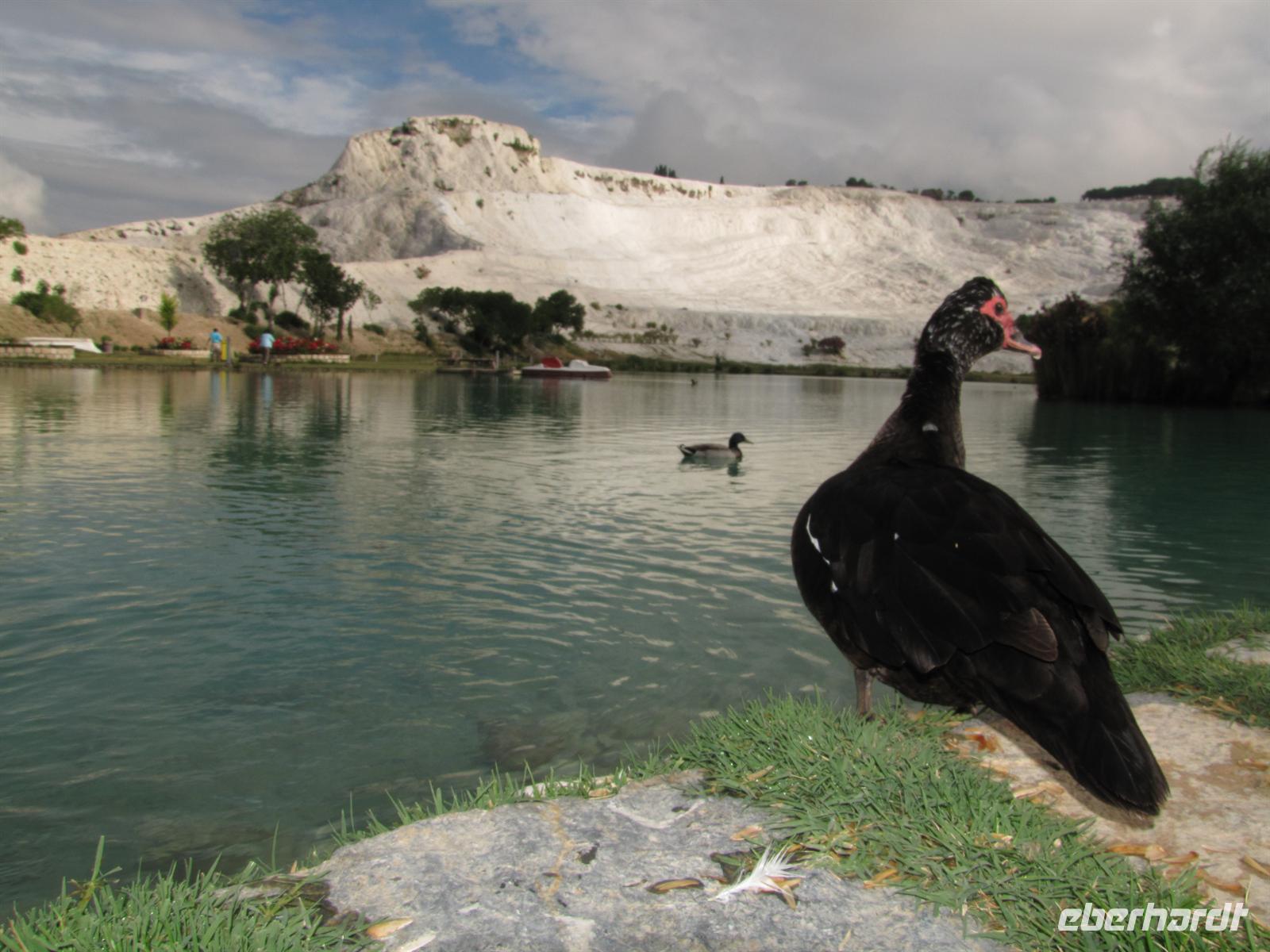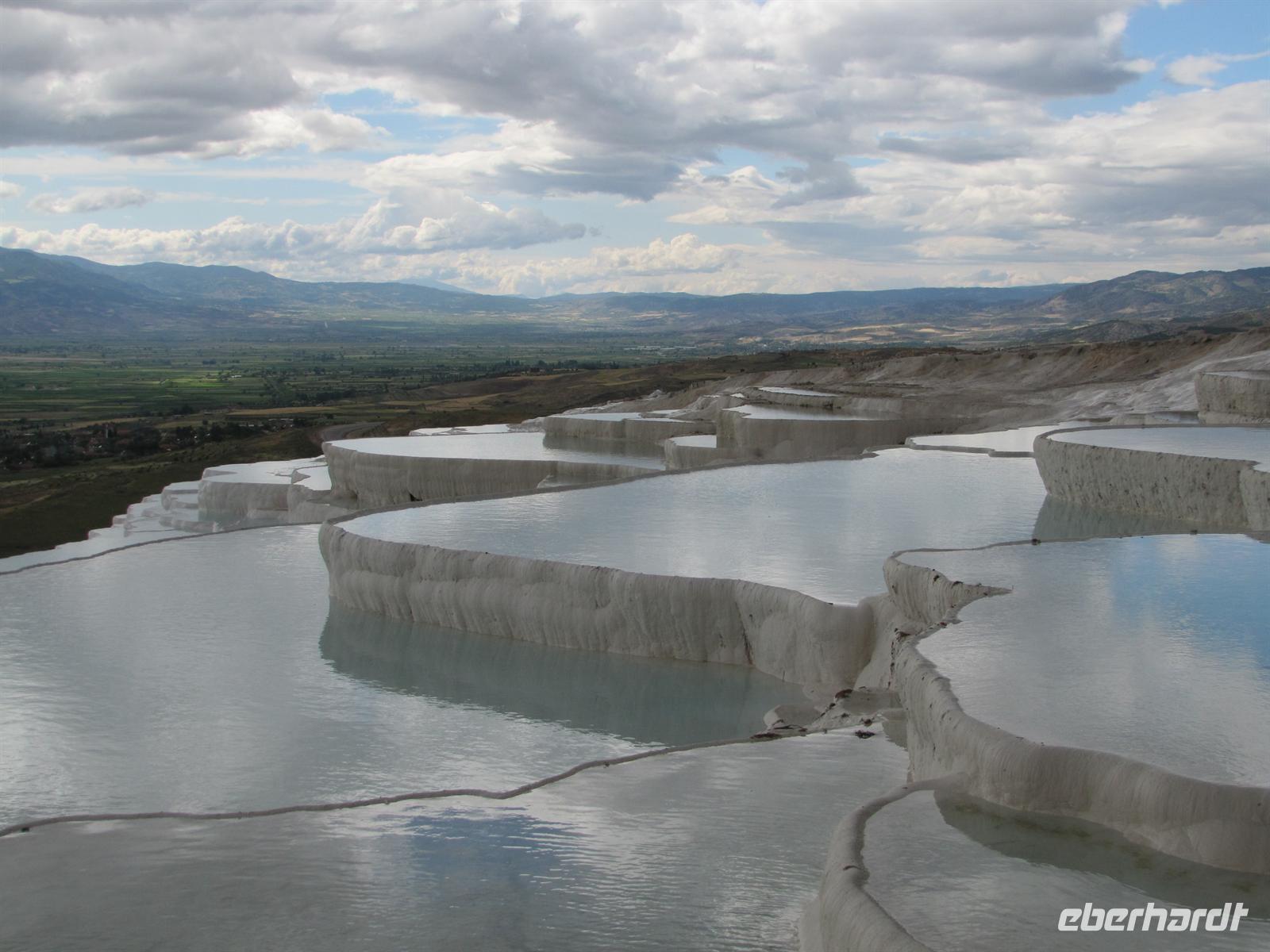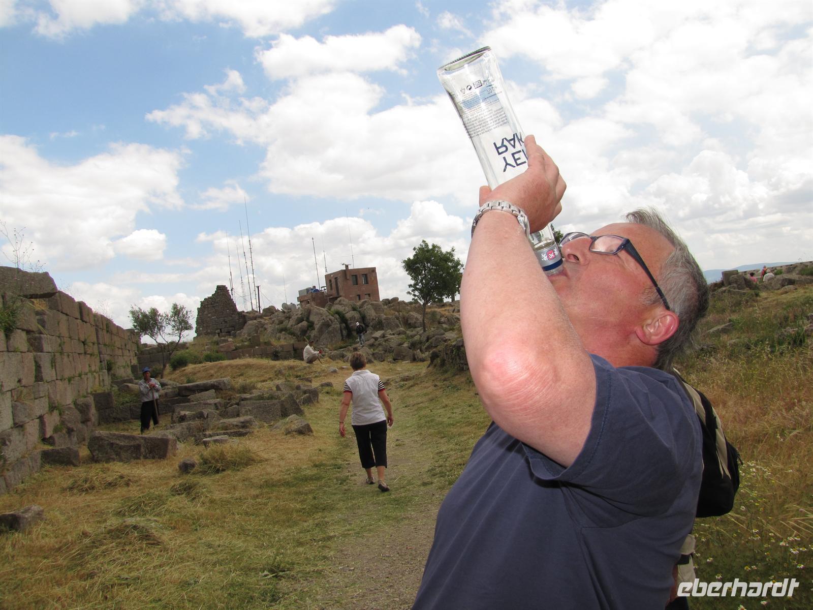 Danach fuhren wir ca. 2,5 stunden weiter in Richtung Westen. Nach dem Mittagessen war es nur noch ein Katzensprung zu den Kalksteinterrassen von Pamukkale. Dort nutzten einige die Möglichkeit mit den Füßen im Wasser entlang der weißen Kalksteine zu laufen. Schon die alten Römer und Griechen nutzten solch natürliche Wellnessbereiche.