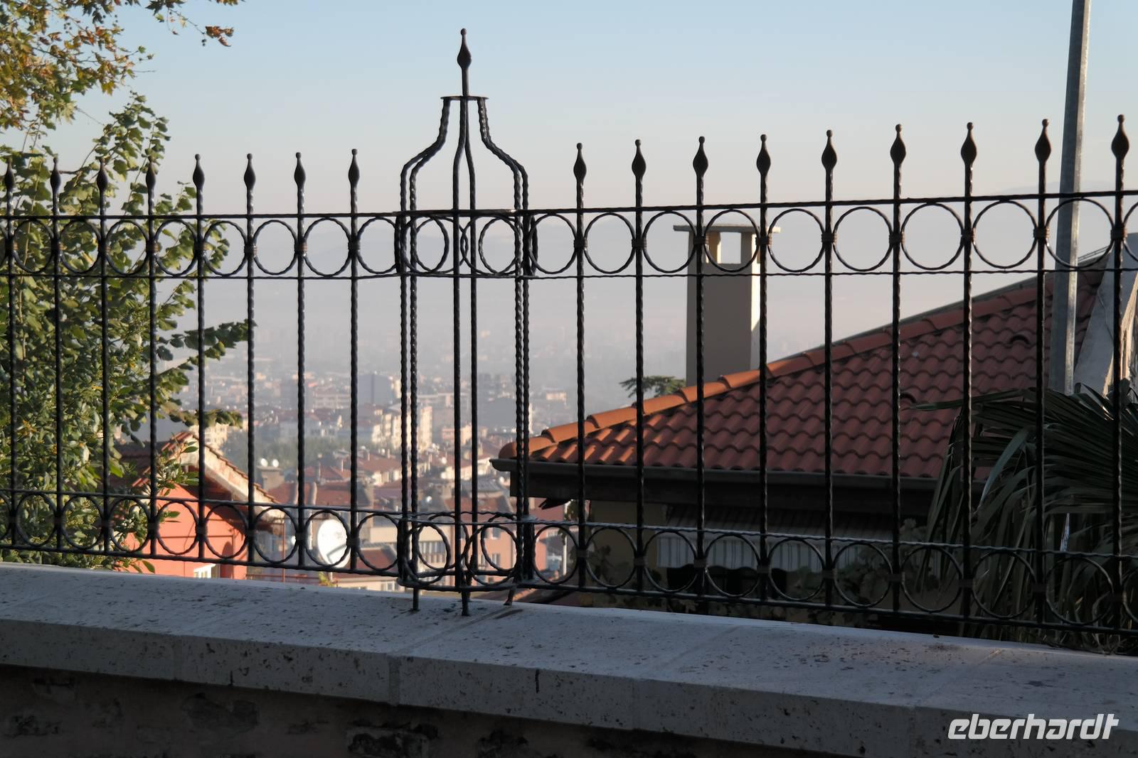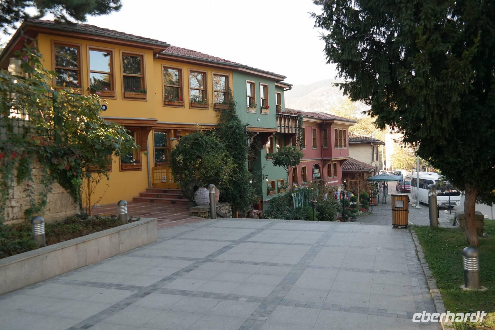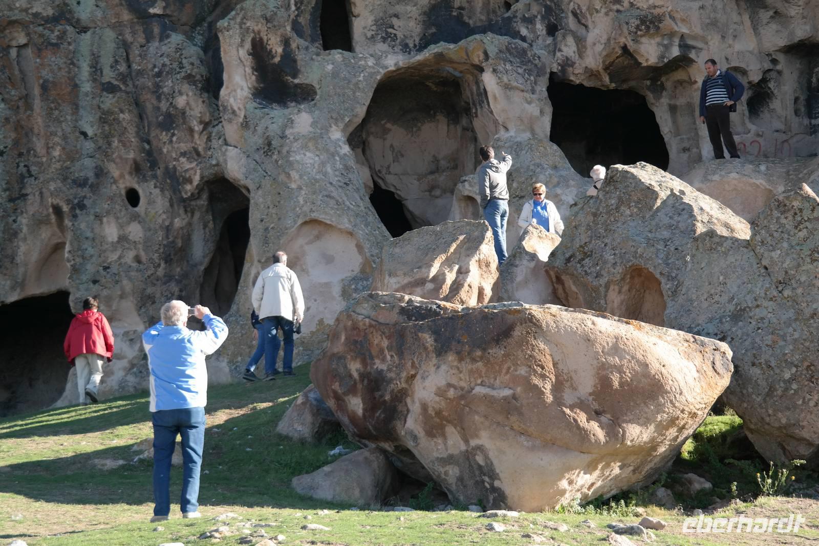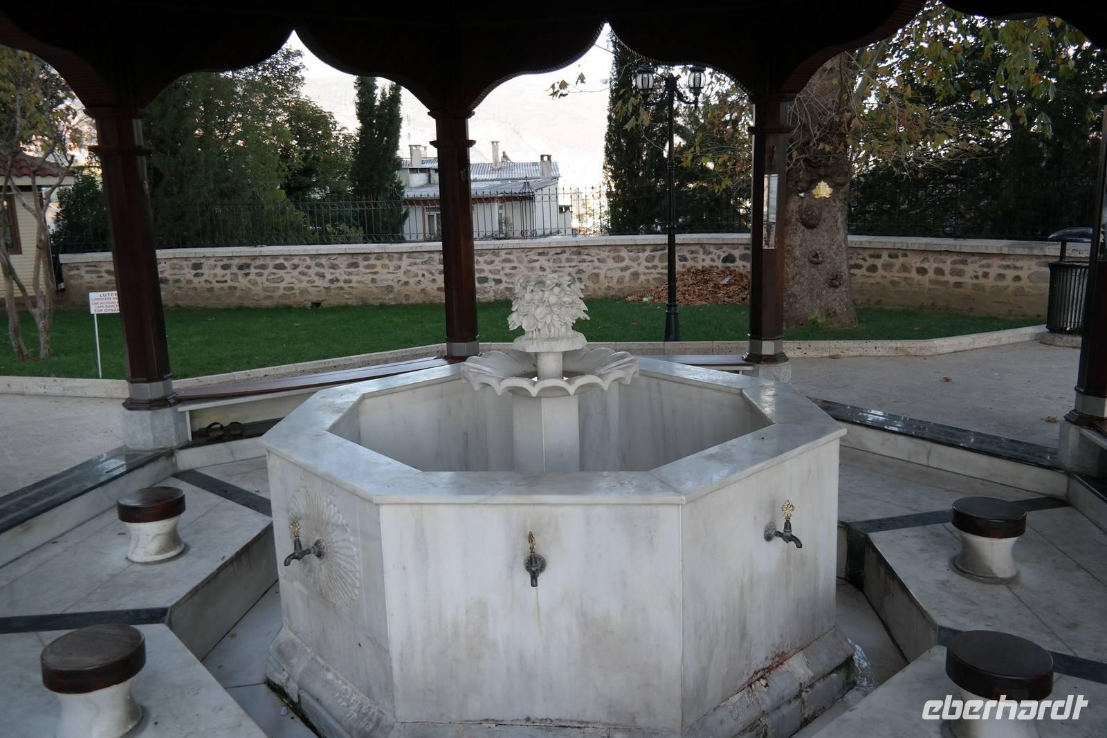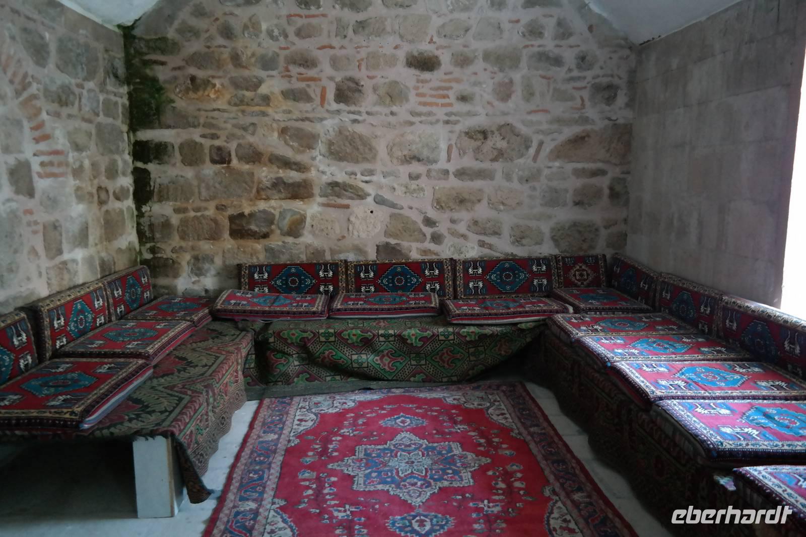 Nach dem Frühstück ging die Reise weiter und mitten durch das Phrygertal. Ein ortskundiger Führer aus einem Nachbarort war eigens für uns vom dortigen Bürgermeister geschickt worden, um uns zu einer ehemaligen Karawanserei zu lotsen, die wir in Ruhe besichtigten. Wir konnten nachvollziehen, wie früher Reisende mit ihren Kamelen Unterkunft fanden und sich von ihrer anstrengenden Arbeit hier erholten. Wir fuhren durch eine imposante Landschaft mit beeindruckenden Tuffsteinformationen, die an Kappadokien erinnerten bis zum Kibele-Felsen, auch Löwenstein genannt, auf dessen Oberfläche immer noch klar die zwei Löwenreliefs erkennbar sind. Diese zwei treuen Tiere begleiteten die Schutzgöttin laut Überlieferung auf ihren Wegen. Wir fuhren weiter durch das Phrygertal und erreichten den Löwenfelsen, der erst nach genauem Hinschauen als solcher erkennbar ist, da er leider auf der Seite liegt. In den umliegenden Felsen konnten wir Löcher erkennen, die Fenster und Eingänge der dort liegenden Höhlenwohnungen und -gräber darstellten. Später in Seyitgazi besuchten wir die dortige Alevitenmoschee und das danebengelegene Kloster. Anschließend erreichten wir gegen Abend Bursa. Bursa ist mit knapp zwei Millionen Menschen die viertgrößte Stadt der Türkei. Wir besuchten die Große Moschee. Die Große Moschee gilt als Meisterwerk der frühosmanischen Architektur. Anschließend besuchten wir den Seidenbasar, wo wir uns ein schönes Erinnerungsstück an die Reise kaufen konnte. Gegen 19 Uhr erreichten wir unser modernes Hotel. Wir genossen in exklusiver Atmosphäre unser Abendessen.