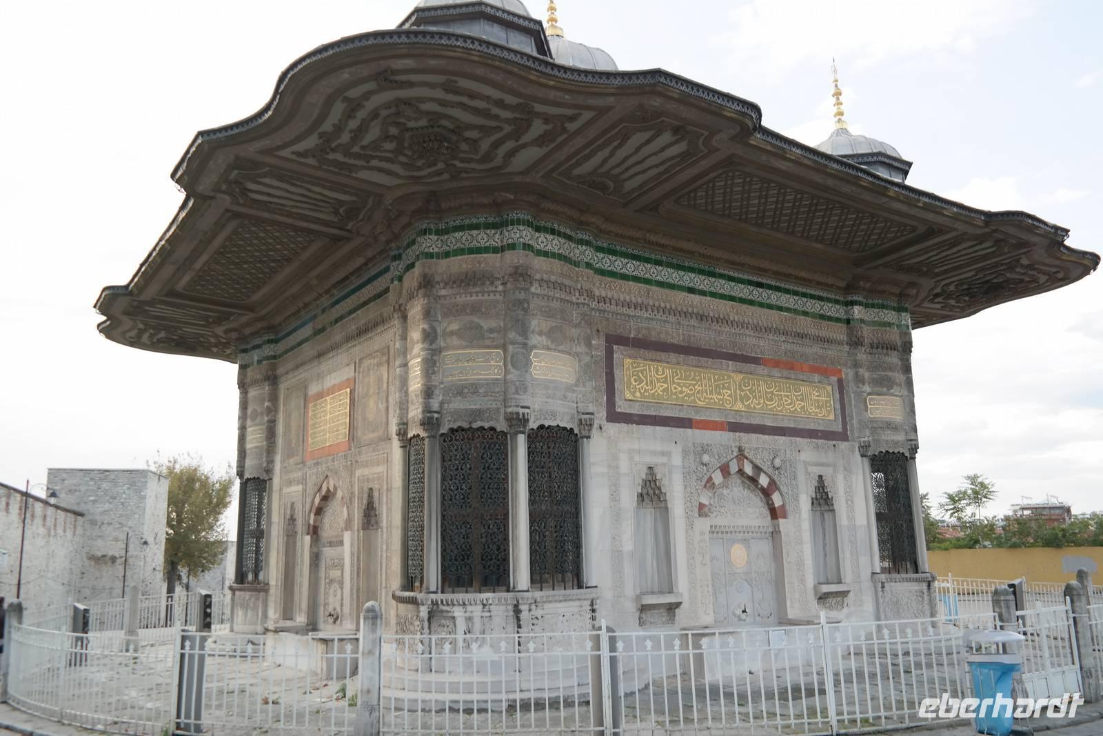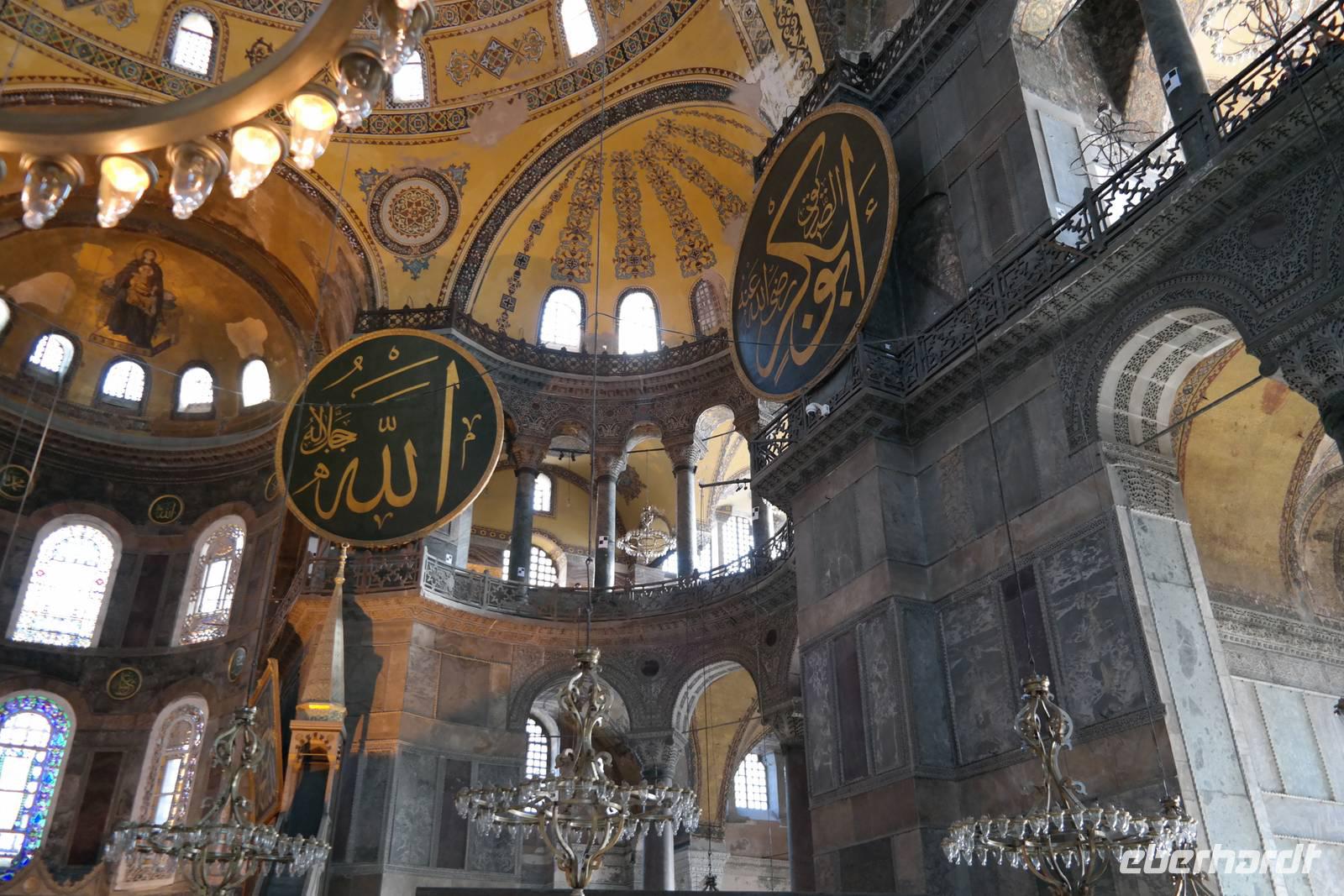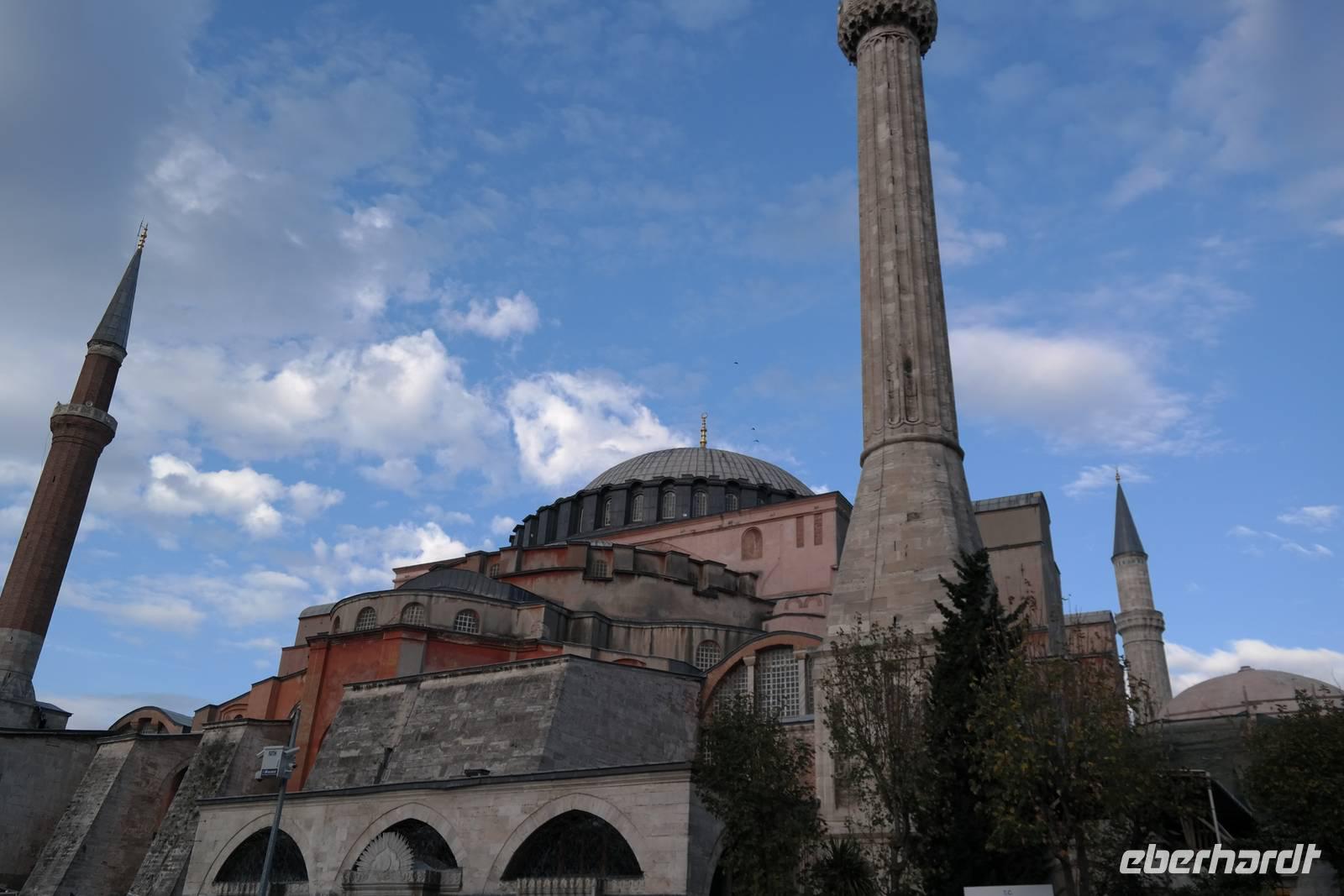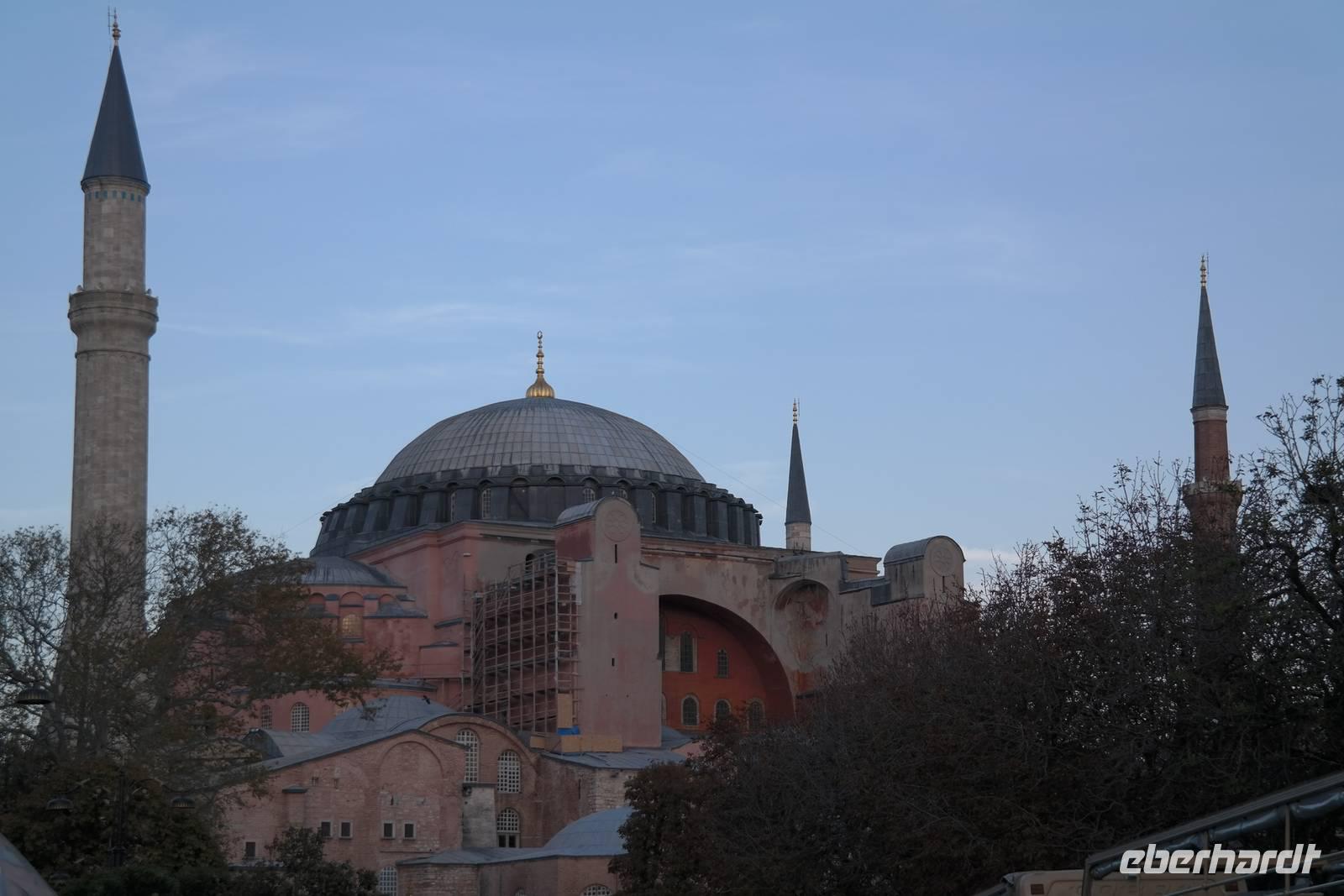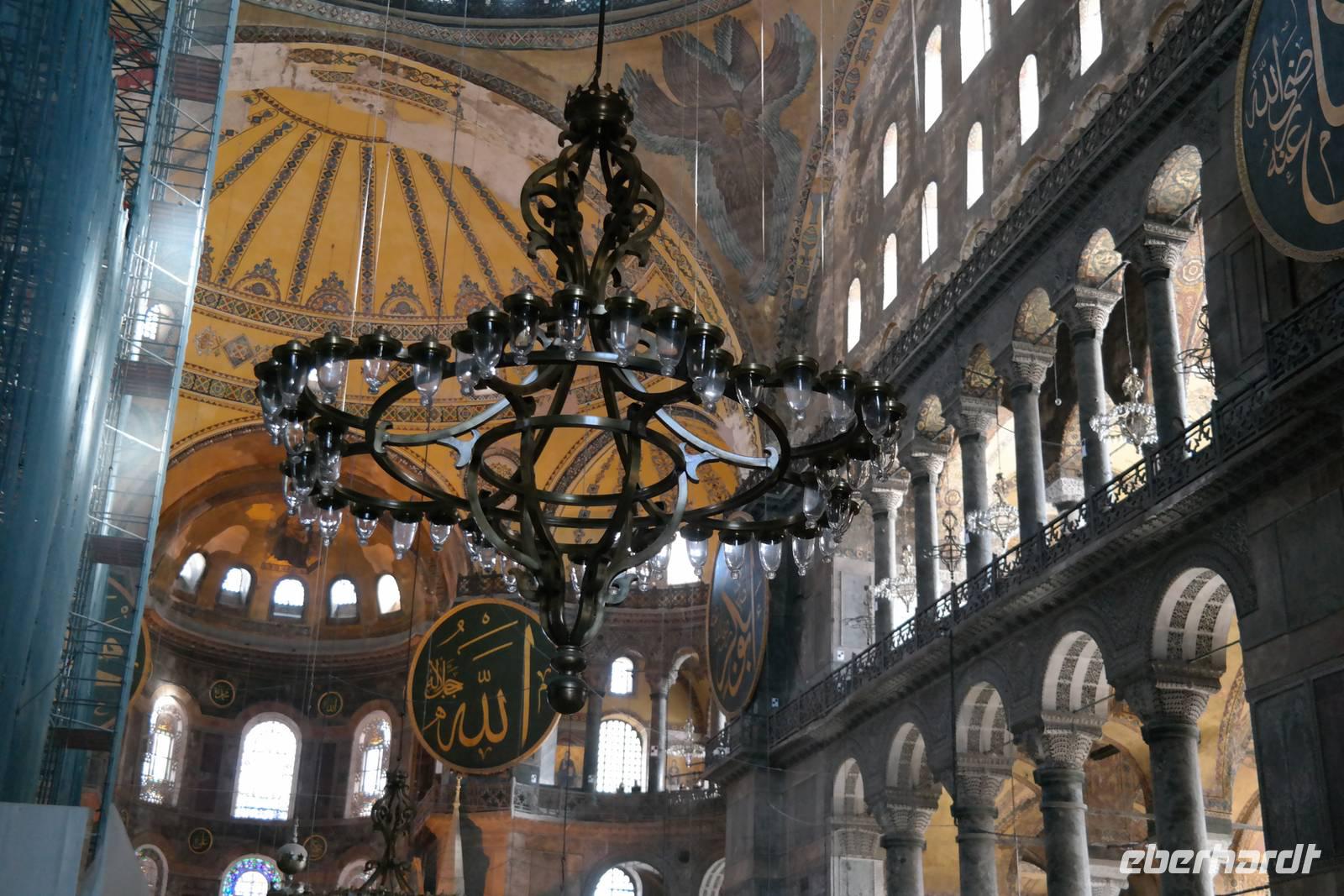 Am Morgen sollte es gleich wieder losgehen zum nächsten ereignisreichen Tag und wir freuten uns auf die Metropole Istanbul. Zuerst statteten wir aber der Grünen Moschee in Bursa einen Besuch ab. Schließlich brachen wir auf in Richtung Istanbul. Von Yalowa setzten wir mit der Fähre nach Eskihisar über und erreichten schließlich nach einem regelrechten Verkehrschaos endlich Istanbul. Dies hat unseren Plan etwas durcheinander gebracht, so dass wir den Tagesablauf umstrukturiert haben. Unsere Besichtigung startete am Wahrzeichen Istanbuls, der Hagia Sophia. Gebannt betrachteten wir die gigantische Kuppel und die zahlreichen massiven Leuchter, die überall von den Decken hingen. Für eindrucksvolle Fotos ein dankbares Objekt! Ismael führte uns durch die Haupthalle und viele Seitenflure und erzählte Wissenswertes zur bewegten Geschichte der Moschee, beziehungsweise Kirche Hagia Sophia. Dann besuchten wir die imposante und leider sehr volle Blaue Moschee, die ihren Namen von ihrer überwiegend blauen Inneneinrichtung bekam.