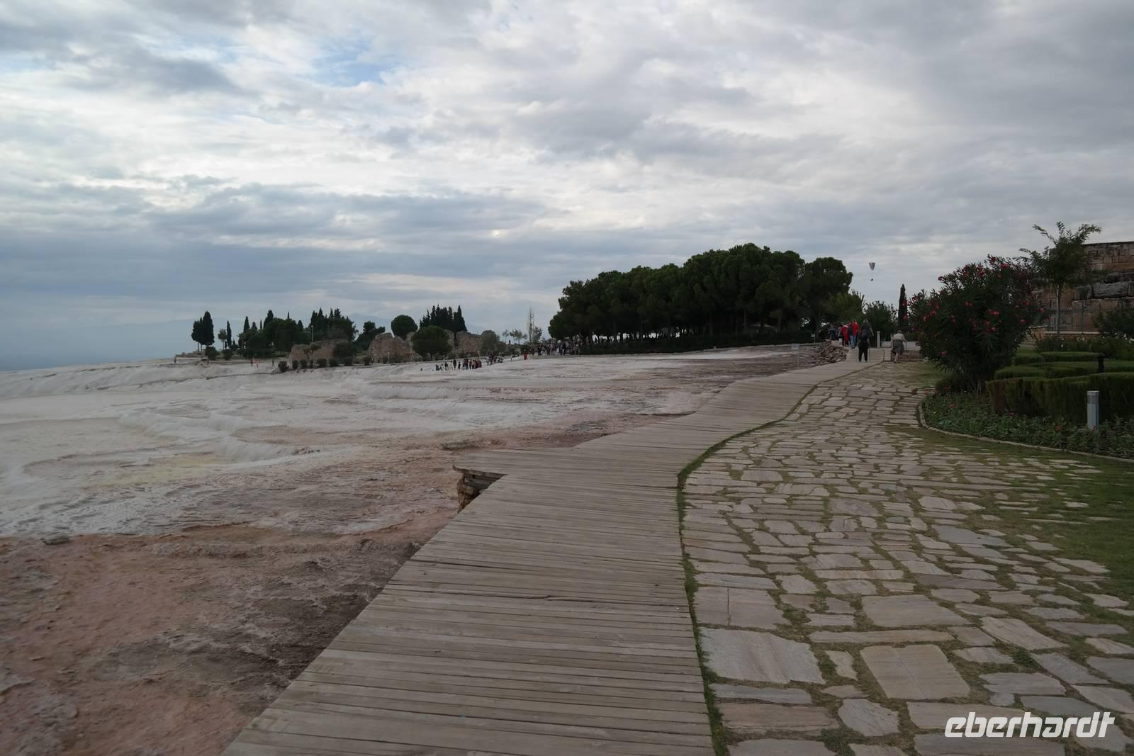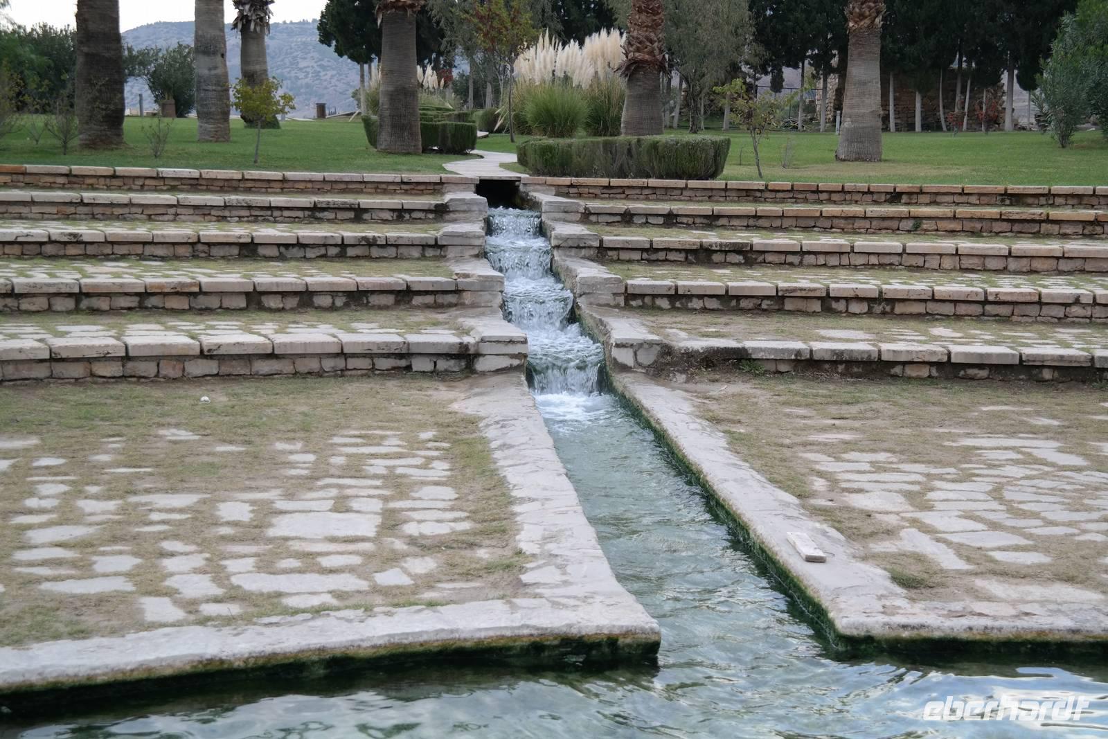 Bereits routiniert luden wir nach dem Frühstück wieder unser Gepäck und fuhren weiter in Richtung Süden, um die nächste antike Stadt zu erobern: Ephesus! Die gewältige Ausgrabungsstätte bot sehr viel zu sehen und ließ uns erahnen, welche Pracht hier früher geherrscht haben musste und mit wie viel architektonischem Wissen vor so langer Zeit bereits gearbeitet wurde. Durch die Zeitumstellung und die frühe Abfahrt waren wir fast alleine und schlenderten entlang der abfallende Straße bis zur überraschend großen Ruine der Bibliothek von Celsius, bis wir schließlich das Theater erreichten. Weiter ging die Fahrt zu einem ganz besonderen Naturerbe: den Kalksinterterrassen von Pamukkale. Bereits von unten konnten wir die Schönheit dieser Gesteinsformation erahnen und oben angelangt spazierten wir im Spätnachmittagslicht durch die antiken Ruinen bis in die gepflegten Thermalanlagen. Mit reichlich Freizeit im Gepäck konnten wir die tolle Aussicht und den Anblick der strahlendweißen Steine genießen und barfuß auf den, mit warmem Quellwasser überdeckten, Terrassen spazieren gehen. Sogar baden war erlaubt. Hocherfreut über dieses einzigartige Erlebnis schlenderten wir den Weg durch die Anlage zurück und erreichten am frühen Abend unser Hotel in Pamukkale, wo wir nach Wunsch im hoteleigenen Thermalbecken entspannen konnten.