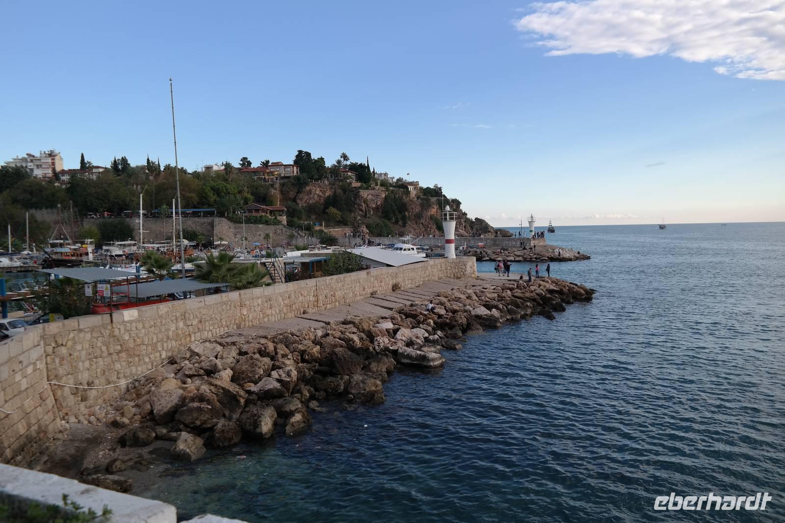 Nach dem Frühstück macht wir uns auf den Weg nach Antalya, von wo wir unsere Reise vor bereits mehr als einer Woche begonnen hatten. Unterwegs machten wir Halt bei einer traditionellen Teppichknüpferei, wo wir freundlich begrüßt und durch die „heiligen Hallen" geführt wurden. Zuerst konnten wir zuschauen, wie ein echter türkischer Teppich geknüpft wird und staunten nicht schlecht über die einzigartige Technik, mit der die Seidenfäden von den Raupenkokons gewickelt werden. Bei einer Vorführung bestaunten wir zahlreiche handgeknüpfte Teppiche in unzähligen Variationen und natürlich durfte jeder einmal Probelaufen und -fühlen. In Antalya machten wir Halt am Hafen, wo wir gemeinsam die letzten Sonnenstrahlen des Tages genossen haben. Gegen Abend erreichten wir wieder unser Ausgangshotel in Antalya, in dem wir uns schon bestens auskannten. Vor dem Abendessen verabredeten wir uns für einen kleinen Stadtbummel, um die letzten Erinnerungsstücke an die Reise zu erwerben. Anschließend genossen wir gemeinsam unser letztes Abendessen und probierten noch einmal von allen landestypischen Köstlichkeiten, die es bei uns nicht zu kaufen gibt, bevor wir schließlich unsere Koffer packten und uns auf die zeitige Abreise am kommenden Tag vorbereiteten. Der erste Abschied war nun leider gekommen und wir mussten uns von einem Ehepaar verabschieden die am nächsten Tag weiter zur Badeverlängerung nach fahren sollten. Es war ein sehr herzlicher Abschied.