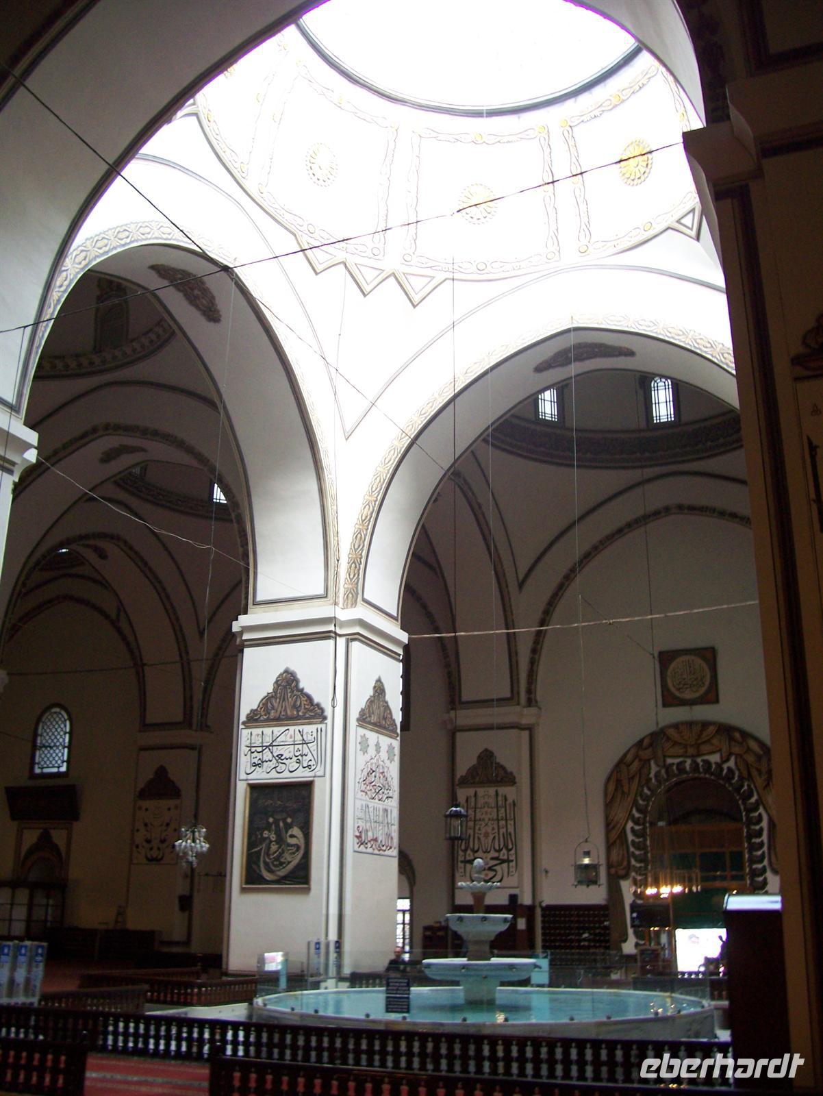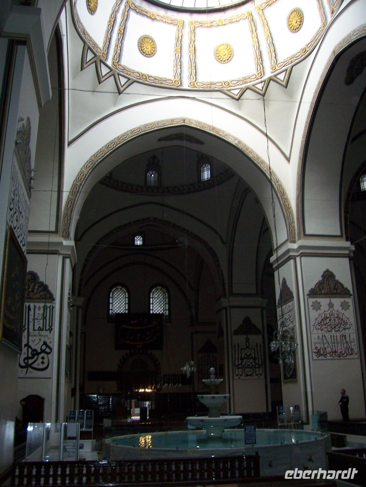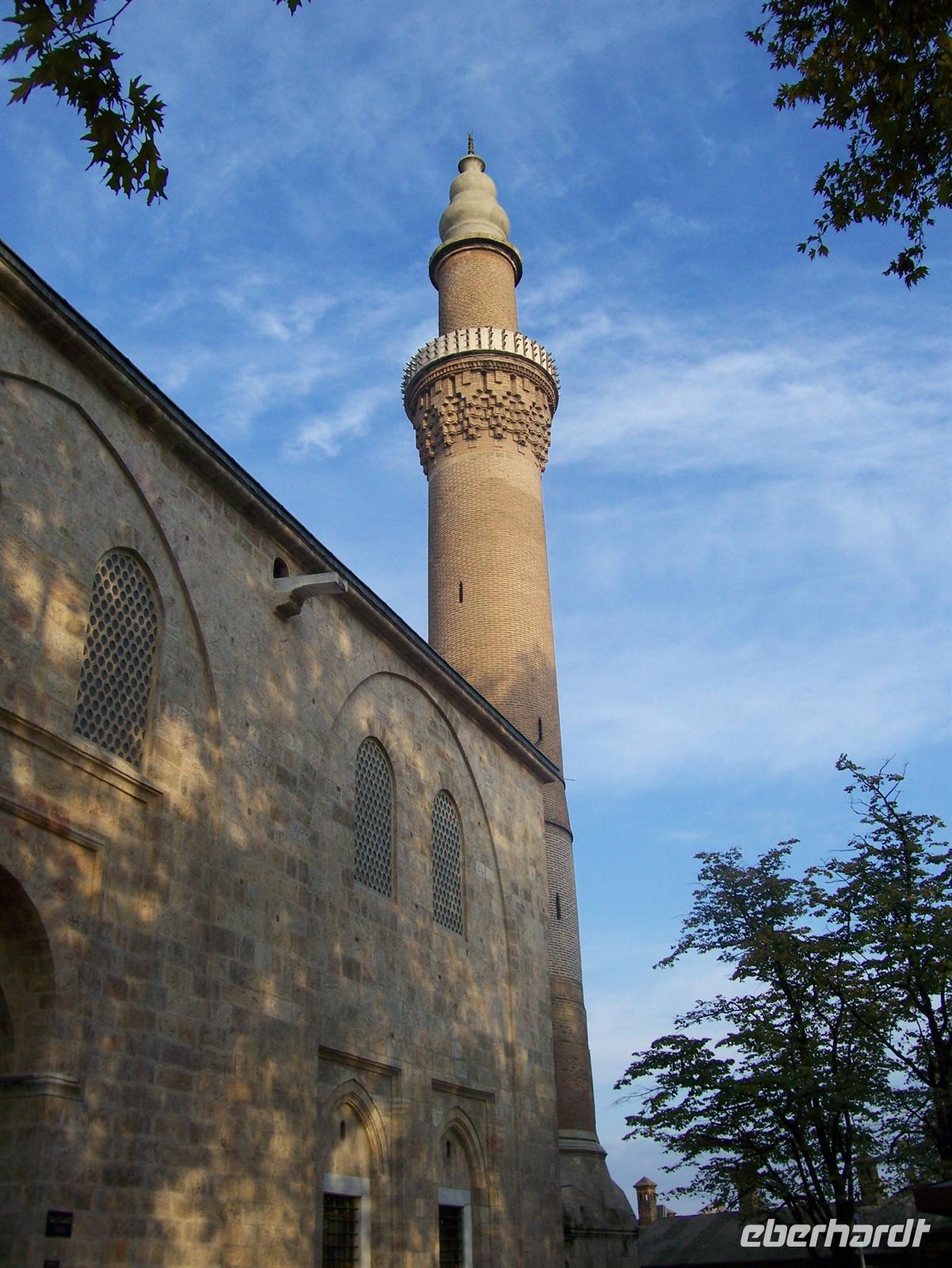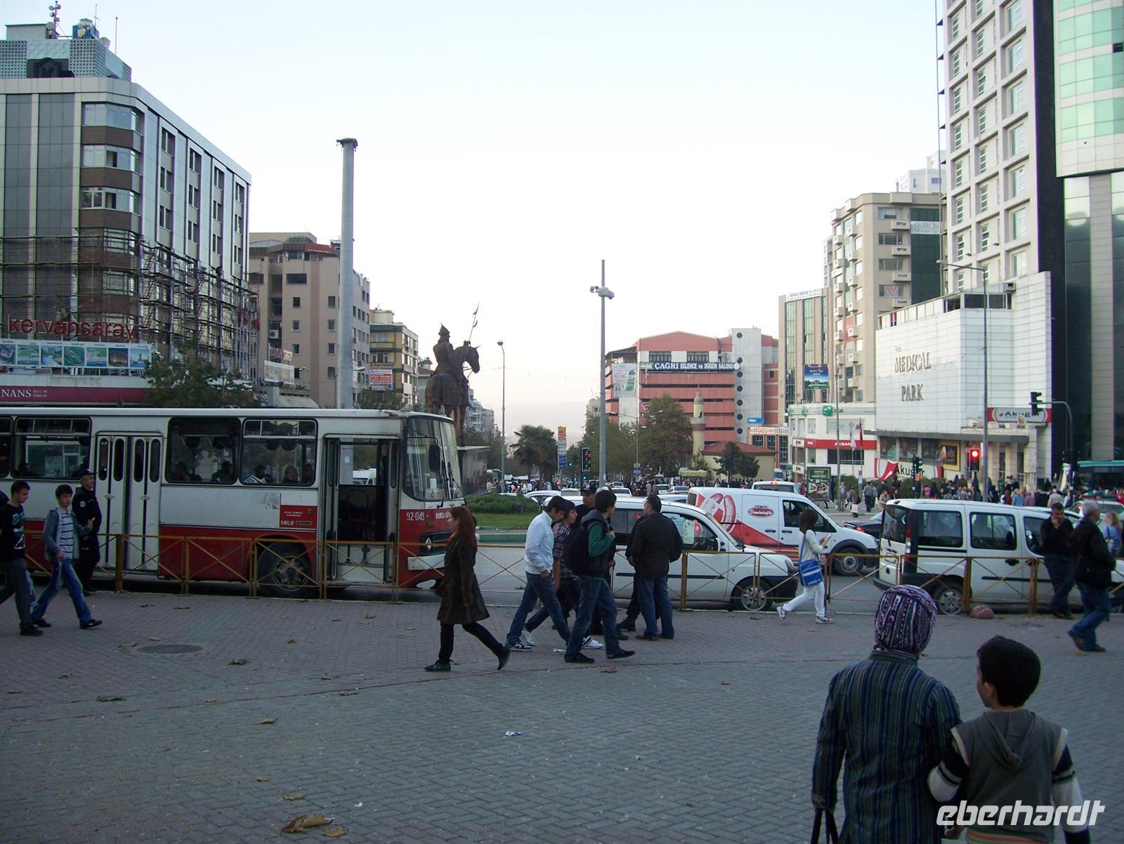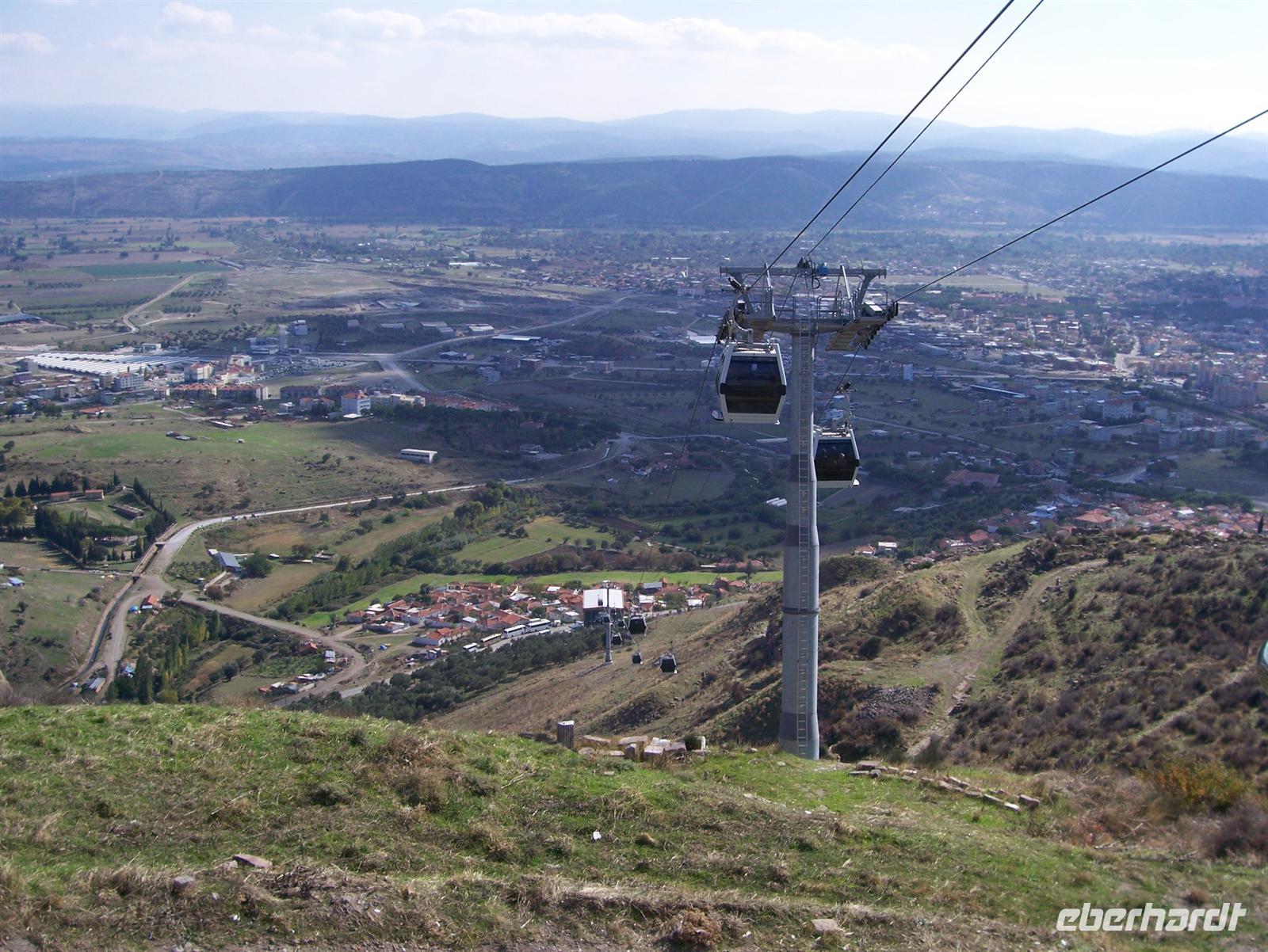 Bei schönstem Morgenrot frühstückten wir auf der gläsernen Veranda des Hotels und starteten früh in Richtung Nordwesten. Zunächst besuchten wir die imposanten Löwen-Reliefs von Aslankaya, bevor wir weiter nach Seyitgazi fuhren. Dort besichtigten wir die über der Stadt thronende Moschee und das Kloster der Alewiten Derwische. Nach einer Mittagspause fuhren wir weiter über Eskeshir, einer der vielen Trabantenstädte, in die Vier-Millionen-Einwohnerstadt Bursa, in deren Nähe sich auch ein beliebtes Skigebiet befindet. Nachdem wir uns durch die stark frequentierten Straßen geschlängelt und im zentral gelegenen Hotel „Kervensaray“ eingecheckt hatten, führte uns Yusuf noch zum Seidenmarkt bzw. zum Basar von Bursa. Eine interessante Entdeckung machten wir noch bei den Verkehrsbetrieben der Stadt: Hier kommen noch die sogenannten Dresdner „Hechtwagen“ aus Gothaer Produktion zum Einsatz, wie sie bei uns im Liniendienst fast nur noch bei der Kirnitzschtalbahn in der Sächsischen Schweiz fahren.