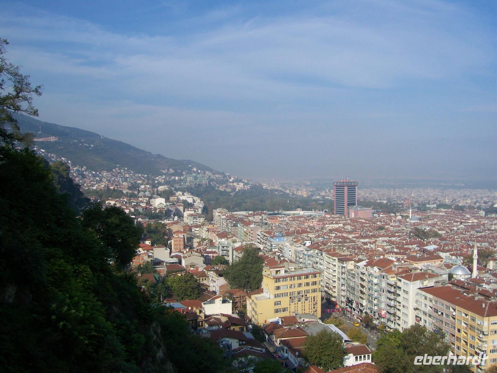 Gegen 8 Uhr fuhren wir zum Uhrenturm von Bursa, um von dort die Stadt zu überblicken. Nach einem kurzen Aufenthalt ging es weiter Richtung Marmara-Meer. Über Birecek und Izmit gelangten wir nach Yalowa. Wegen des milden Klimas haben sich in dieser Region besonders viele Gärtnereien, Baumschulen und Plantagen angesiedelt. In Yalowa setzten wir, begleitet von einem