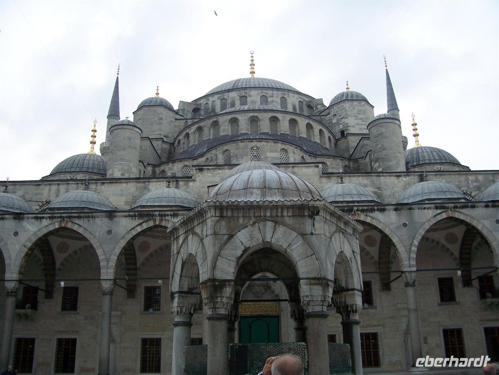 besuchten wir die gegenüber der Hagia Sophia gelegene Sultan-Ahmet-Moschee, auch Blaue Moschee genannt. Nach einem kurzen Fußweg erkundeten wir in der Yerebatan-Zisterne ein