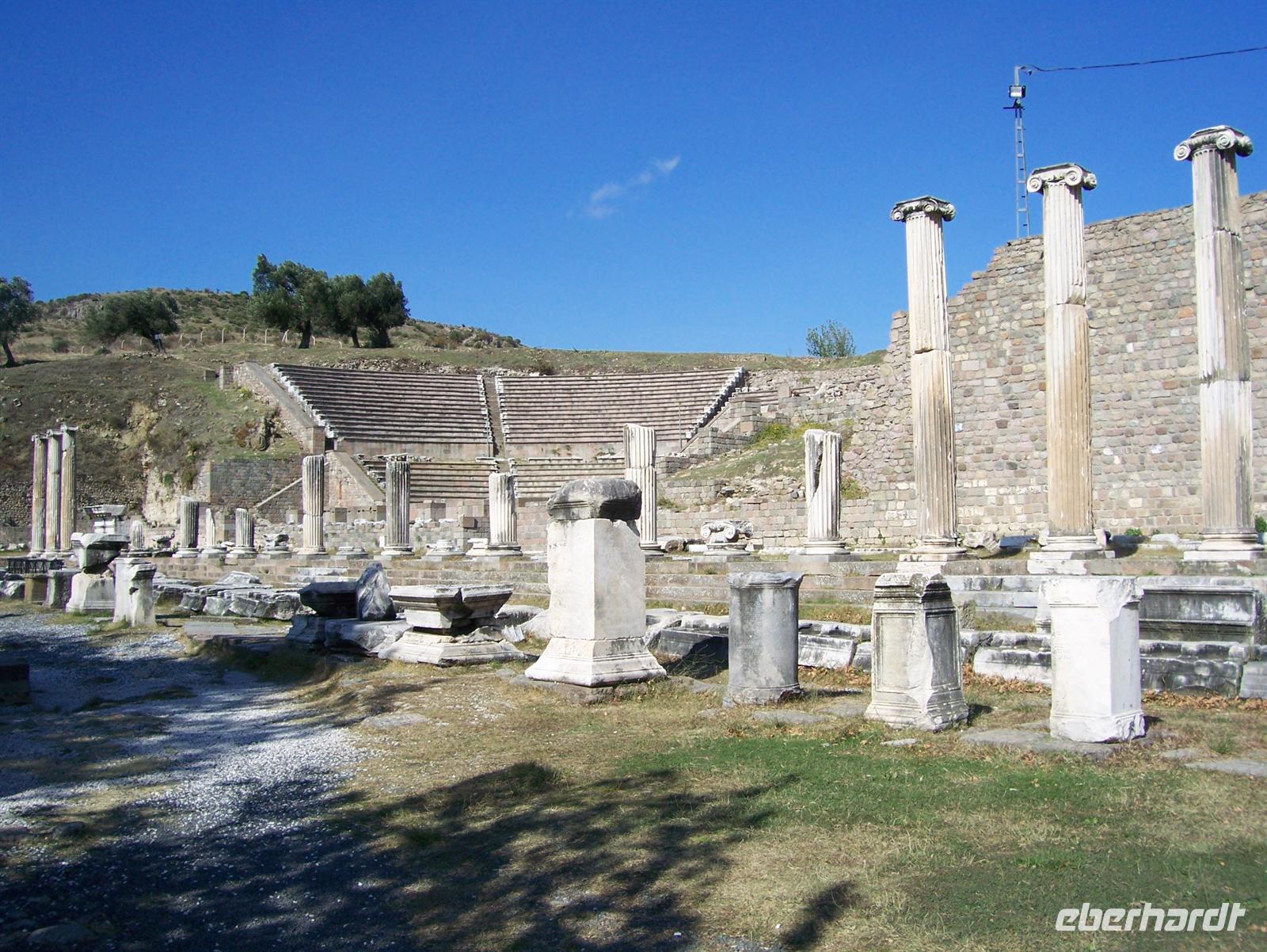 Früh aufstehen war heute angesagt, denn es erwartete uns die längste Tagesetappe auf unserer Reise. Gegen Mittag erreichten wir Pergamon, eine der ältesten Siedlungen der Türkei. Nachdem wir die ehemalige Heilanstalt Asklepion besucht hatten, fuhren wir vom Fuß des Burgberges mit der neu errichteten Seilbahn auf den 330 Meter hohen Gipfel. Auf dem Plateau befindet sich die mächtige Akropolis, von der wir bei herrlichem Sonnenschein einen fantastischen Blick über die Stadt hatten. Nachdem wir die Hafenstadt Izmir passierten, in der sich der zweitgrößte Hafen des Landes befindet, erreichten wir gegen 19 Uhr die Küstenstadt Kusadasi.