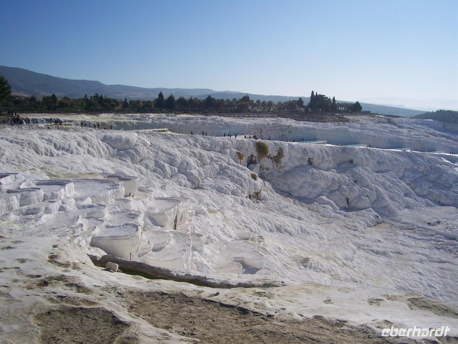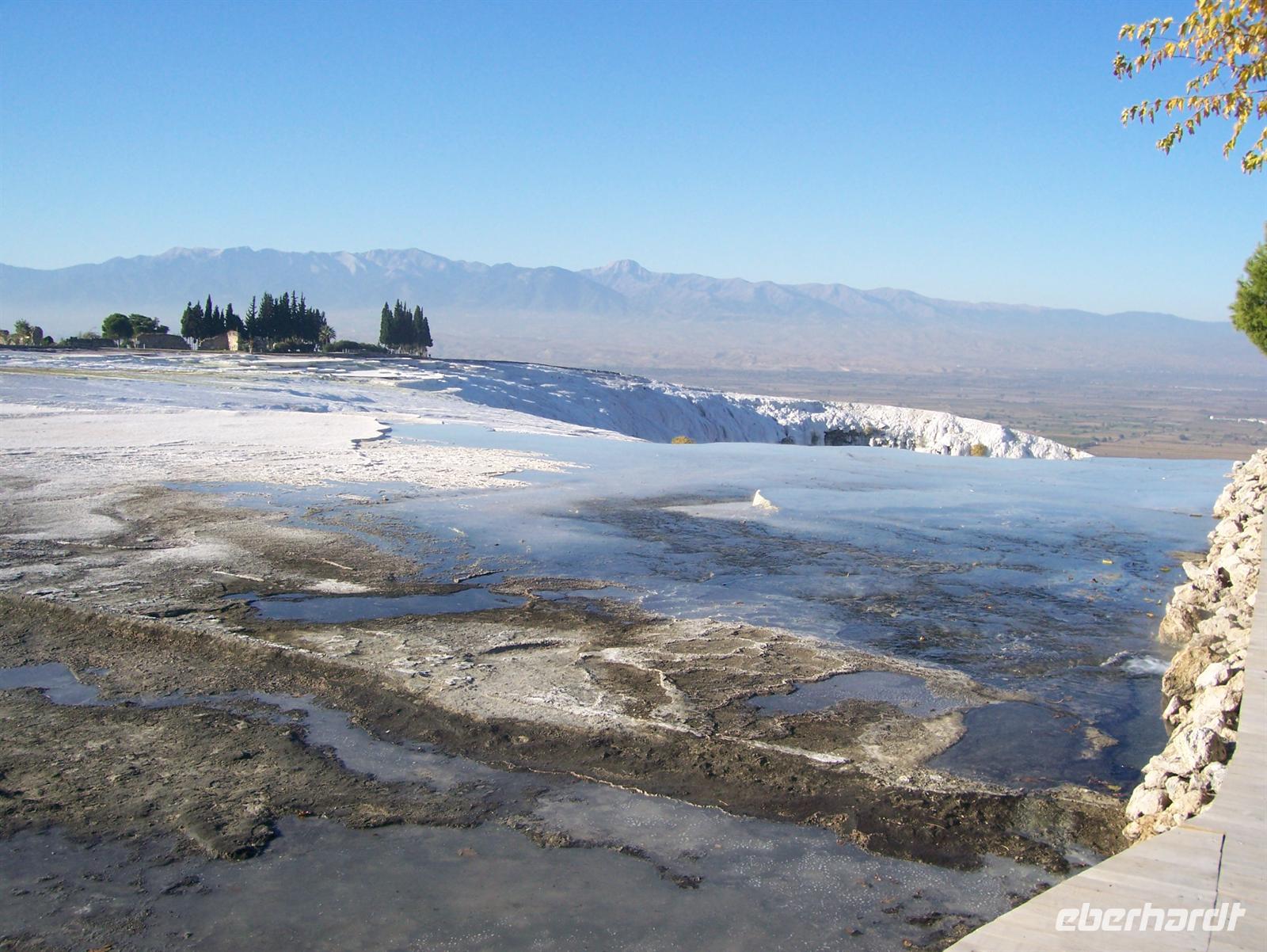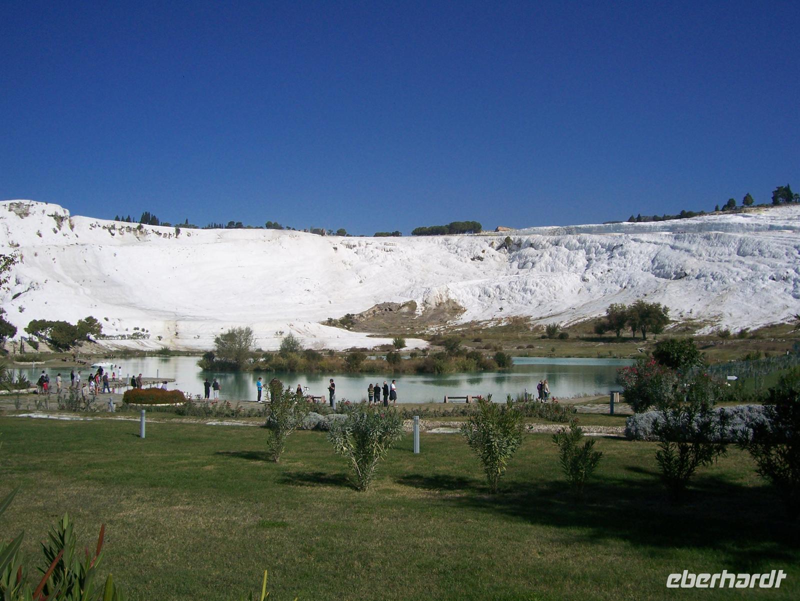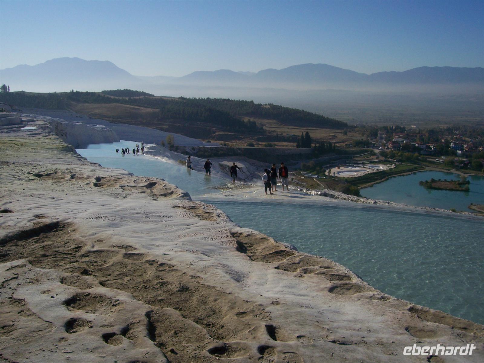 Noch lag der Morgentau auf den Wiesen, da erreichten wir bereits die antike griechische Stadt Hierapolis, in der einmal über 200.000 Einwohner lebten und die immer wieder von zahlreichen Erdbeben heimgesucht wurde. Im Anschluss schauten wir uns die Kalkterrassen von Pamukkale an und der eine oder andere nahm ein warmes Fußbad, genoss die wohltuende Wärme des Thermalwassers oder einfach nur den beeindruckenden Blick über die faszinierende Landschaft. Danach nahmen wir wieder Kurs auf den Ausgangspunkt unserer Reise - Antalya. Auf dem Weg dorthin besuchten wir noch eine staatliche