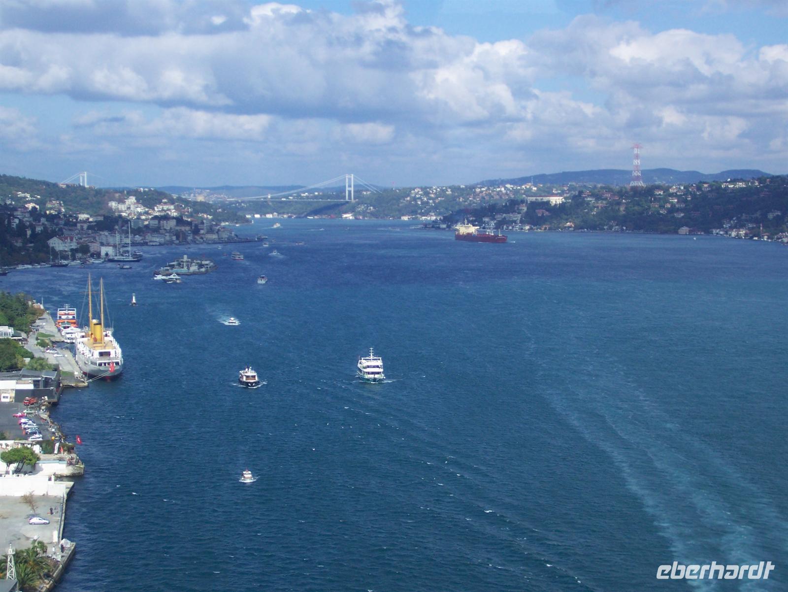 Stück Unterwelt des alten Konstantinopel. Gegen Mittag besuchten wir den mächtigen Topkapi-Palast, bevor jeder nach einer ausgiebigen Mittagspause individuell den Gewürzbasar der Stadt sprichwörtlich erschnuppern konnte. Gegen Nachmittag unternahmen wir gemeinsam mit den Gästen der Istanbul-Reise von EBERHARDT Travel, die fünf Tage in dieser schönen Stadt verweilten, eine zweistündige Bootsfahrt auf dem Bosporus, was soviel wie „Straße von Konstantinopel““ heißt. Am Abend genossen wir über den Dächern der Stadt auf dem 66 m hohen Galata-Turm eine „Istanbul-bei-Nacht-Show“ mit landestypischer Live-Musik und liebreizenden Bauchtänzerinnen.