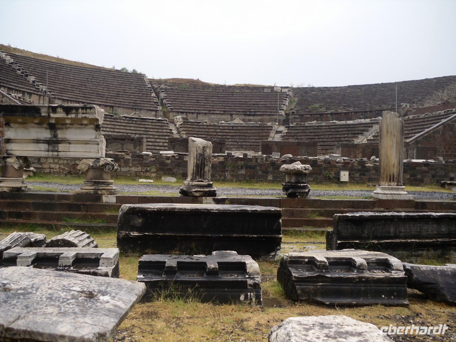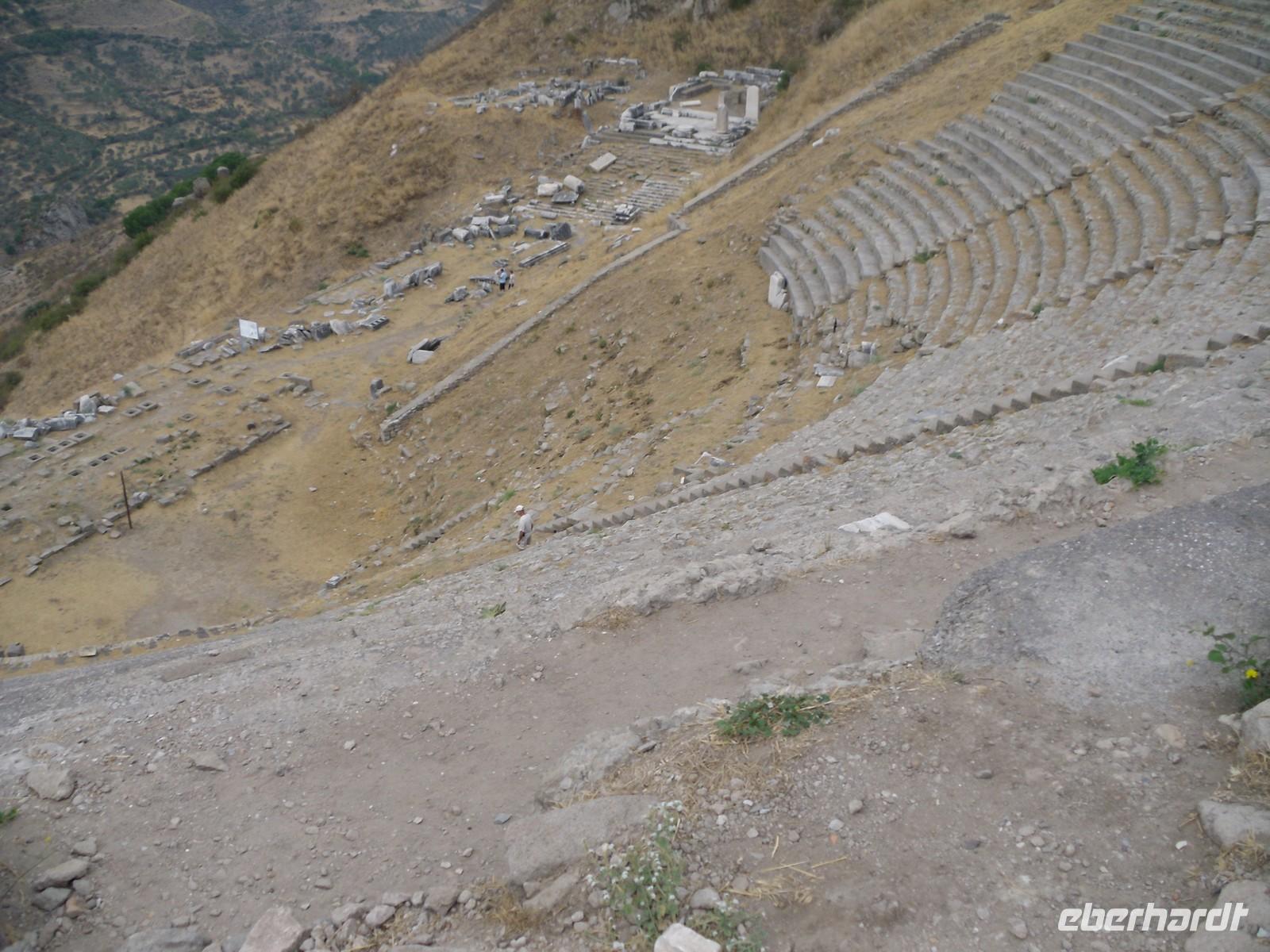 Die antike Stadt Pergamon liegt hoch auf dem Burgberg der Stadt Bergama. Das berühmteste Exponat von Pergamon - der Zeusaltar - befindet sich noch heute in unserem Pergamonmuseum in Berlin. Da die Busse hier leider nicht mehr hochfahren dürfen, nahmen wir den Lift auf unserem Weg nach oben.