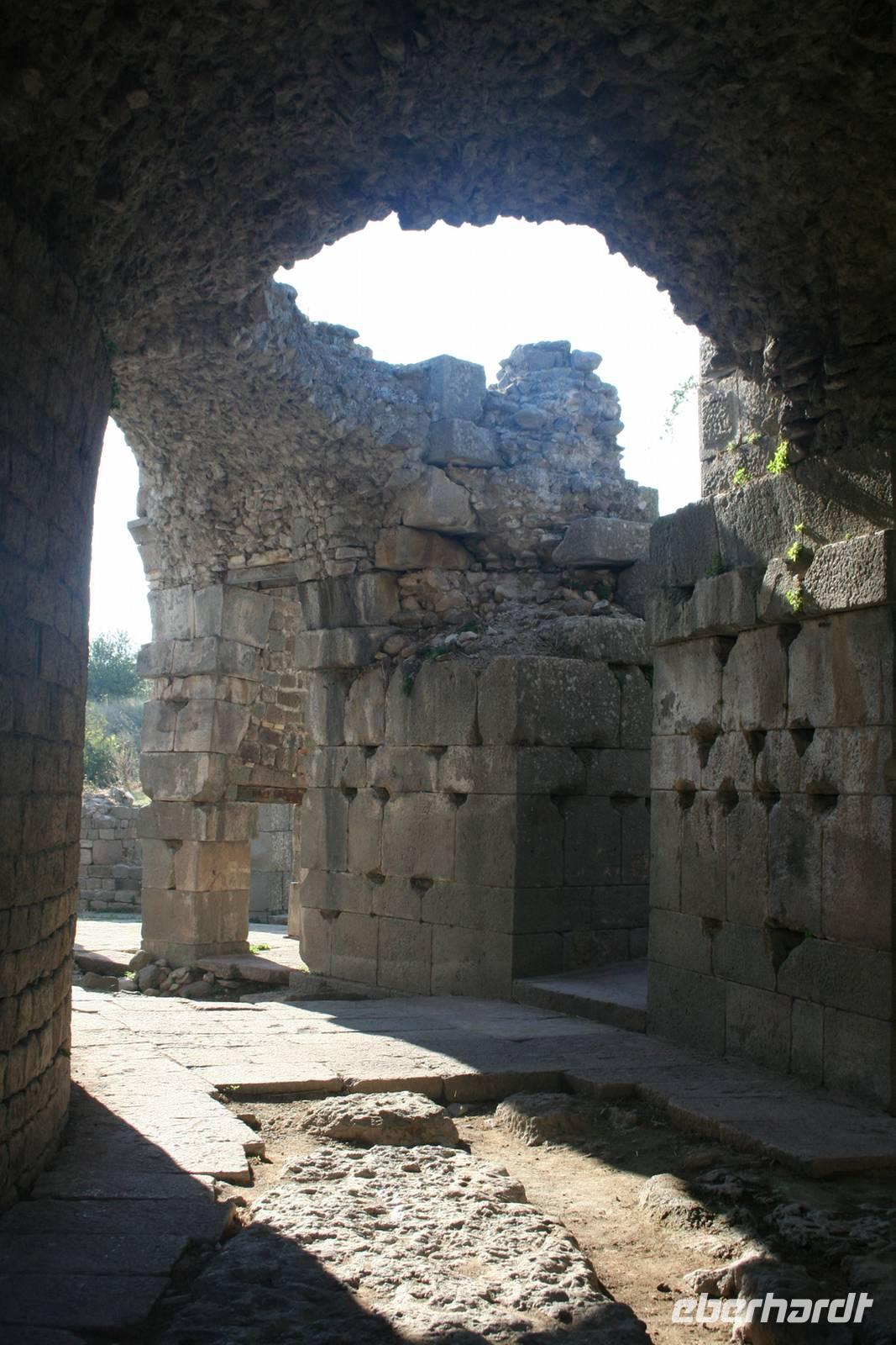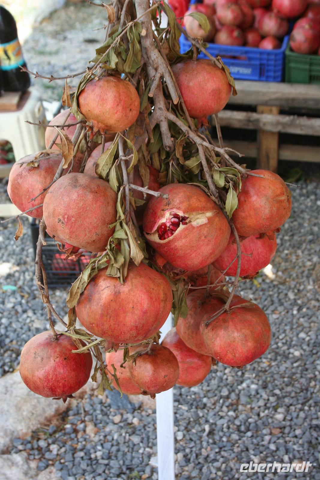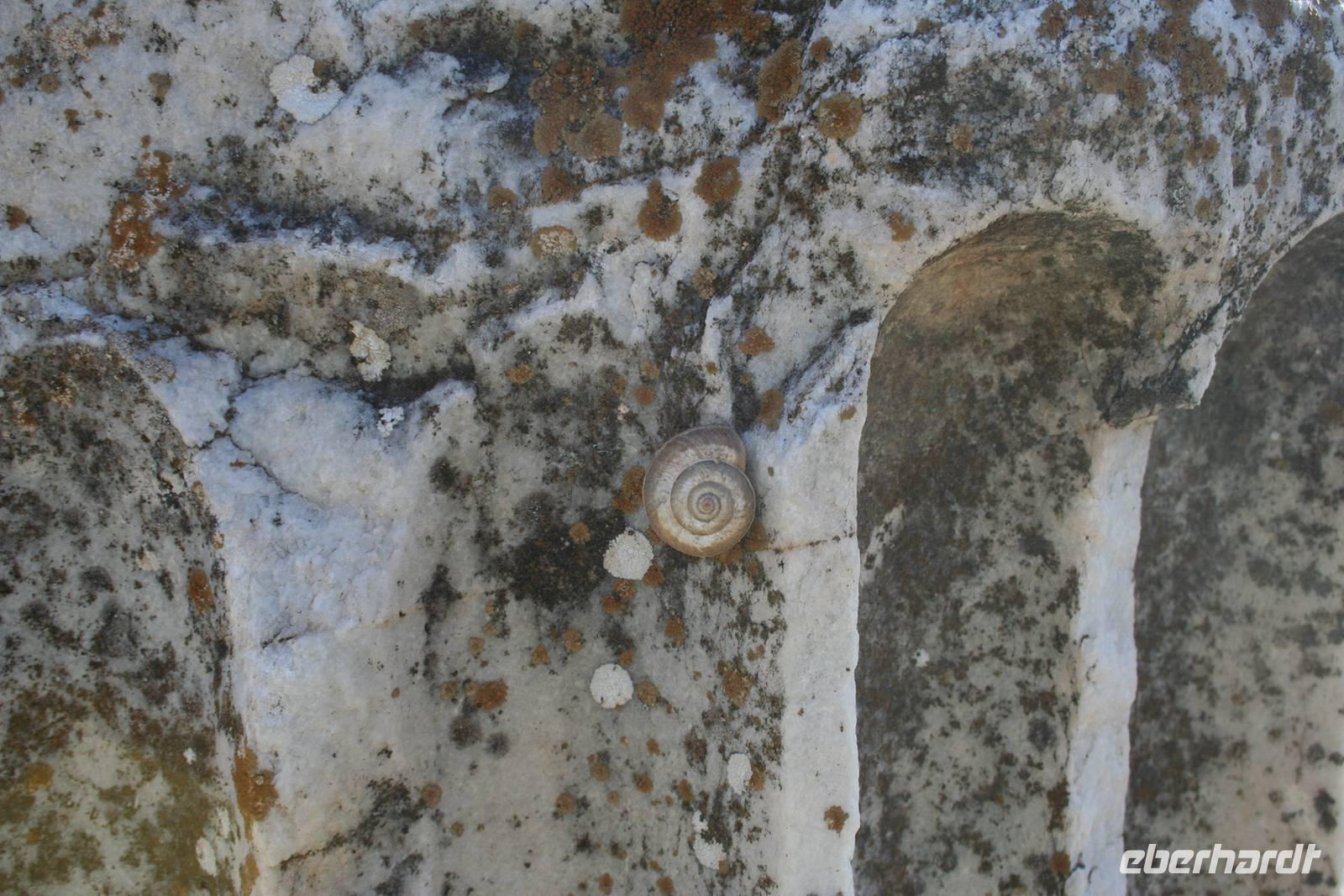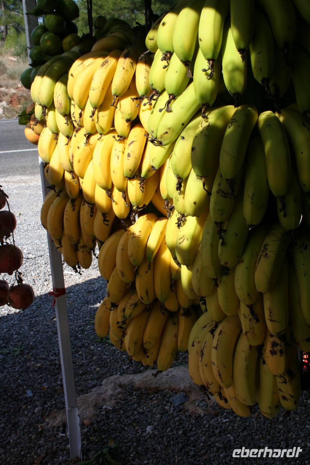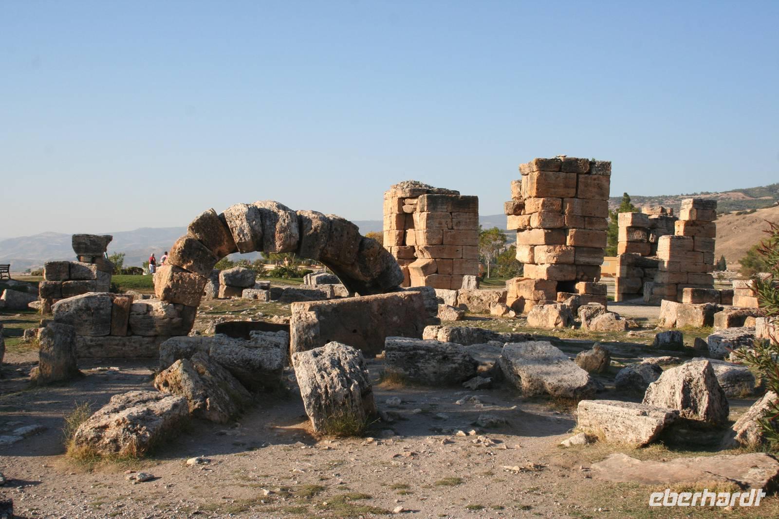 Gemütlich starteten wir heute zu unserer eigentlichen Rundreise. Zuerst versammelten wir uns im Panoramarestaurant des Hotels, wo Serdar uns genau beschrieb, was uns Tag für Tag auf unserer Rundreise durch sein Heimatland erwarten würde. Bei strahlendem Sonnenschein stiegen wir dann gegen 9.00 Uhr in den praktischen kleinen Bus und erkundeten kurz darauf das Zentrum von Antalya, wo wir auch unser Geld in türkische Lira tauschen konnten. Nach etwas Freizeit in der Sonne brachen wir schließlich auf zu unserer ersten antiken Stadtbesichtigung - nach Perge. Dort angekommen durchquerten wir zuerst die altrömische Arena und verbrachten dann einen Teil des Vormittags zwischen den weißen Säulen und Marmorblöcken der gewaltigen Ausgrabungsstätte, die frei zugänglich waren. Während der Busfahrten lieferte uns Serdar immer wieder umfassende Informationen zu Geschichte, Traditionen und regionalen Eigenheiten unseres jeweiligen Aufenthaltsortes. Wir machten Halt an einem kleinen Obststand auf dem Land, wo es frische Bananen, Mandarinen und Granatäpfel zu kaufen gab, deren Geschmack sich mit unserer Supermarktware nicht vergleichen ließ! Zum Mittag gab es für die meisten von uns Pide oder Kebab, typische türkische Gerichte. Bei der Durchquerung der anatolischen Hochebene konnten wir die Temperaturunterschiede zur südlichen Küste hautnah kennenlernen, denn es war selbst verglichen mit Deutschland trotz Sonne ziemlich frisch. Am Abend erreichten wir unser Hotel mitten im Stadtzentrum von Afyon, wo es trotz Wochenende überall geöffnete Geschäfte mit Wurst-, Käse- oder Zuckerspezialitäten gab. Eine fröhliche Hochzeitsfeier im Hotel gab uns einen Einblick in die nationale Heiratskultur und wir gingen gut gesättigt und neugierig auf den nächsten Tag ins Bett.