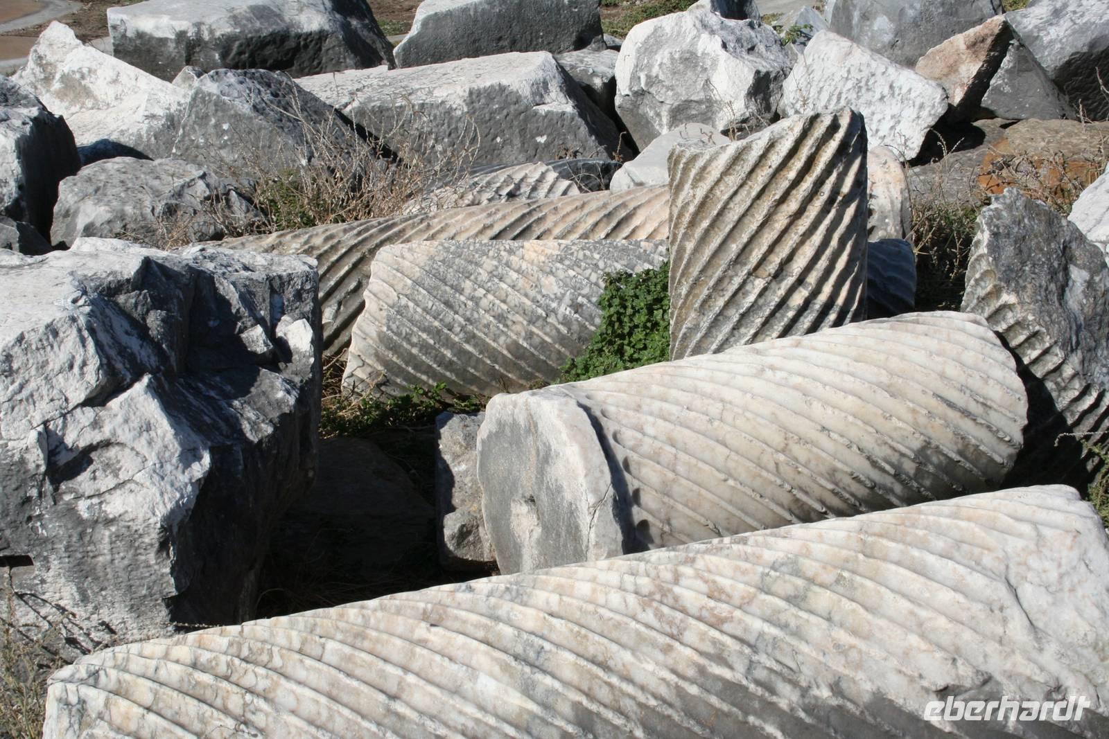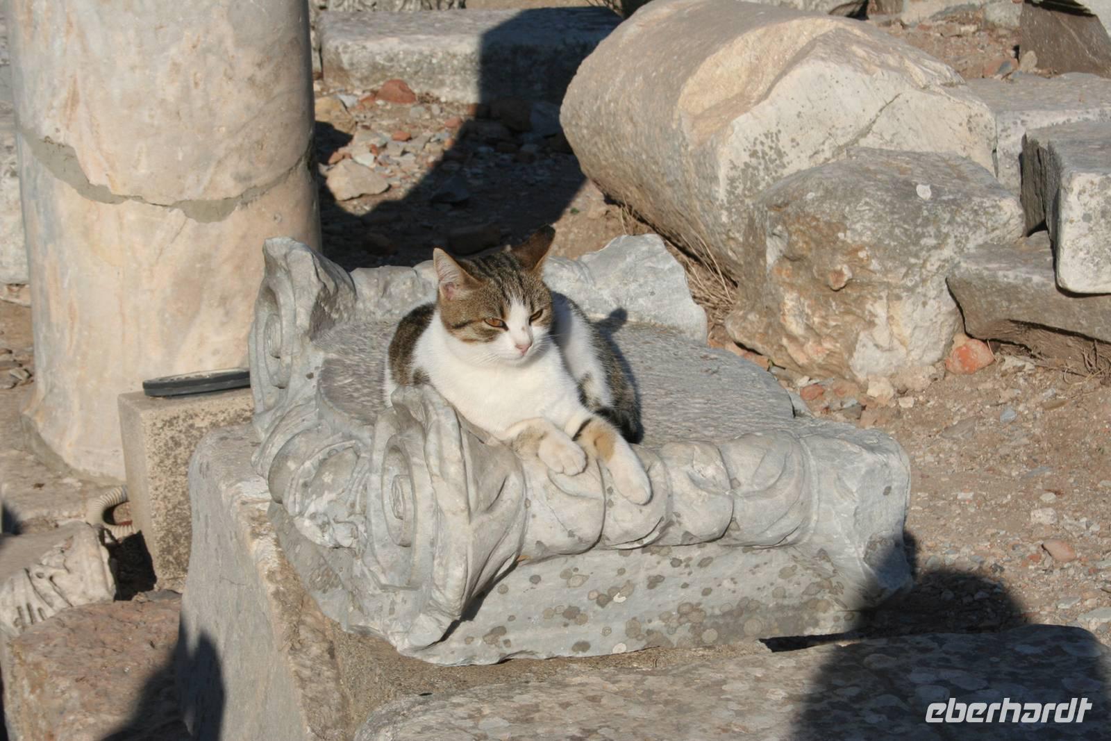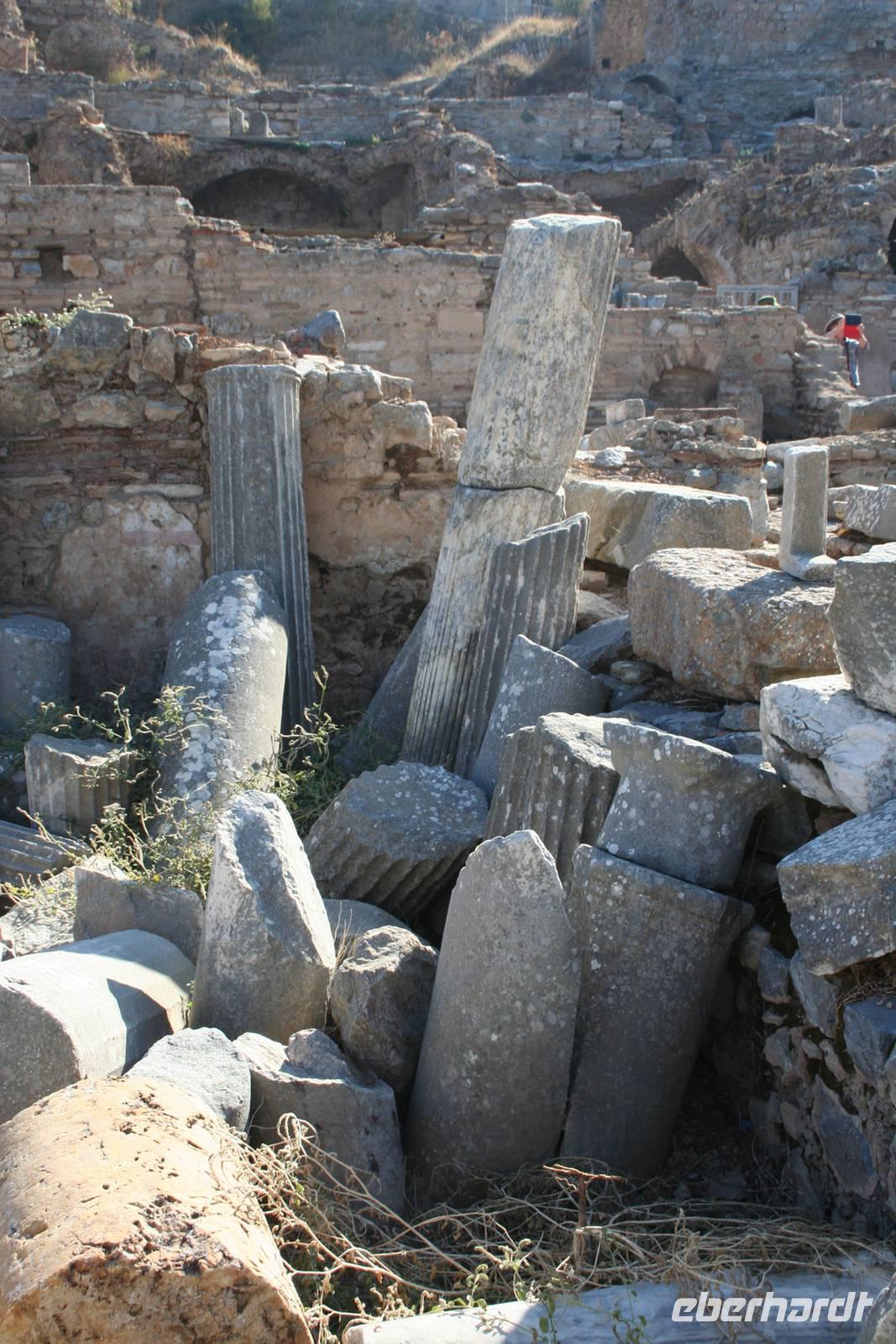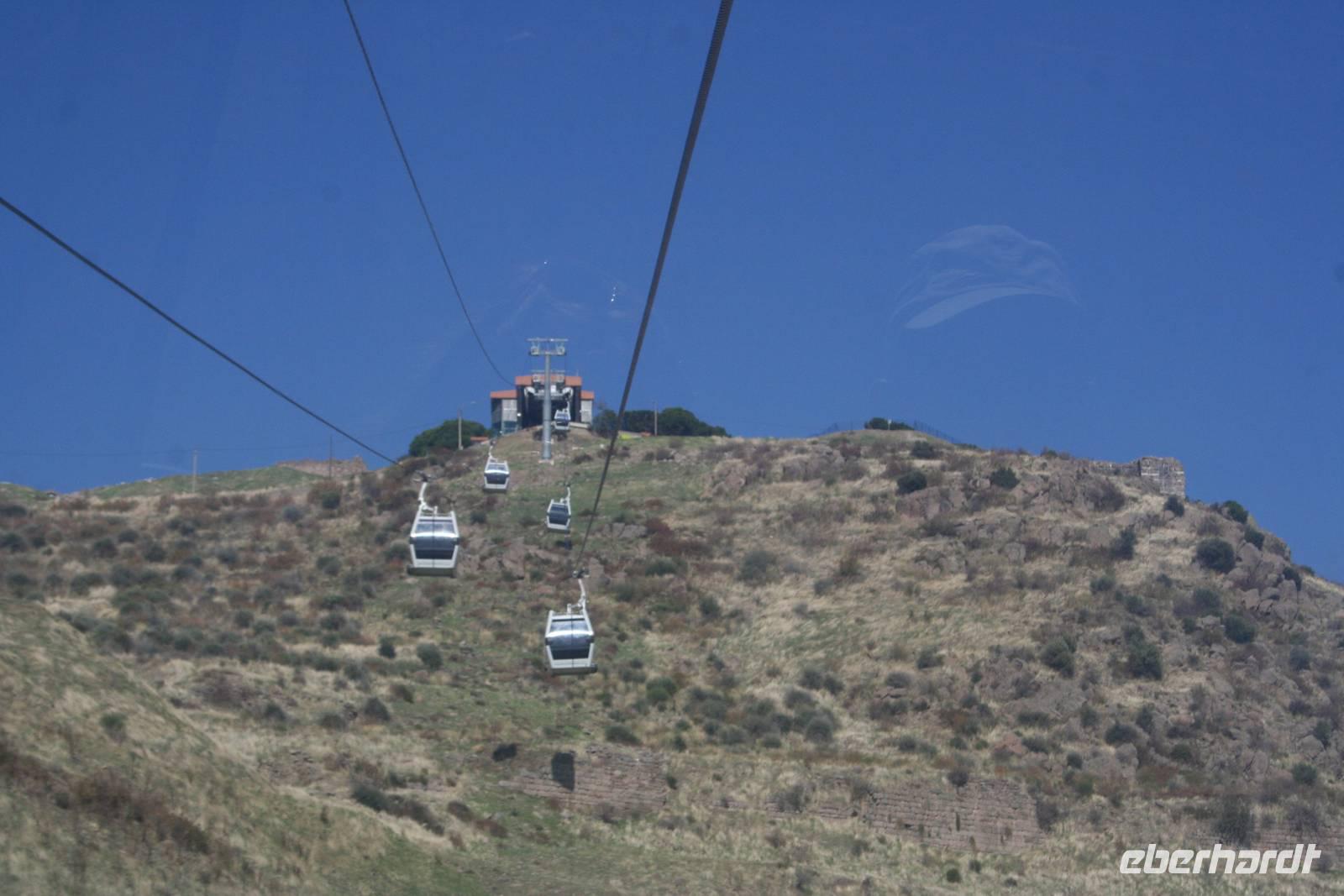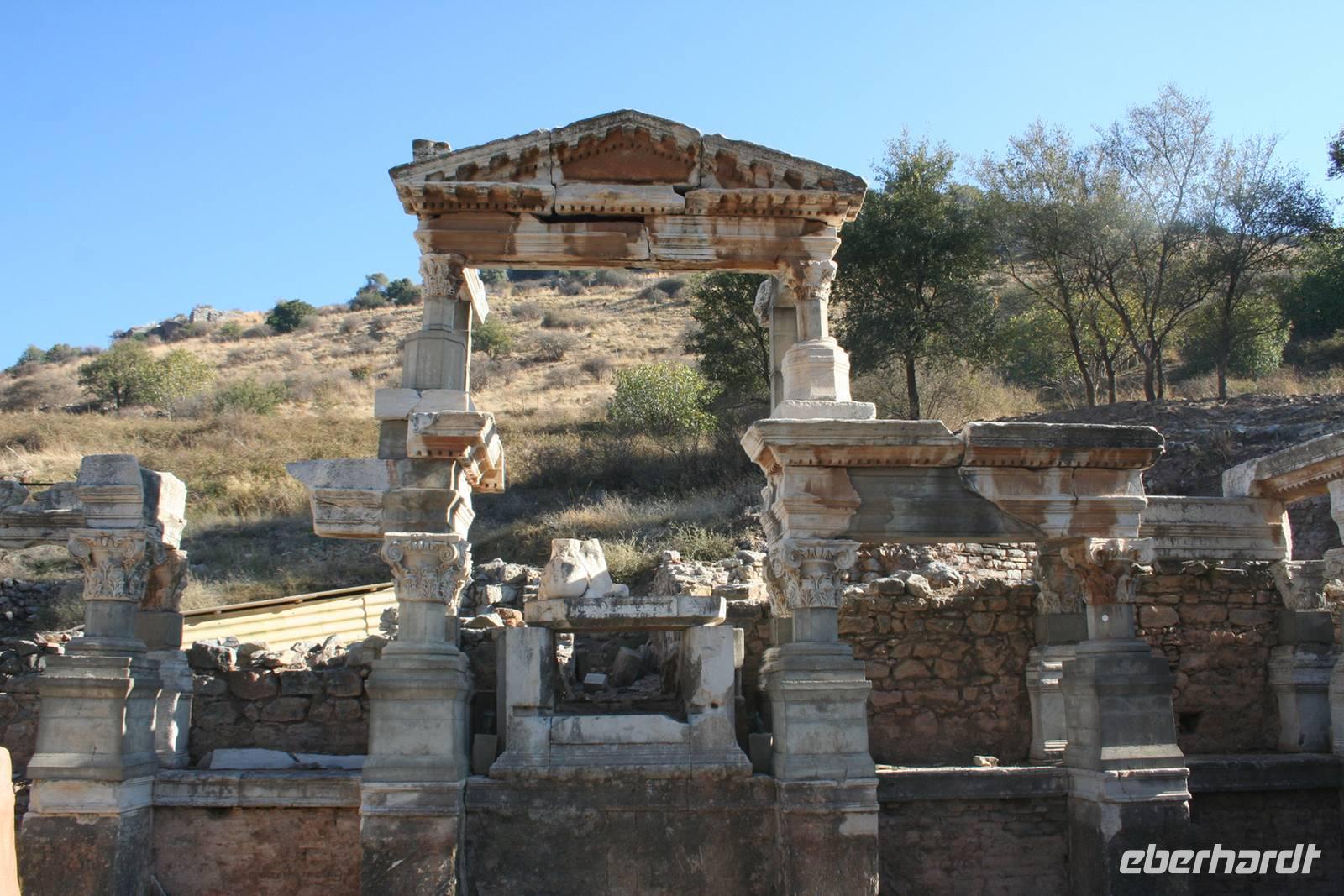 Wo wurde eigentlich das Pergament erfunden? Natürlich in Pergamon! Mit einer hochmodernen Seilbahn erreichten wir die antike Stadt mitten am Berggipfel und bewunderten die Jahrtausende alte Baukunst. Bei wieder einmal grandiosem Weter schauten wir hinab auf die umliegenden Täler und schossen tolle Fotos. Nur beim Anblich des extrem steilen Theaters direkt am Berghang wurde uns ein wenig schwindelig. Auch die Heilstadt Asklepion gleich unterhalb von Pergamon beeindruckte uns mit imposanten Säulen und detailliert behauenen Kapitellen. Wir erfuhren, wie schon in der Antike Kranke durch homöopathisch anmutende Verfahren kuriert wurden und wirksame Medikamente und Heilmethoden hier entwickelt und angewendet wurden. Niemals ist in Asklepion jemand gestorben! (Natürlich sind auch Patienten gestorben, doch wenn dies offensichtlich wurde, dann brachte man sie aus der Stadt, um den Tod nicht einzulassen - eigentlich clever!) Nach einem Tag in solch majestätischem Umfeld erreichten wir am Abend Kusadasi, wo wir eincheckten, um am kommenden Tag gleich wieder unsere Reise fortzusetze.