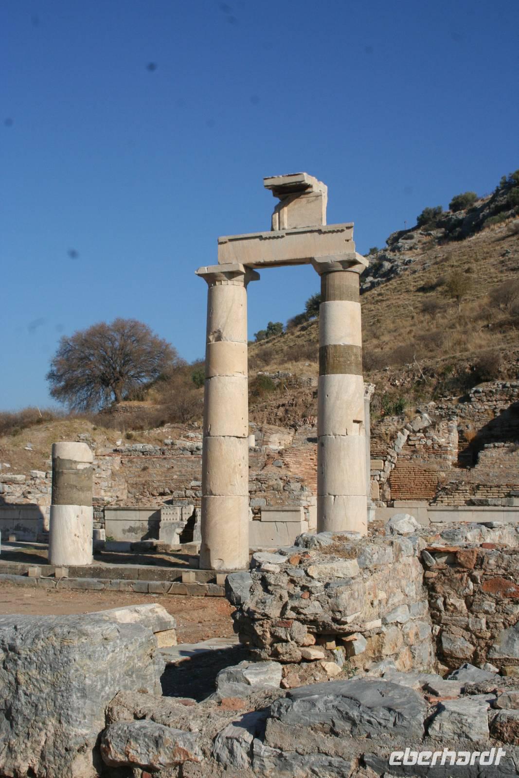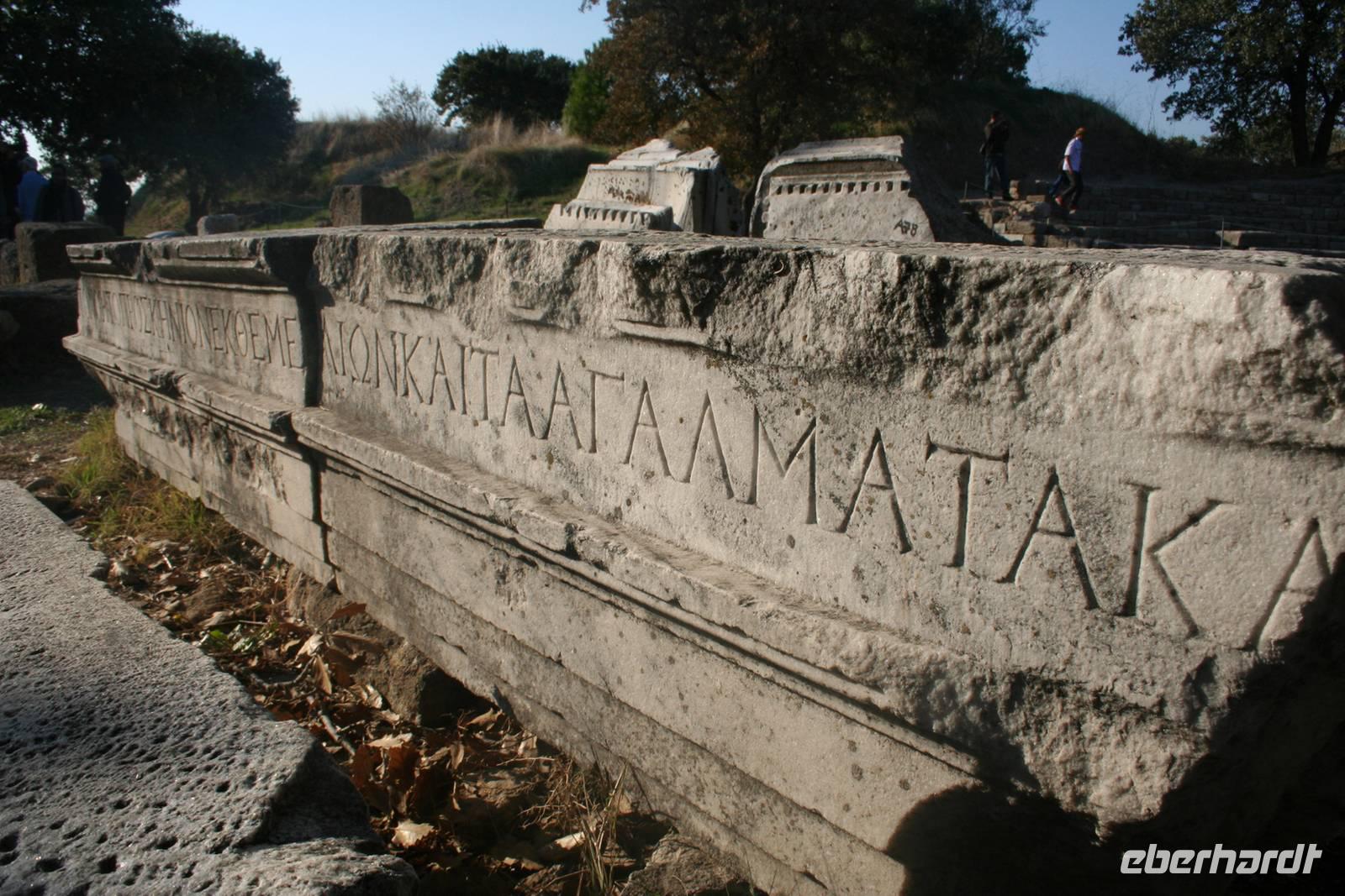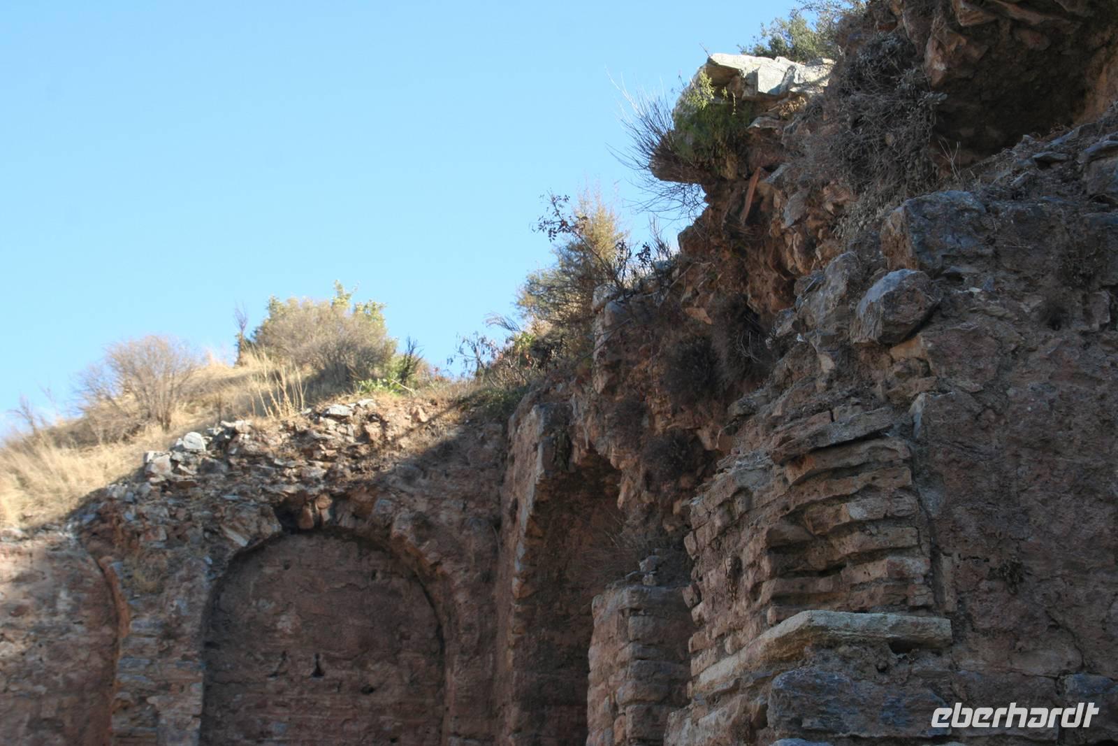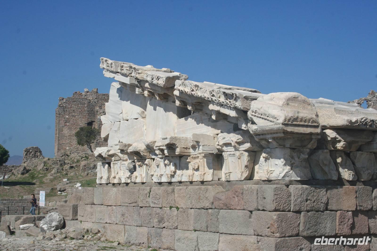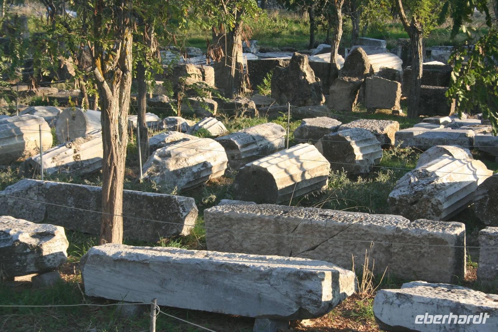 Wo wurde eigentlich das Pergament erfunden? Natürlich in Pergamon! Mit einer hochmodernen Seilbahn erreichten wir die antike Stadt mitten am Berggipfel und bewunderten die Jahrtausende alte Baukunst. Bei wieder einmal grandiosem Weter schauten wir hinab auf die umliegenden Täler und schossen tolle Fotos. Nur beim Anblich des extrem steilen Theaters direkt am Berghang wurde uns ein wenig schwindelig. Auch die Heilstadt Asklepion gleich unterhalb von Pergamon beeindruckte uns mit imposanten Säulen und detailliert behauenen Kapitellen. Wir erfuhren, wie schon in der Antike Kranke durch homöopathisch anmutende Verfahren kuriert wurden und wirksame Medikamente und Heilmethoden hier entwickelt und angewendet wurden. Niemals ist in Asklepion jemand gestorben! (Natürlich sind auch Patienten gestorben, doch wenn dies offensichtlich wurde, dann brachte man sie aus der Stadt, um den Tod nicht einzulassen - eigentlich clever!) Nach einem Tag in solch majestätischem Umfeld erreichten wir am Abend Kusadasi, wo wir eincheckten, um am kommenden Tag gleich wieder unsere Reise fortzusetze.