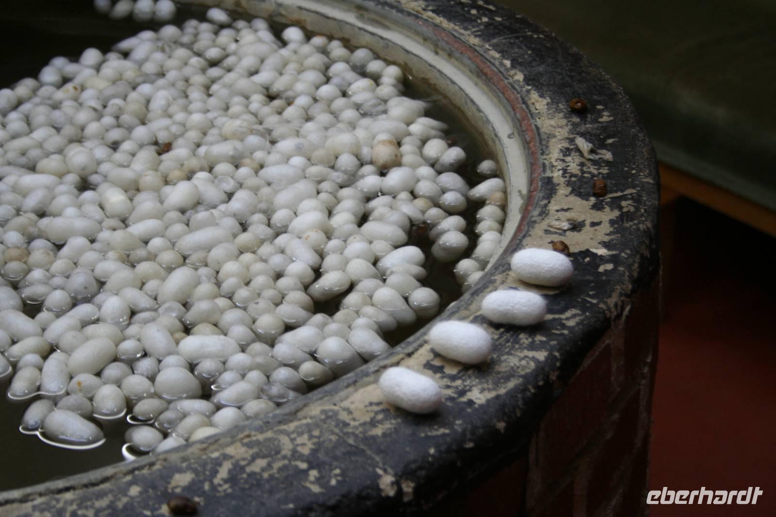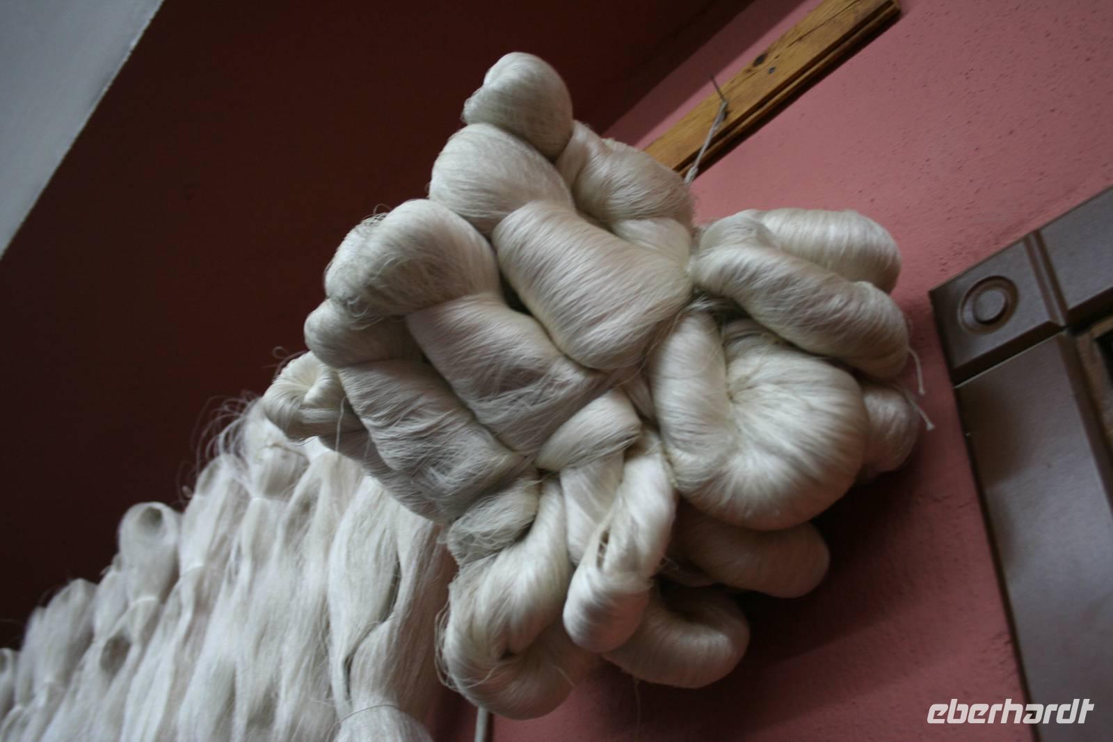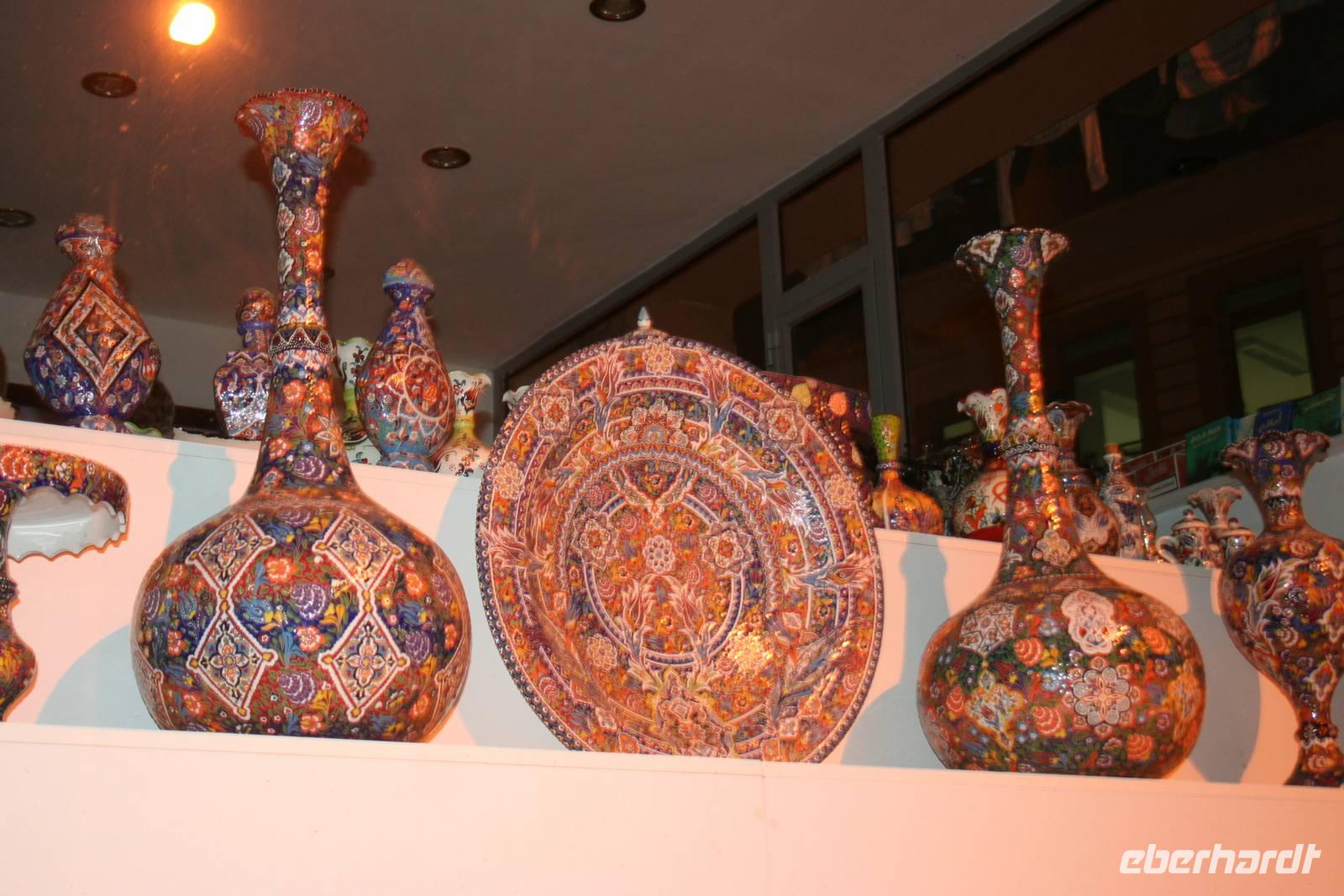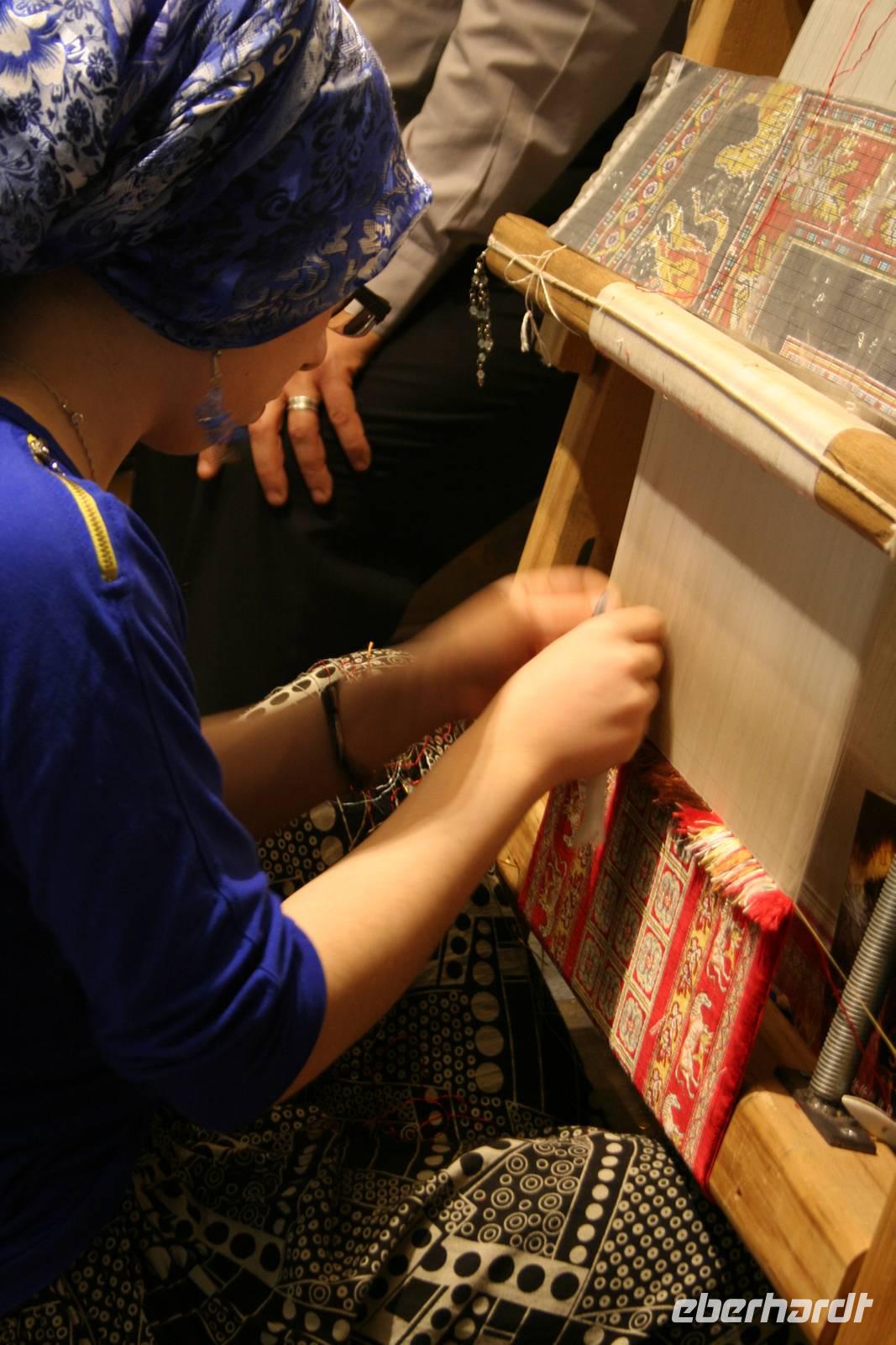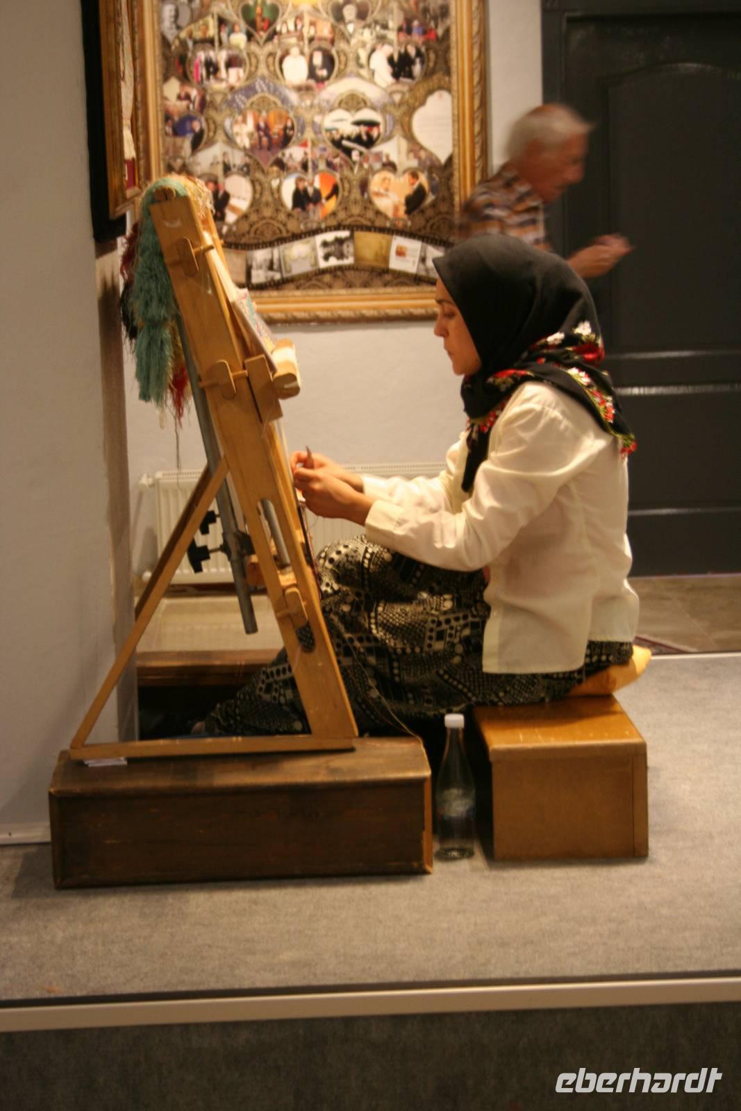 Noch einmal stoppten wir am Fuß der Kalksinterterrassen, um Fotos bei ganz anderem Licht zu schießen und setzten dann unseren Weg nach Antalya fort, von wo wir unsere Reise vor bereits mehr als einer Woche begonnen hatten. Unterwegs hielten wir an einem Baumwollfeld und konnten dieses für die Türkei typische Exportgut aus nächster Nähe betrachten. Auch ein kleines Andenken pflückte sich der ein oder andere, bevor es weiterging nach Antalya. Doch zuvor machten wir Halt bei einer traditionellen Teppichknüpferei, wo wir freundlich begrüßt und durch die „heiligen Hallen" geführt wurden. Zuerst konnten wir zuschauen, wie ein echter türkischer Teppich geknüpft wird und staunten nicht schlecht über die einzigartige Technik, mit der die Seidenfäden von den Raupenkokons gewickelt werden. Bei einer Vorführung bestaunten wir zahlreiche handgeknüpfte Teppiche in unzähligen Variationen und natürlich durfte jeder einmal Probelaufen und -fühlen. In Antalya besuchten wir kurz den kleinen Basar und konnten dort Spezialitäten wie Kaffee, Tee, Gewürze und andere Lebensmittel erstehen. Gegen Abend erreichten wir wieder unser Ausgangshotel in Antalya, in dem wir uns schon bestens auskannten. Wir genossen gemeinsam unser letztes Abendessen und probierten noch einmal von allen landestypischen Köstlichkeiten, die es bei uns nicht zu kaufen gibt, bevor wir schließlich unsere Koffer packten und uns auf die zeitige Abreise am kommenden Tag vorbereiteten. Unsere 3 Ehepaare, die am nächsten Tag weiter zur Badeverlängerung nach Alanya fahren sollten, wurden von allen herzlich verabschiedet.