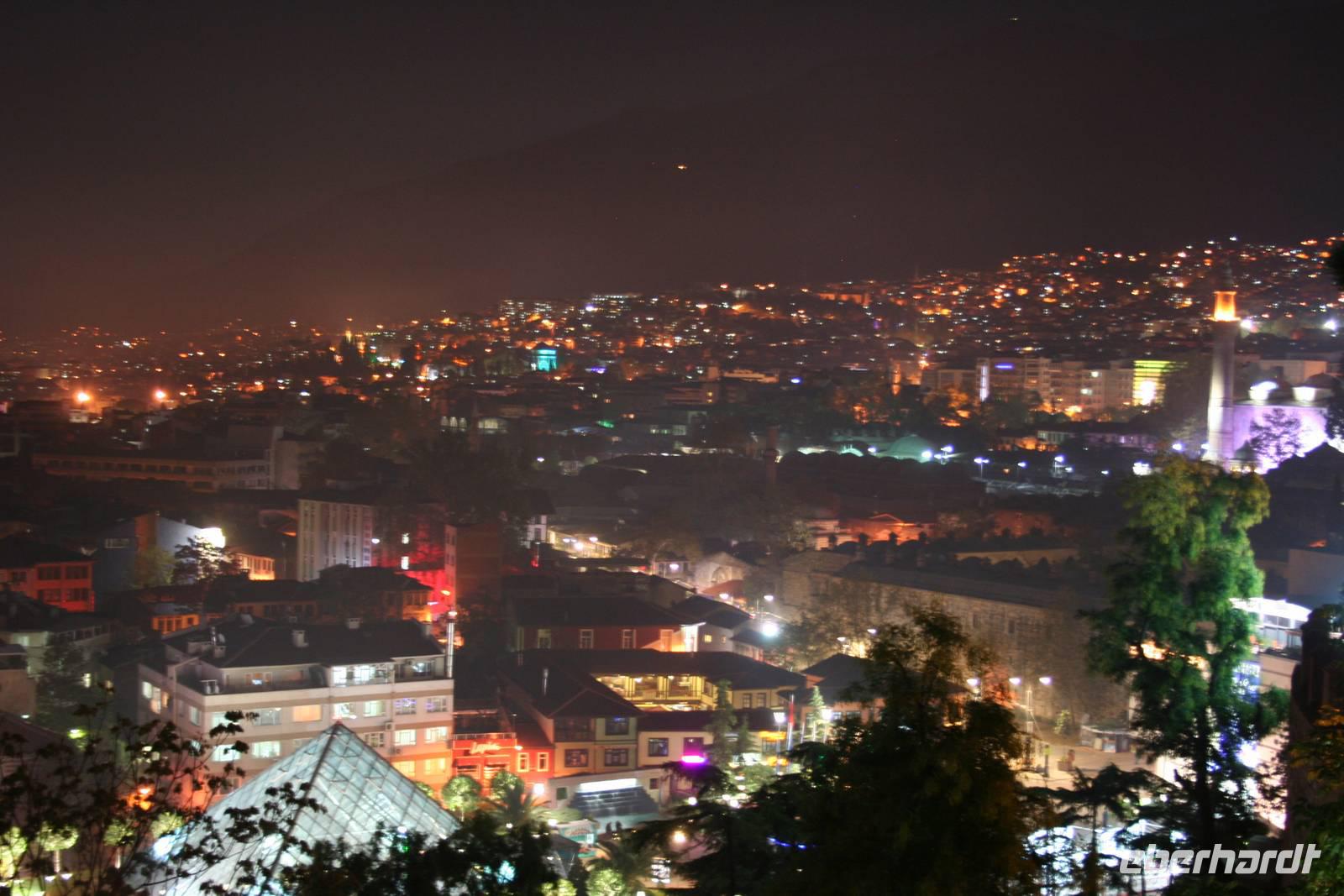 Anschließend erreichten wir gegen Abend unser modernes Hotel in Bursa. Wer wollte, konnte nach dem Abendessen an unserer Lichterfahrt teilnehmen, die uns zur Grünen Moschee, dem Grabmal von Ozman und zur größten Platane des Landes führte, die nur von mindestens 13 Erwachsenen umschlossen werden kann. Wir genossen den Ausblick über die blinkende, leuchtende Stadt und kehrten schließlich zurück ins Hotel.