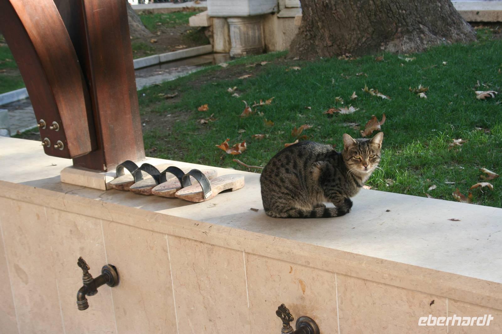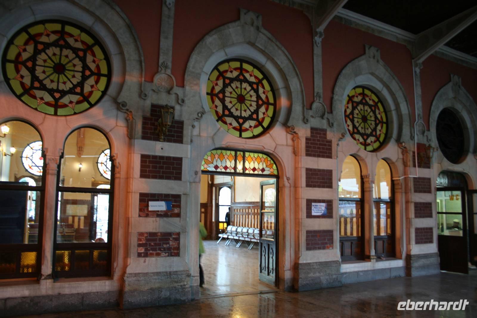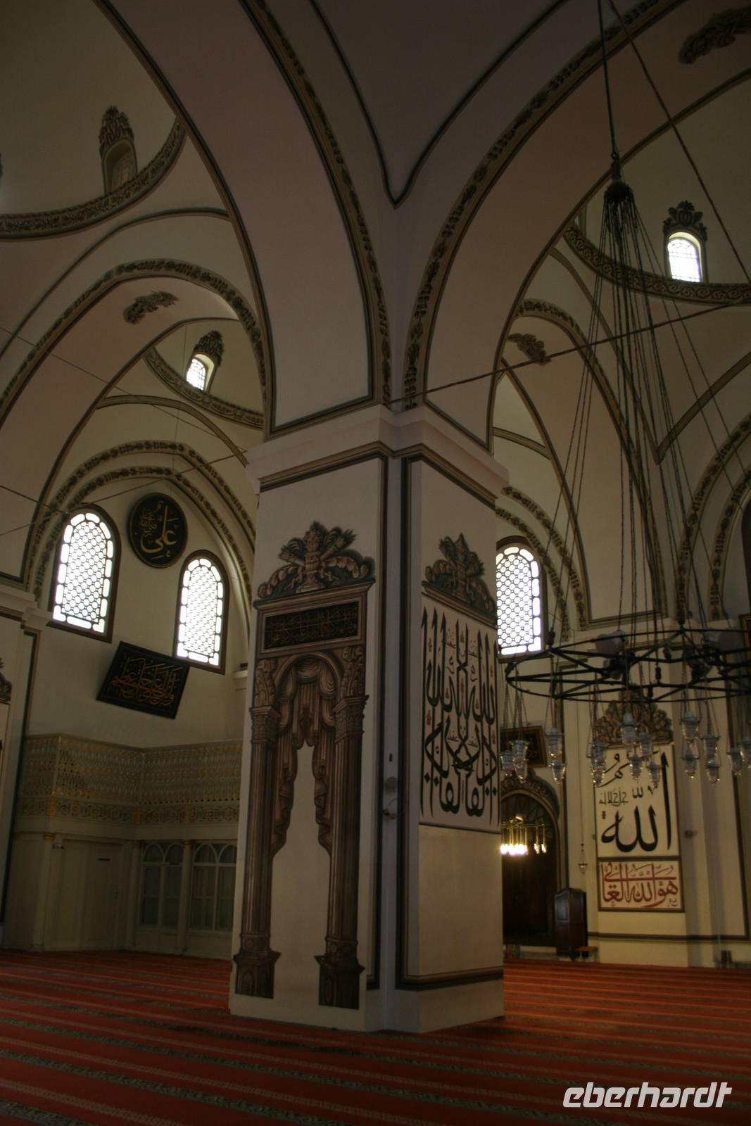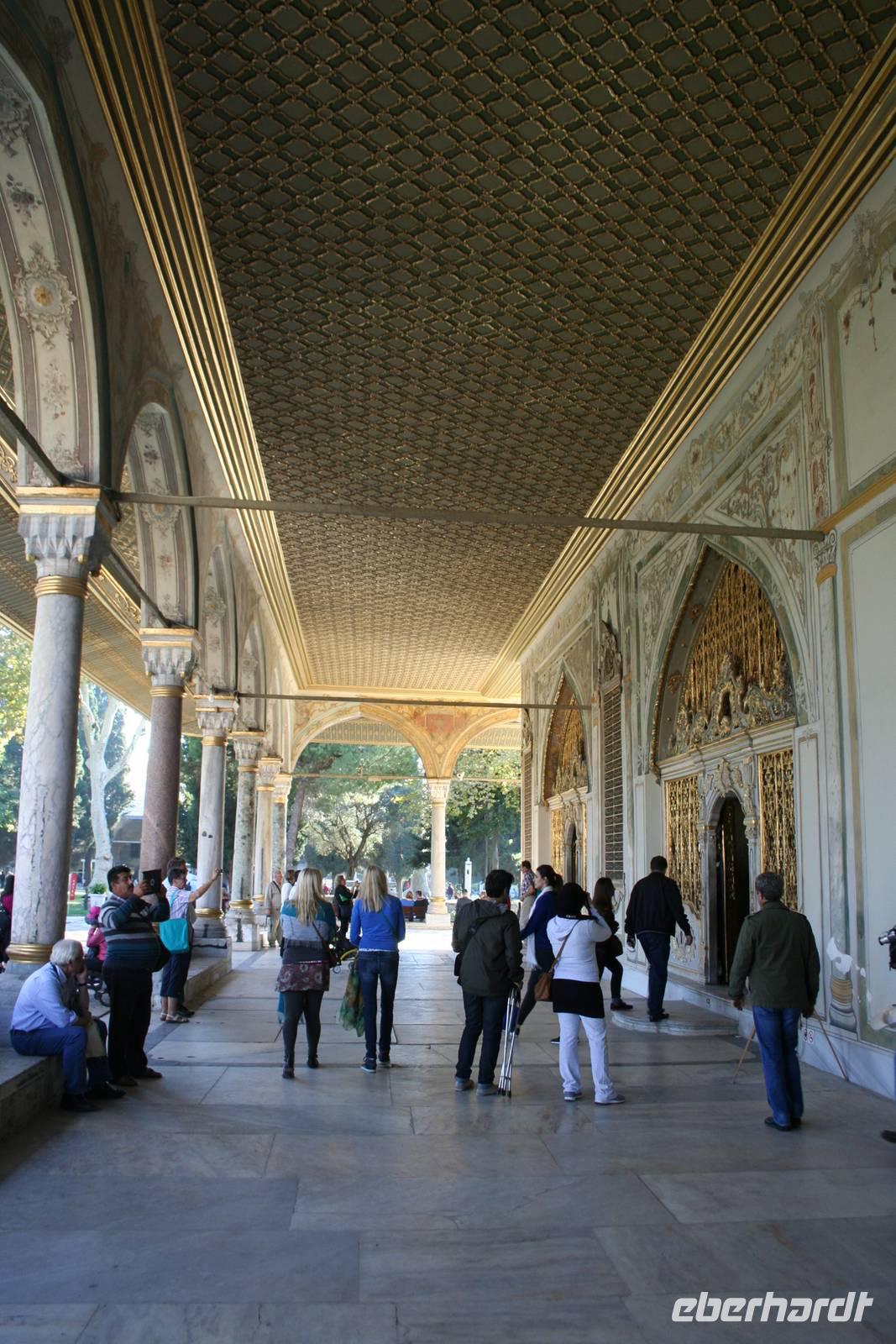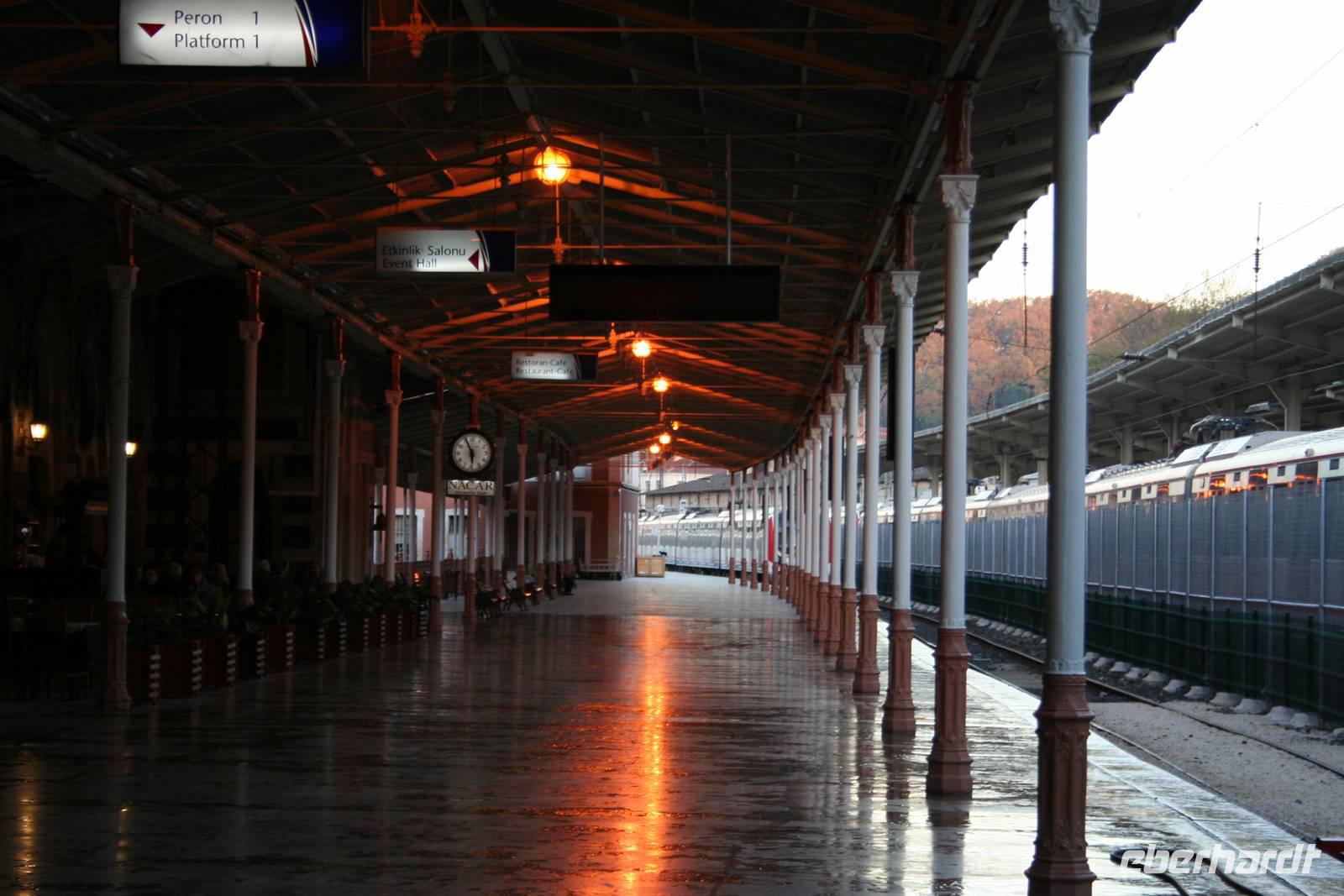 Am Morgen sollte es gleich wieder losgehen zum nächsten ereignisreichen Tag und wir freuten uns auf die Metropole Istanbul. Zuerst statteten wir aber der Großen Moschee in Bursa einen Besuch ab, die Frauen alle stilecht mit Kopftuch. Anschließend besuchten wir den Seidenbasar gleich nebenan, denn in Bursa bekommt man die besten Seidenwaren des Landes. Schließlich brachen wir auf in Richtung Istanbul. Von Yalowa setzten wir mit der Fähre nach Eskihisar über und erreichten schließlich zur Mittagszeit den berühmten Hippodromplatz in Istanbul. Bevor wir unsere große Besichtigung starteten, stärkten wir uns erst einmal mit Köfte, typisch türkischen Frikadellen oder anderen Leckereinen wie kleinen Fleischspießen. Wir begannen unsere Tour am ägyptischen Obelisk und sahen anschließend die Schlangesäule. Dann besuchten wir die imposante und leider sehr volle Blaue Moschee, die ihren Namen von ihrer überwiegend blauen Inneneinrichtung bekam. Im Innenhof sammelten wir uns schließlich wieder und gingen zu Fuß in Richtung Hagia Sophia, deren Besichtigung aber noch einen Tag warten musste, da diese an Montagen stets geschlossen hat. Stattdessen besuchten wir den Topkapi-Palast mit seinen weitläufigen Innenhöfen und genossen die Ruhe in den Palastgärten. Wir sahen uns individuell die verschiedenen ausgestellten Kunstobjekte an und genossen den Blick auf den Bosporus. Schließlich trafen wir uns wieder vor dem großem Eingangstor des Palastes, wo Ahmed uns schon erwartete und uns zu unserem zentral gelegenen Hotel fuhr. Vorher machten wir noch einen kleinen Tankstopp direkt neben dem liebevoll gestaltetem Bahnhofsgebäude, das als Endstation für den weltberühmten Orientexpress dient und konnten einige Fotos schießen. Wir machten uns in unseren Hotelzimmern frisch und fuhren gleich danach in ein stilvolles Restaurant, wo wir ein 3-Gänge-Menü mit nationalen Gerichten serviert bekamen. Anschließend fielen wir müde und voller Eindrücke in unsere Betten und freuten uns auf noch mehr Istanbul am kommenden Tag.