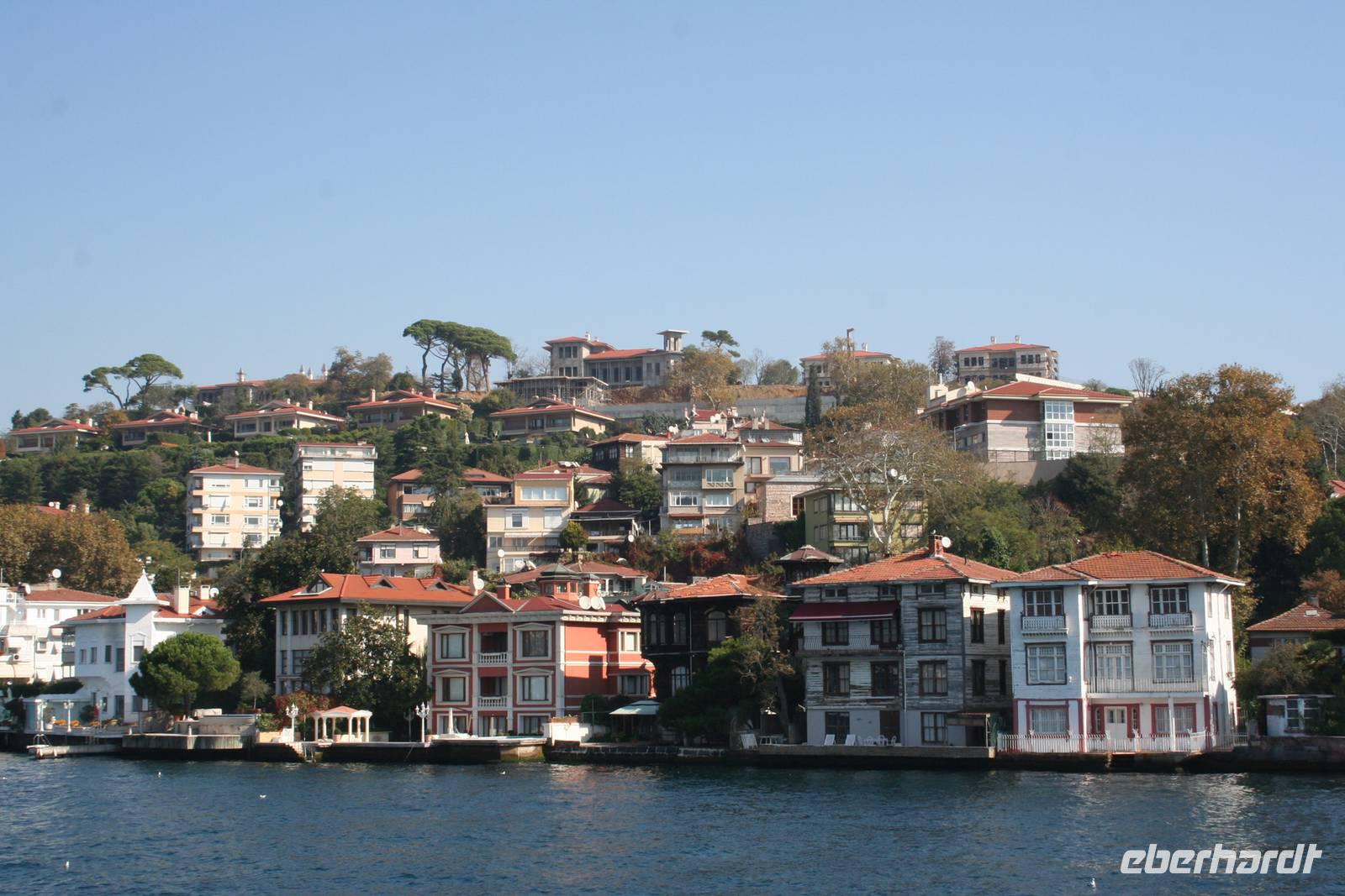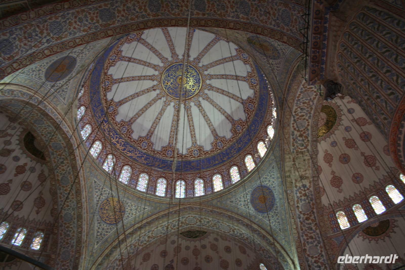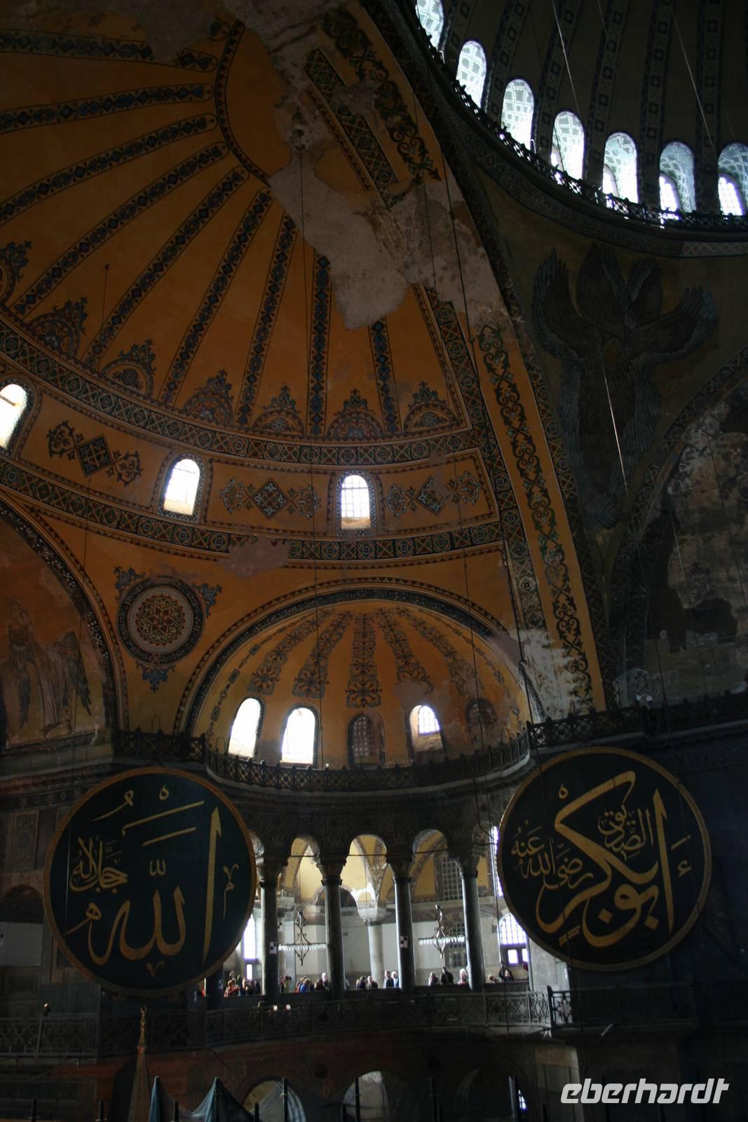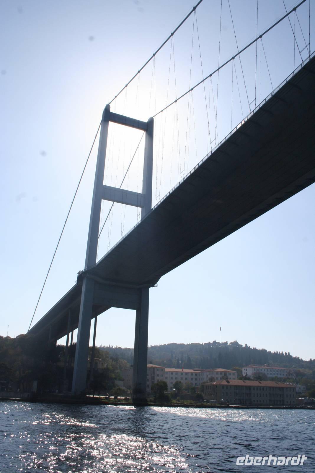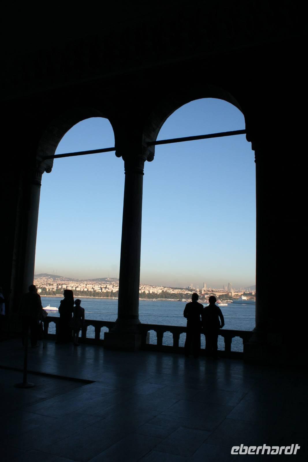 Istabul, die Zweite! Gleich nach dem Frühstück brachen wir auf, um die ersten bei der Hagia Sophia zu sein. Gebannt betrachteten wir die gigantische Kuppel und die zahlreichen massiven Leuchter, die überall von den Decken hingen. Für eindrucksvolle Fotos ein dankbares Objekt! Serdar führte uns durch die Haupthalle und viele Seitenflure und erzählte Wissenswertes zur bewegten Geschichte der Moschee, beziehungsweise Kirche Hagia Sophia. Anschließend gingen wir nur wenige Meter weiter und erreichten die fast schon versteckte unterirdische Zisterne der Stadt, die früher als gewaltiger Trinkwasserspeicher genutzt wurde. Zurück im stahlenden Tageslicht stiegen wir wieder in unseren Bus und fuhren zu Hafen, denn wir wollten die riesige Stadt gern einmal vom Wasser aus erleben. Auf einer Schifffahrt auf dem Bosporus ließen wir die Seele baumeln und bestaunten die modernen Brücken über uns und die zahlreichen historischen Gebäude um uns herum. Zum Mittagessen kehrten wir in ein feines Fischrestaurant direkt an der Promenade ein und konnten beim reichhaltigen Menü den Blick über das Wasser schweifen lassen. Anschließend wurden wir von Ahmed wieder aufgelesen und fuhren zurück in die Innenstadt zum ägyptischen Basar. Natürlich wird hier schon lange nicht mehr so gefeilscht und gehandelt, wie es immernoch bei uns vermutet wird, aber die vielen kleinen Läden und Stände inmitten der engen Gassen versprühen trotzdem ihr orientalisches Flair. Durch den chaotischen Verkehr schlängelten wir uns wieder zurück zu unserem Hotel und spazierten von dort direkt zum Galata-Turm, der sich gleich in nächster Nähe befand. Wir fuhren bis hinauf zur Spitze und betrachteten den wundervollen Sonnenuntergang über den tausenden Dächern der Stadt. Danach konnte jeder nach Lust und Laune allein ins Hotel zurückfinden oder sich in den umliegenden Straßen ein wenig umschauen. Zum Abendessen fuhren wir in das exklusive Restaurant „Keravanserey" und wurden verwöhnt mit köstlichem Essen und der unterhaltsamen „Istabul bei Nacht"-Show, die uns zahlreiche Tanz- und Akrobatikeinlagen bot, nicht zu vergessen einem talentierten mehrsprachigen Sänger und der besten Bauchtänzerin Istanbuls. Müde, aber satt und glücklich sagten wir der Stadt auf Wiedersehen und kehrten zu letzten Übernachtung in der Metropole Istanbul zurück ins Hotel.
