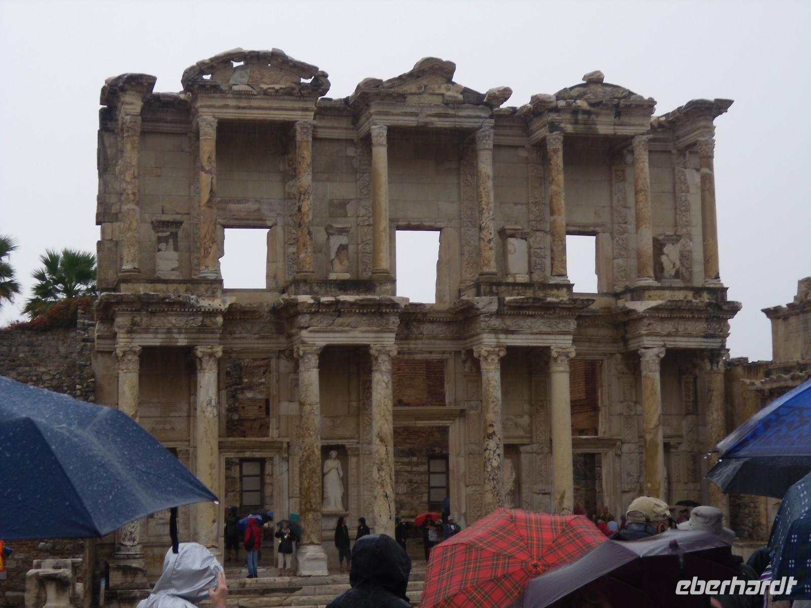 Der Blick zum Himmel versprach uns heute nichts Gutes. In Ephesus angekommen regnete es
