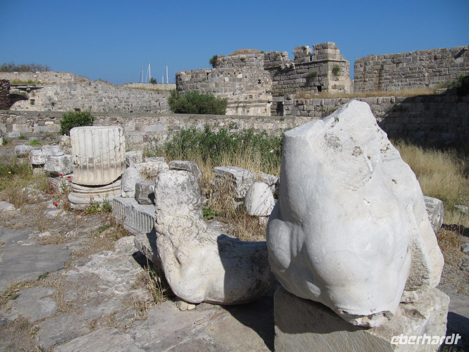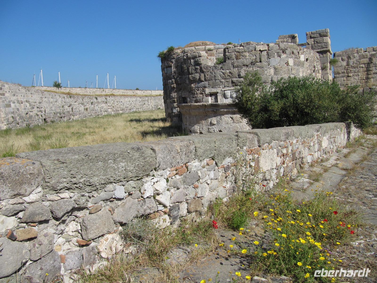 Heute setzen wir unsere Reise fort nah Patmos. Doch bevor wir Kos verlassen, besuchen wir das Kastell von Kos-Stadt. In einem Rundgang berichtet uns Simeon die Geschichte der Festung. Hier fanden einst die Bewohner der Inselhauptstadt Zuflucht vor den häufigen Piratenangriffen. Wir sind uns einig, dass die Aussicht von der Festungsmauer umwerfend