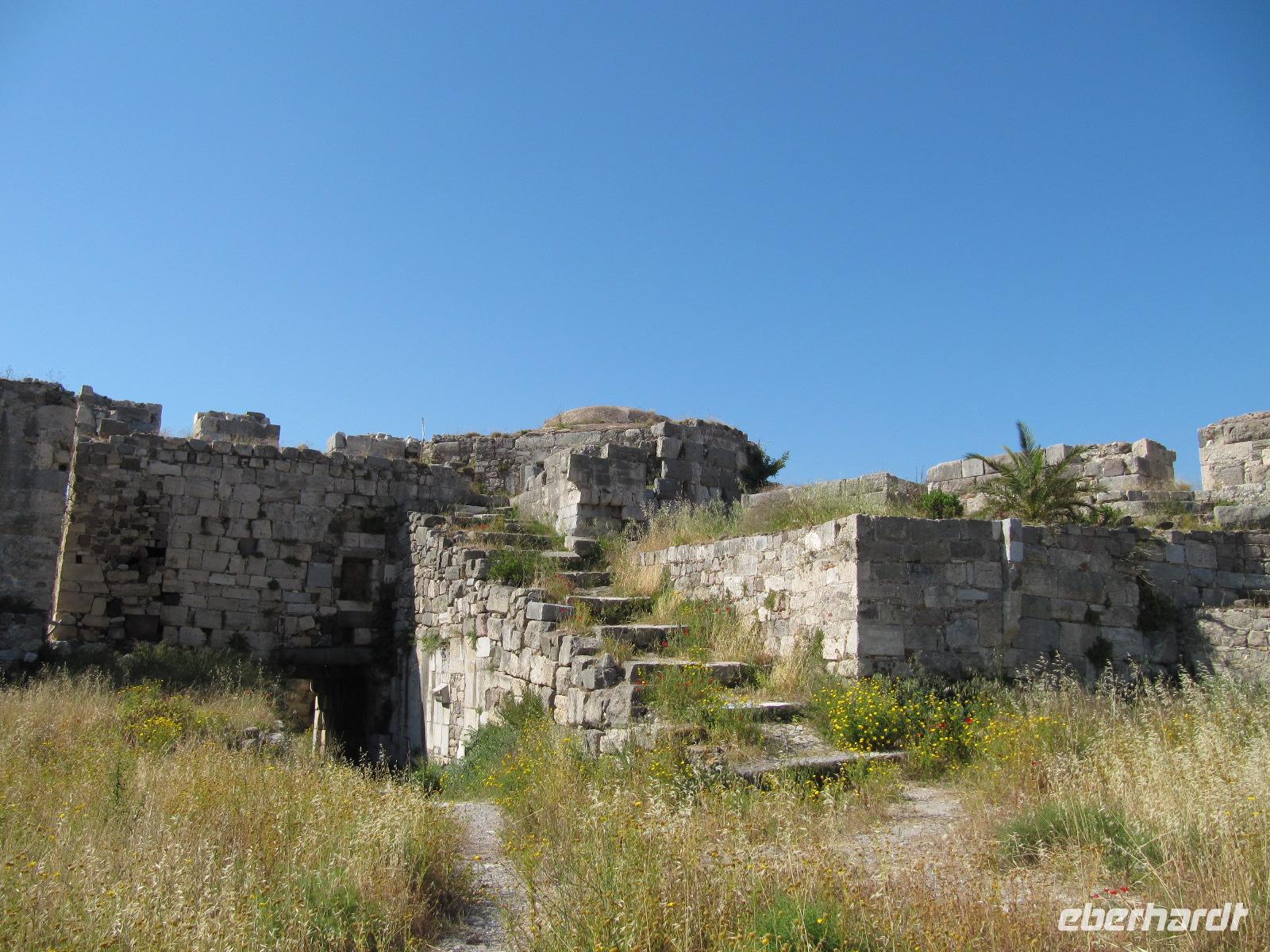 Kreuzritterzeit, aus dem 14./15. Jh. Die faszinierende Wallanlage thront auf dem höchsten Berg von Kos und daher haben wir eine pittoreske Sicht auf die Küste. Heute essen wir wieder gemeinsam zu Mittag in einer typisch