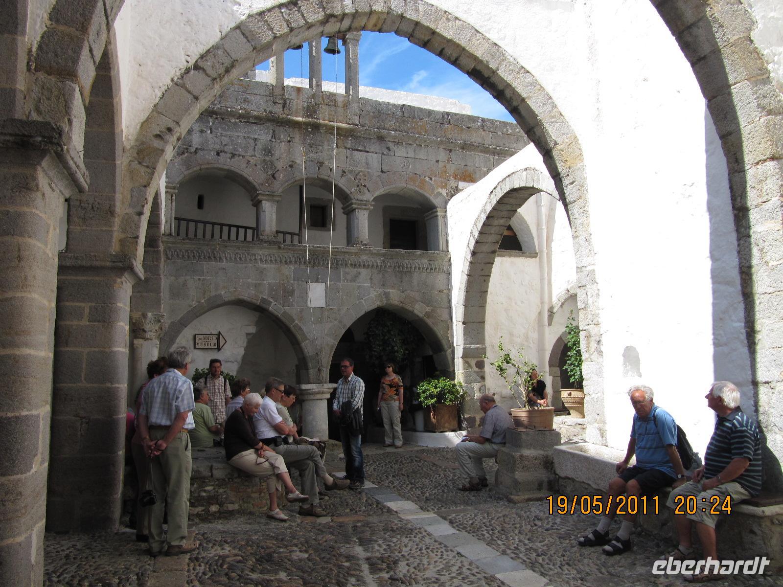 Die Insel Patmos und die darum liegenden Archipele stehen im Besitz des Klosters. Patmos ist ein Wallfahrtsort und bedeutende Stätte des gesamten Christentums. Wir erkunden heute die am höchsten Punkt der Insel gelegene Chóra, in der jahrhundertealte weiß getünchte Häuser thronen. Simeon erzählt uns, dass diese Tradition, Häuser weiß zu tünchen, jüngeren Ursprungs ist. Erst seit der Mitte des letzten Jahrhunderts sind die