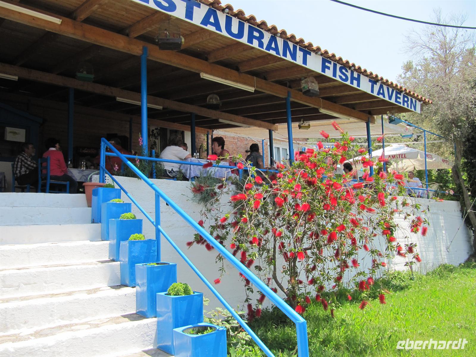 Heute steht uns der Tag zur freien Verfügung. Ausgeschlafen treffen wir uns zu einem gemeinsamen Frühstück. Ein letztes Mal schlemmen wir gemeinsam im Restaurant. Der Tag beginnt diesig, ein kurzer Regenschauer geht nieder, doch anschließend zeigt sich die griechische Sonne wieder am Himmel. An der Strandpromenade gibt es einiges zu entdecken. Viele Cafés und Gaststätten locken und auch der schwarze Strand und das unendliche Meer laden zu einem abschließenden Sprung ins ägäische Meer ein. Heute haben Simeon und ich etwas ganz Besonderes für Sie geplant. Zum Mittag treffen wir uns am Hotel und gehen gemeinsam zur Taverna Andreas, denn heute laden wir Sie ein. Mit diesem Essen bedanken wir von Eberhardt TRAVEL uns noch einmal vielmals für die nette Gesellschaft und dass Sie mit uns die Inselwelt Griechenlands bereist haben. Bei einem Glas griechischem Wein stoßen wir an. Als Vorspeise werden uns Salat, Tzatziki und Weißbrot gereicht. Anschließend kosten wir panierte Zucchini und Auberginen. Darauf essen wir Tomatenfrikadellen. Als Hauptgang haben wir etwas besonders Feines für Sie ausgewählt. Es gibt ein Räubermahl, das sind in Pergamentpapier und Alufolie gewickelte, im Ofen gegarte Taschen aus Schweinefleisch, Kartoffeln und Paprika, verfeinert und abgeschmeckt mit Zwiebeln, Knoblauch und frischen Kräutern. Als Dessert gibt es griechische Quarktorte mit Kokosfäden. Es war köstlich. Bis zu unserem Abflug haben wir noch etwas Zeit einen letzten griechischen Kaffee trinken zu gehen. Der Nachmittag ist wunderschön. Unser Transfer erwartet uns am späten Nachmittag. Die Reise war sehr schön, darüber sind wir uns alle einig. Unser Reiseleiter Simeon hat uns mit Herz und Verstand sein Land nahe gebracht. In einer kleinen Reisegruppe hatten wir die Möglichkeit uns auf dieser fantastischen Reise gut kennenzulernen. Ich wünsche Ihnen für die Zukunft nur das Beste und hoffe, dass wir uns wiedersehen, zuhause oder vielleicht auf einer Ihrer zukünftigen Reisen!