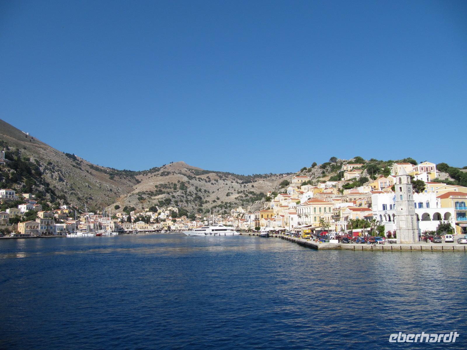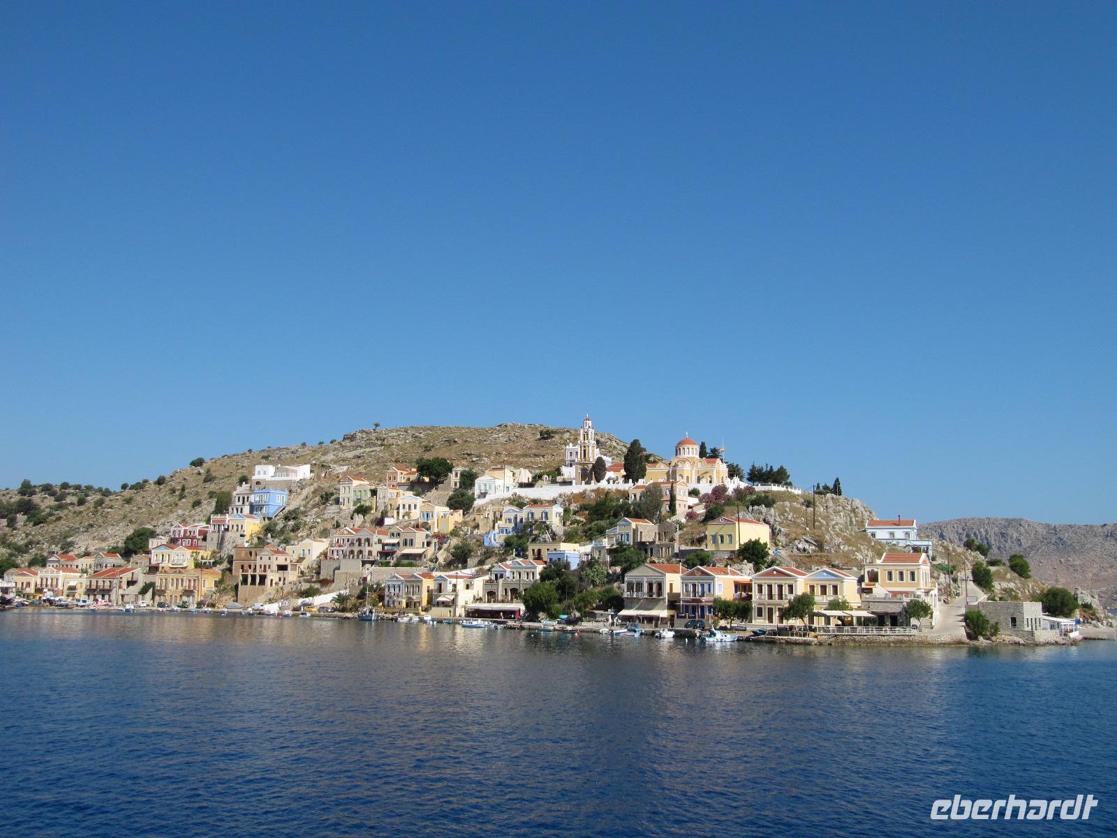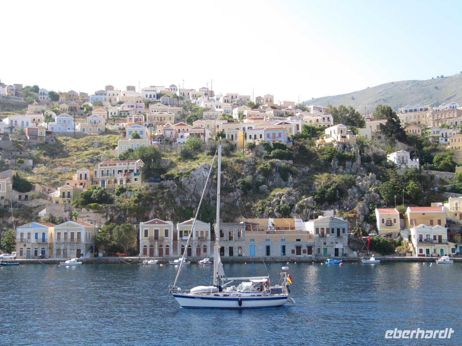 Im aller Ruhe genießen wir das Frühstück im Hotel. Nachdem unsere Koffer abgeholt wurden, gehen wir gemeinsam am Hafen entlang zum Fähranleger. Wir warten auf unser Schiff, die Nissos Kalymnos und genießen noch einmal die Aussicht auf das azurblaue Meer und das am Berg aufragende Kloster. Auch heute ist wieder herrliches Wetter und so können wir uns während der Überfahrt an Deck sonnen oder in der Cafeteria des Bootes