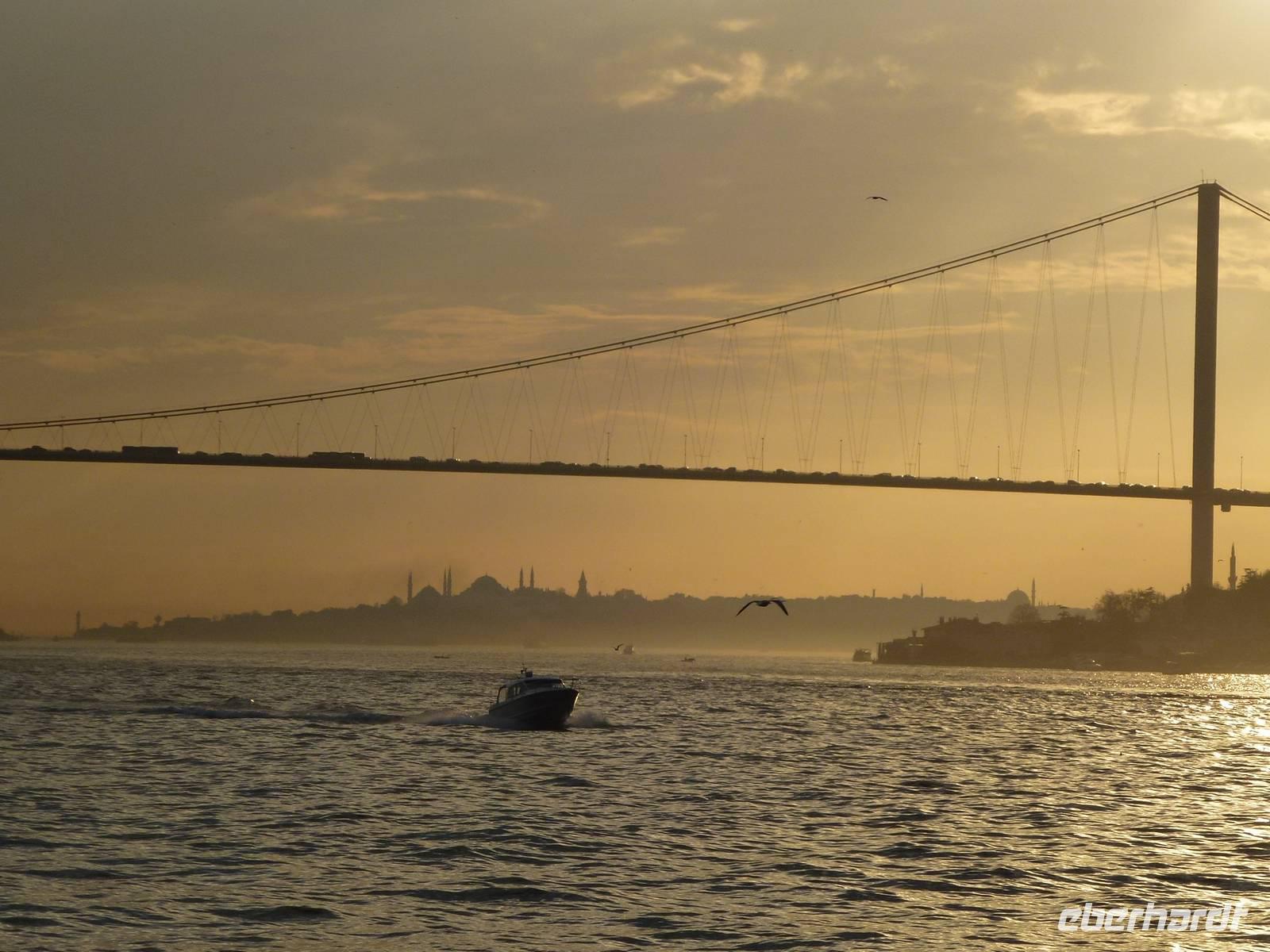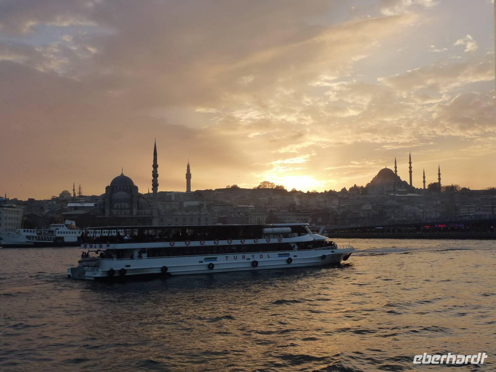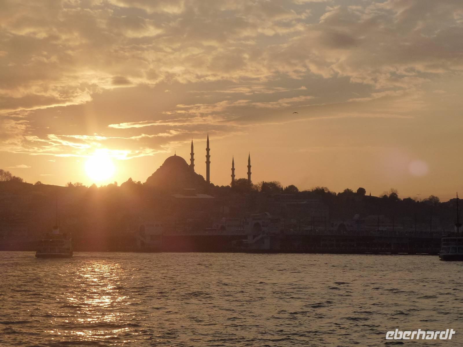Istanbul ist nicht zum Schlafen da, Istanbul will erobert werden! Wir trafen uns alle im Restaurant des „MIM" Hotels, wo wir gemeinsam ein leckeres Frühstück einnahmen. Halb neun begrüßte uns der Hoteldirektor und zeigte uns sein Haus. Wir sahen die verschiedenen Zimmertypen, die Konferenzräume sowie die Terrasse. Danach starteten wir pünktlich um 09:00 Uhr mit unserem Bus zur Stadtrundfahrt, über die Barabarossastraße, am Bosphorus entlang Richtung Hippodrom. Am deutschen Brunnen stiegen wir aus und begannen unseren Stadtrundgang zu Fuß. Mit sehr vielen Fakten, Zahlen, Wissenswerten und auch Anekdoten brachte unsere Reiseleiter Serdar uns sein Istanbul nahe. Wissbegierig lauschten wir seinen wirklich sehr ausführlichen und lehrreichen Erklärungen und tauchten so hautnah in die spannende Geschichte dieser Weltmetropole ein. Über den Hippodrom liefen wir weiter, vor uns zeigte sich die Blaue Moschee - ein Meisterwerk seiner Epoche. Beeindruckt gingen wir in den Innenhof dieses Bauwerkes, wir Frauen legten unsere Tücher über unsere Köpfe und alle zogen sich die Schuhe aus. Überwältigt von der Größe uns Schönheit dieser Moschee ließen wir zu den Erklärungen Serdar´s dieses Bauwerk auf uns wirken. Die Blaue Moschee wurde fast noch von der gegenüberliegenden Hagia Sophia übertroffen. Hier mussten wir erst durch eine Sicherheitsschleuse, bevor wir eintreten konnten. Auch hier herrschte ehrfürchtiges Schweigen und wir ließen diesen gewaltigen Bau auf uns wirken, welcher wieder ganz anders war, als die Blaue Moschee. Die beiden berühmtesten Sehenswürdigkeiten Istanbuls haben uns sehr beeindruckt! Anschließend stiegen wir in die Unterwelt Istanbuls ab und besuchten die unterirdische Zisterne. Hier herrschte eine mystische Stimmung. Gemeinsam gingen wir bis an das Ende der Zisterne, wo zwei Säulen durch den Kopf der Medusa getragen werden. Danach ging es quer durch Istanbul bis zum Anfang des Schwarzen Meeres. Direkt am Meer nahmen wir in einem Fischrestaurant unser Mittagessen ein, es gab lecker Meze, frisch gefangenen und gegrillten Fisch und eine leckere Nachspeise. Alle genossen den Blick auf das Meer bei Sonnenschein! Im Anschluss daran stachen wir mit einem großen Ausflugsboot nur für uns und eine andere Gruppe in See. Eine Bosporusrundfahrt gehört einfach zu den Highlights bei einem Besuch in Istanbul! Vorbei an vielen Containerschiffen, Fähren und jeder Menge schöner Häuser, kleiner Paläste, einer Burg, der Universität sowie einiger nobler Hotels schipperten wir direkt zurück in das Zentrum von Istanbul. Über uns spannten sich die Brücken, welchen den europäischen mit dem asiatischen Teil Istanbuls verbinden und wir fuhren direkt dem Sonnenuntergang entgegen. Vor uns tauchten im Nebel die Silhouette von den berühmtesten Sehenswürdigkeiten Istanbuls auf, der Blauen Moschee, der Hagia Sophia und des Topkapi Palastes. Wir genossen einfach nur diese traumhaften Ausblicke, die wohl keiner von uns sobald vergessen wird!