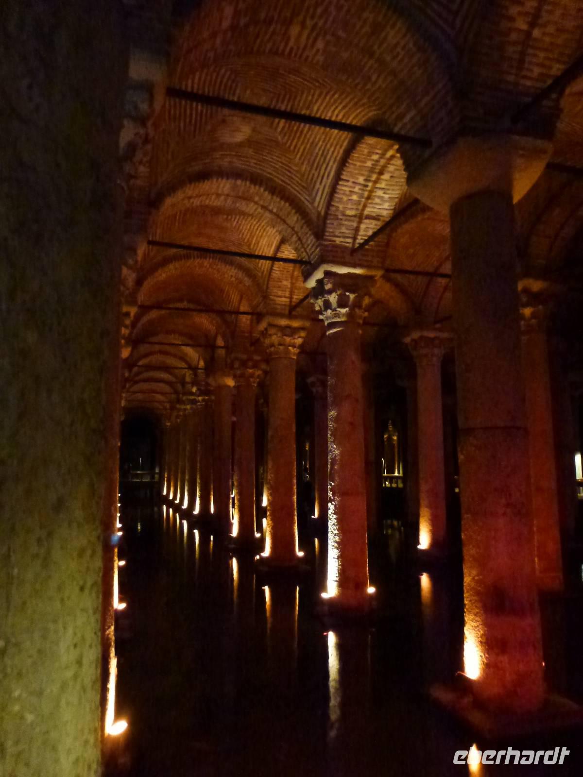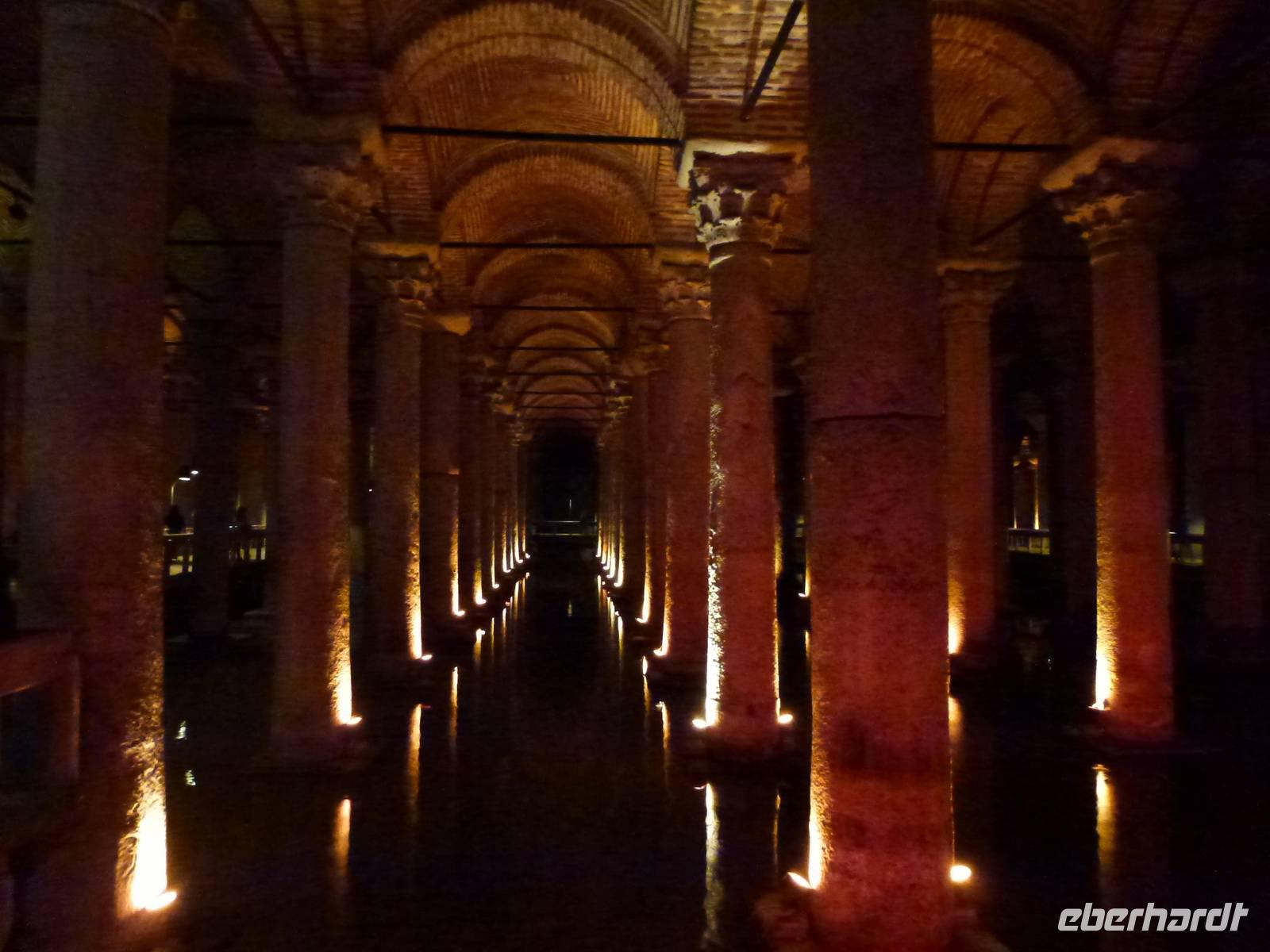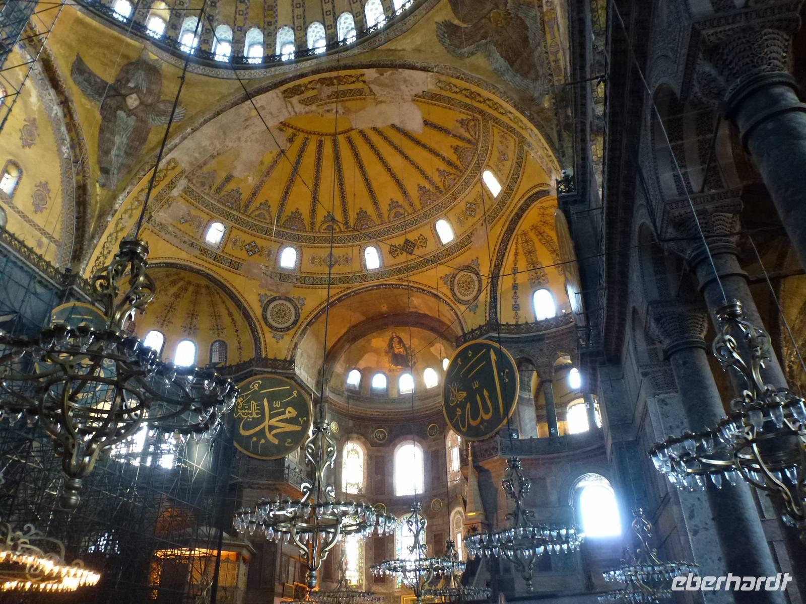 Istanbul ist nicht zum Schlafen da, Istanbul will erobert werden! Wir trafen uns alle im Restaurant des „MIM" Hotels, wo wir gemeinsam ein leckeres Frühstück einnahmen. Halb neun begrüßte uns der Hoteldirektor und zeigte uns sein Haus. Wir sahen die verschiedenen Zimmertypen, die Konferenzräume sowie die Terrasse. Danach starteten wir pünktlich um 09:00 Uhr mit unserem Bus zur Stadtrundfahrt, über die Barabarossastraße, am Bosphorus entlang Richtung Hippodrom. Am deutschen Brunnen stiegen wir aus und begannen unseren Stadtrundgang zu Fuß. Mit sehr vielen Fakten, Zahlen, Wissenswerten und auch Anekdoten brachte unsere Reiseleiter Serdar uns sein Istanbul nahe. Wissbegierig lauschten wir seinen wirklich sehr ausführlichen und lehrreichen Erklärungen und tauchten so hautnah in die spannende Geschichte dieser Weltmetropole ein. Über den Hippodrom liefen wir weiter, vor uns zeigte sich die Blaue Moschee - ein Meisterwerk seiner Epoche. Beeindruckt gingen wir in den Innenhof dieses Bauwerkes, wir Frauen legten unsere Tücher über unsere Köpfe und alle zogen sich die Schuhe aus. Überwältigt von der Größe uns Schönheit dieser Moschee ließen wir zu den Erklärungen Serdar´s dieses Bauwerk auf uns wirken. Die Blaue Moschee wurde fast noch von der gegenüberliegenden Hagia Sophia übertroffen. Hier mussten wir erst durch eine Sicherheitsschleuse, bevor wir eintreten konnten. Auch hier herrschte ehrfürchtiges Schweigen und wir ließen diesen gewaltigen Bau auf uns wirken, welcher wieder ganz anders war, als die Blaue Moschee. Die beiden berühmtesten Sehenswürdigkeiten Istanbuls haben uns sehr beeindruckt! Anschließend stiegen wir in die Unterwelt Istanbuls ab und besuchten die unterirdische Zisterne. Hier herrschte eine mystische Stimmung. Gemeinsam gingen wir bis an das Ende der Zisterne, wo zwei Säulen durch den Kopf der Medusa getragen werden. Danach ging es quer durch Istanbul bis zum Anfang des Schwarzen Meeres. Direkt am Meer nahmen wir in einem Fischrestaurant unser Mittagessen ein, es gab lecker Meze, frisch gefangenen und gegrillten Fisch und eine leckere Nachspeise. Alle genossen den Blick auf das Meer bei Sonnenschein! Im Anschluss daran stachen wir mit einem großen Ausflugsboot nur für uns und eine andere Gruppe in See. Eine Bosporusrundfahrt gehört einfach zu den Highlights bei einem Besuch in Istanbul! Vorbei an vielen Containerschiffen, Fähren und jeder Menge schöner Häuser, kleiner Paläste, einer Burg, der Universität sowie einiger nobler Hotels schipperten wir direkt zurück in das Zentrum von Istanbul. Über uns spannten sich die Brücken, welchen den europäischen mit dem asiatischen Teil Istanbuls verbinden und wir fuhren direkt dem Sonnenuntergang entgegen. Vor uns tauchten im Nebel die Silhouette von den berühmtesten Sehenswürdigkeiten Istanbuls auf, der Blauen Moschee, der Hagia Sophia und des Topkapi Palastes. Wir genossen einfach nur diese traumhaften Ausblicke, die wohl keiner von uns sobald vergessen wird!