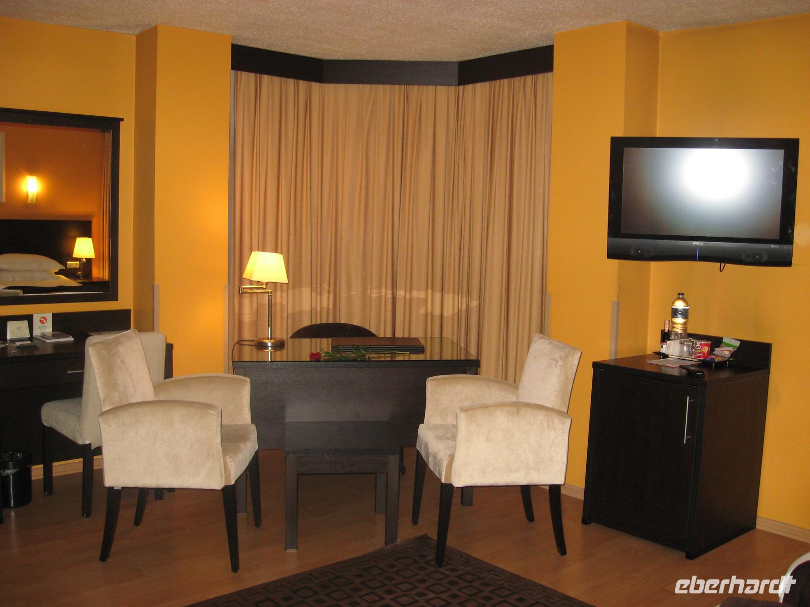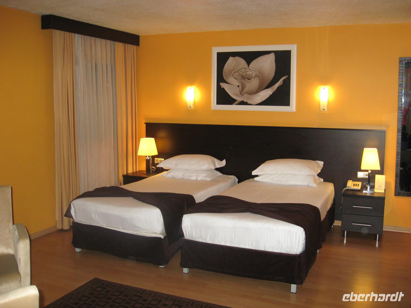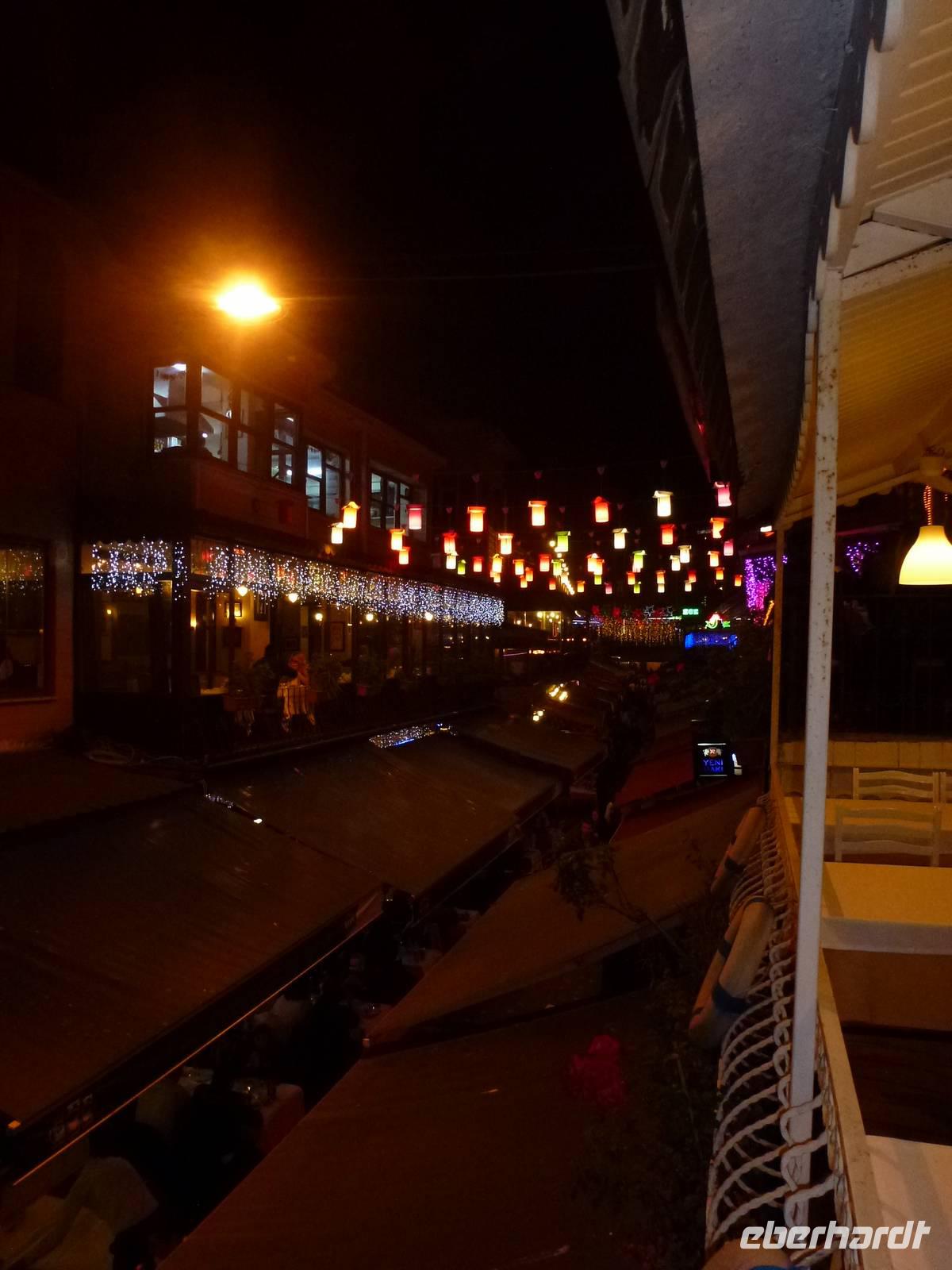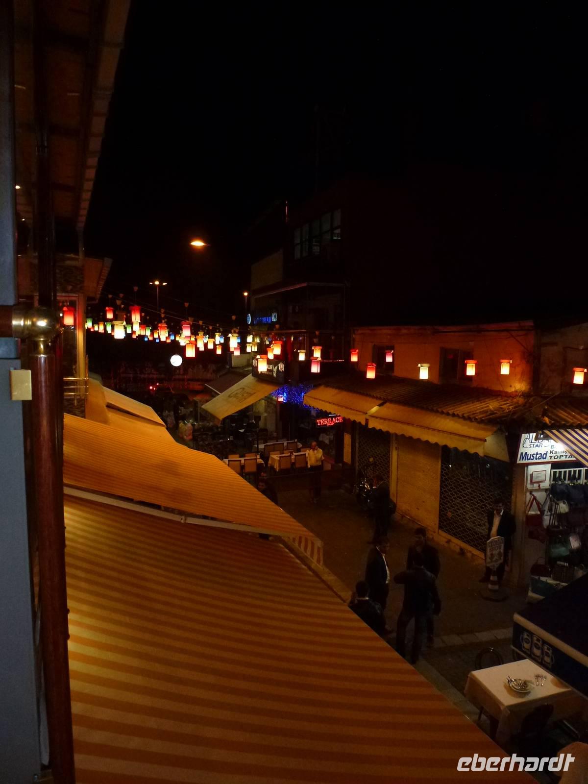 Nach einer kurzen Transferfahrt erreichten wir ein typisch türkisches Kebabhaus, wo wir unser Abendessen einnahmen. Ganz traditionell gab es Fladenbrot, Joghurtsuppe, Grillspieß und Tomatensalat. Das schöne war, dass wir abseits aller Touristen in einem wirklichen Traditionslokal speisten. Für uns mitteleuropäische Frauen war es besonders interessant, da wir in den oberen Stock geführt wurden, da das Erdgeschoss nur den Männern vorbehalten war. Nach dem Essen fuhren wir zu unserem 4-Sterne-"MIM Hotel". Das Haus ist sehr modern eingerichtet, nicht zu groß und sehr sauber. Die Zimmer sind sehr geräumig und sehr gut ausgestattet, auch ein großer Schrank und viel Ablagefläche waren vorhanden. So ging ein sehr aufregender erster Tag in Istanbul zu Ende. Was wir auch gleich gelernt haben: Istanbul schläft nie, in der Stadt herrscht immer ein reges Leben und Treiben.