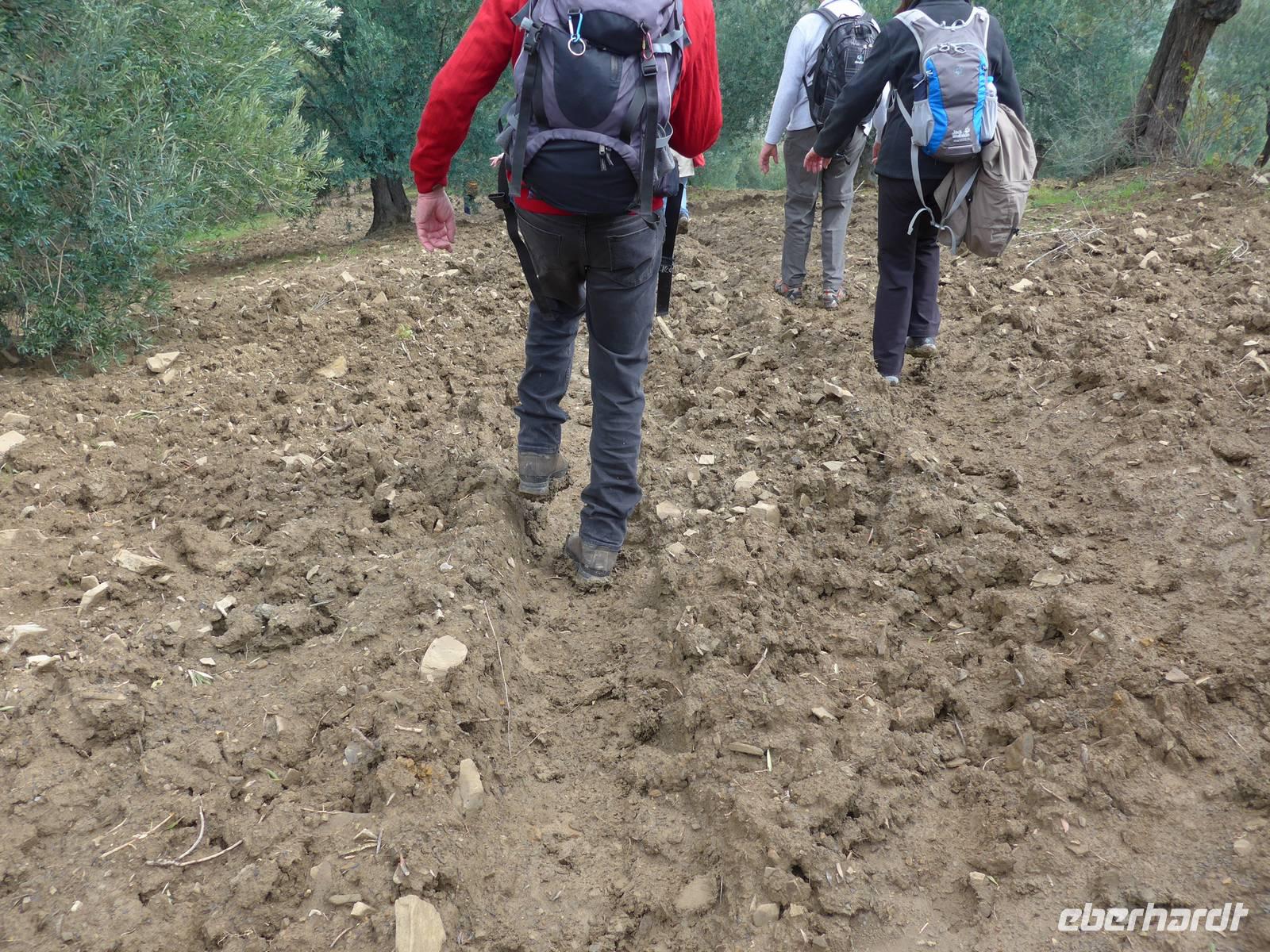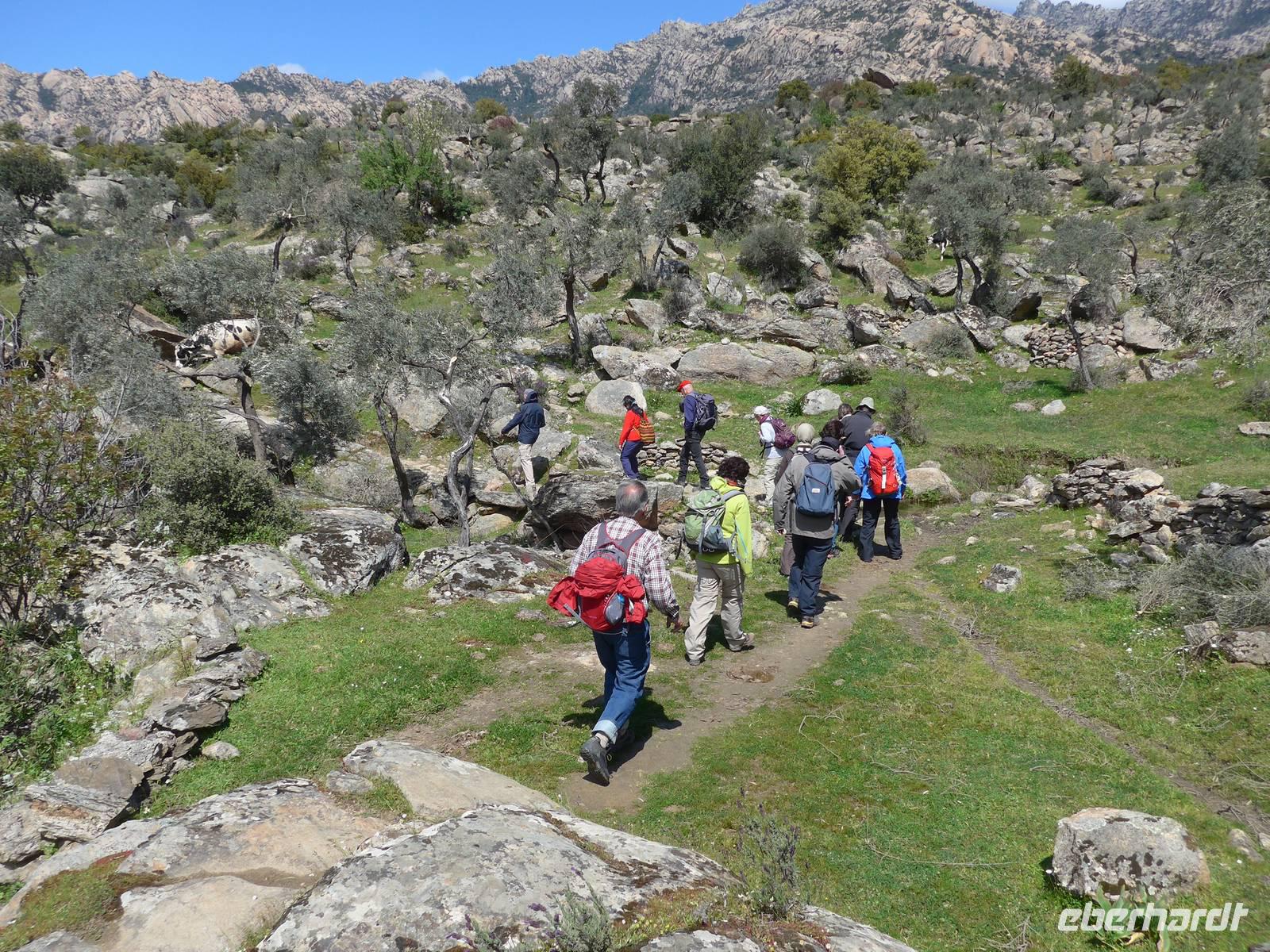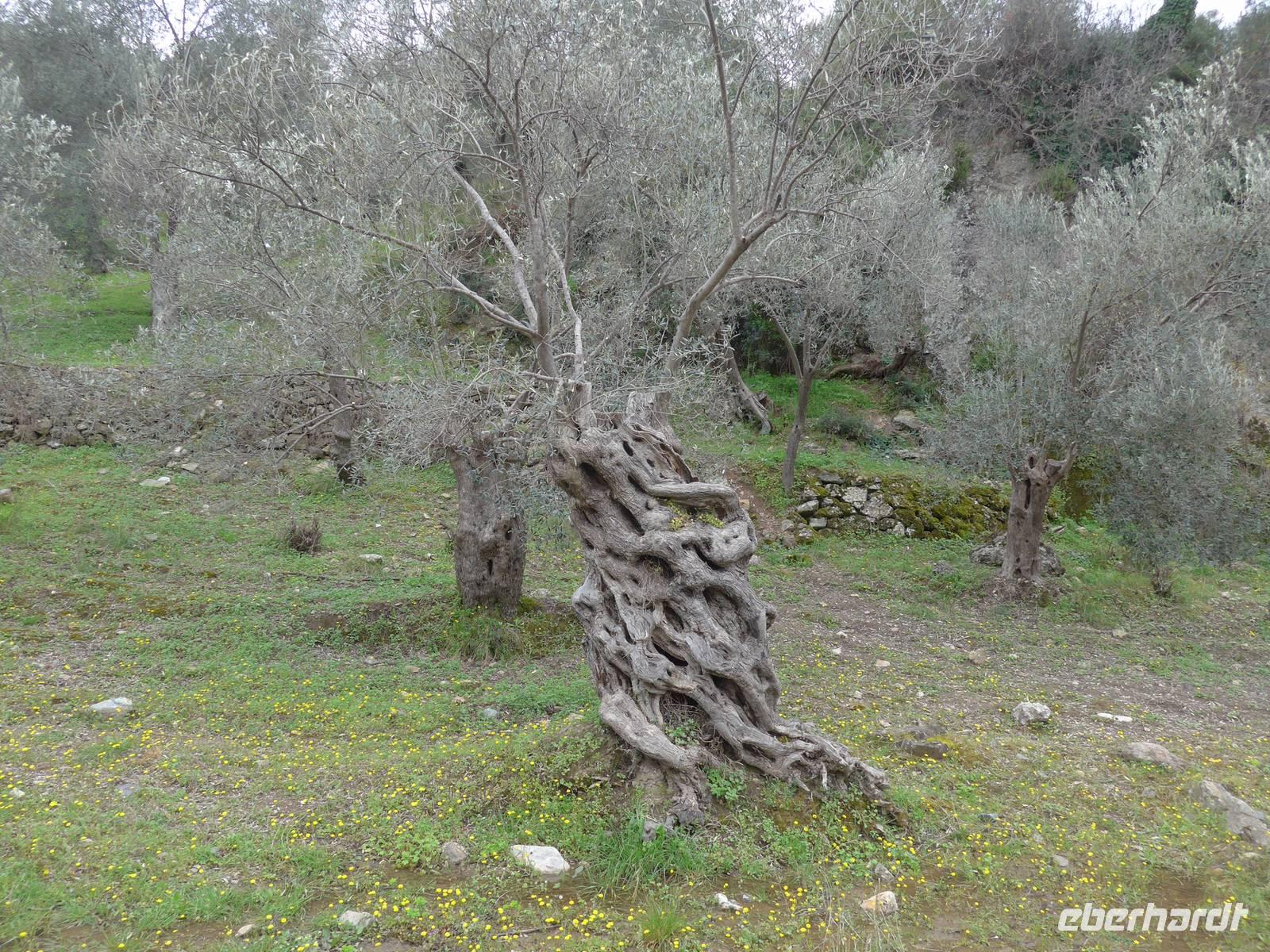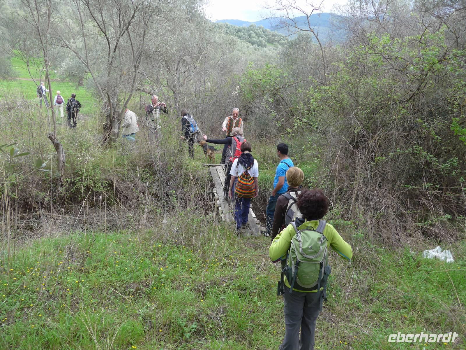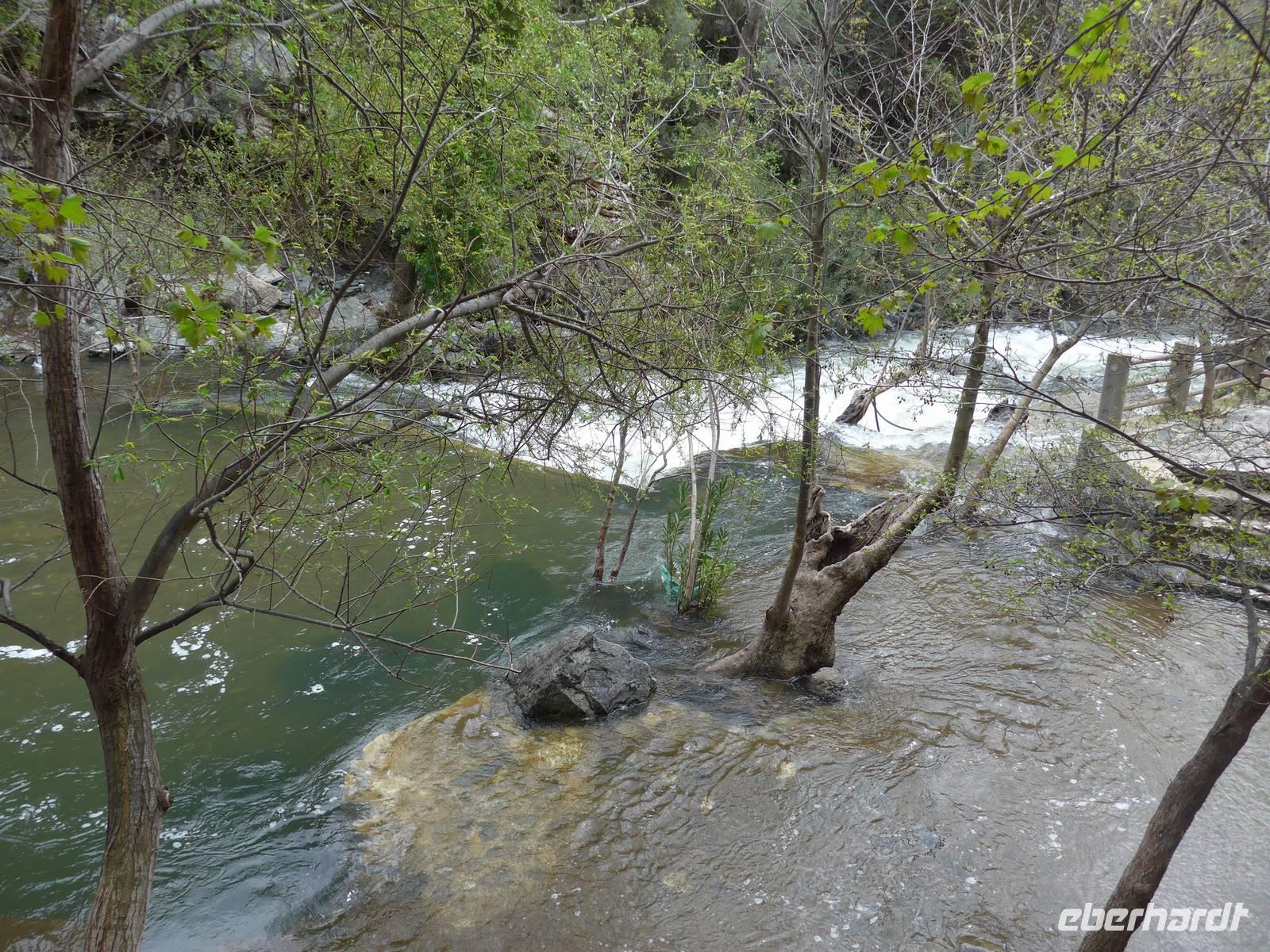 Dann führte die Wanderung durch Olivenhaine und wir sahen sogar eine Landschildkröte. Die vielen Frühjahrsblüher erfreuten besonders die "Biologen" unter uns. Gegen Mittag erreichten wir den Wasserfall und stiegen hinunter, um unten unser Picknick zu verzehren. Die Wanderung war bis dahin schon recht kräftezehrend vor allem wegen der aufgeweichten Wege. Deshalb rief Hassan unseren Bus und so konnte, wer wollte zurück fahren. Die meisten aber gingen zu Fuß wieder steil bergan und kurz vor Adatepe auf einen Aussichtsfelsen hoch über dem Ort mit Blick zum Zeus-Altar und auf das Meer. Unsere Wanderung war 15 km lang und mit je 550 Höhenmetern recht anspruchsvoll.