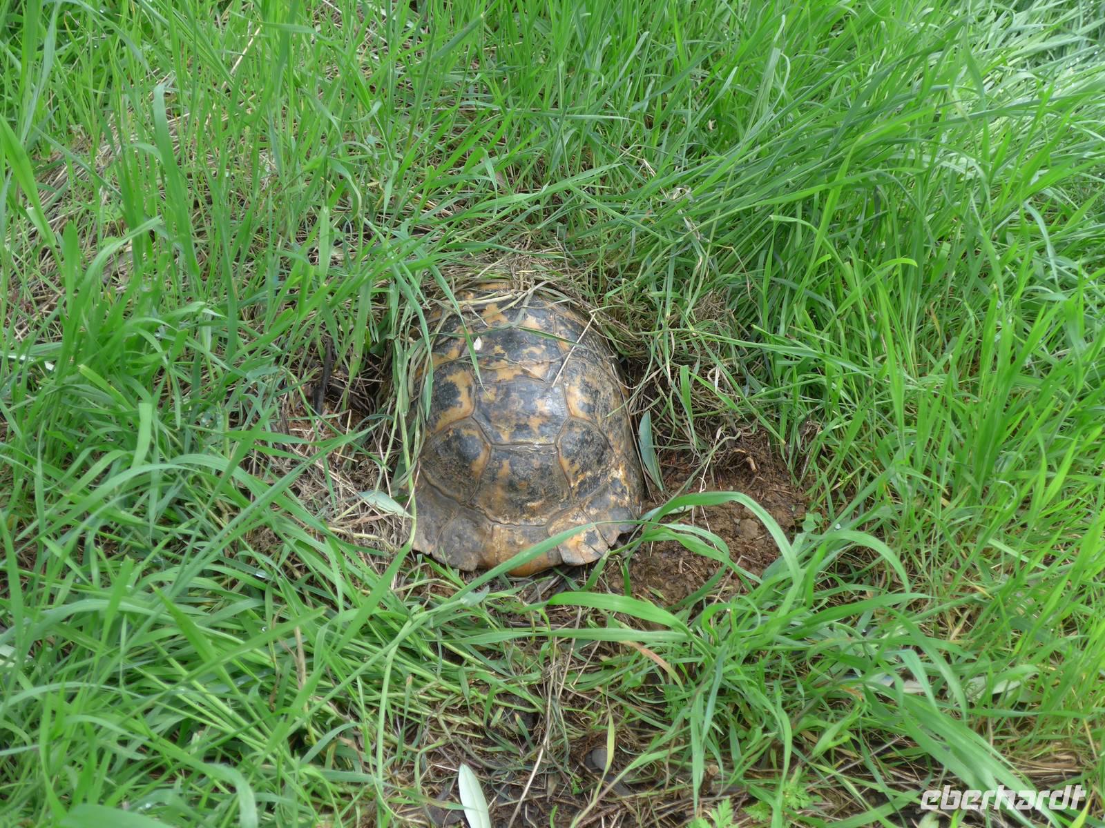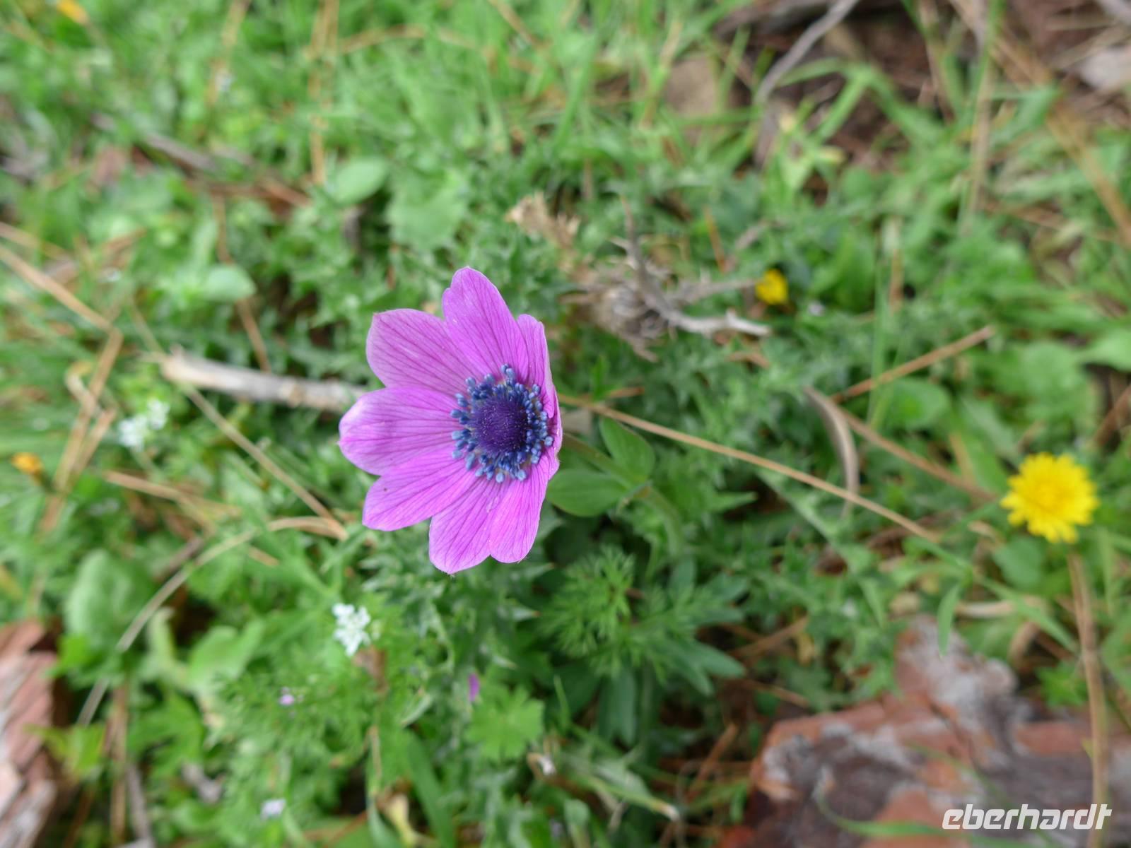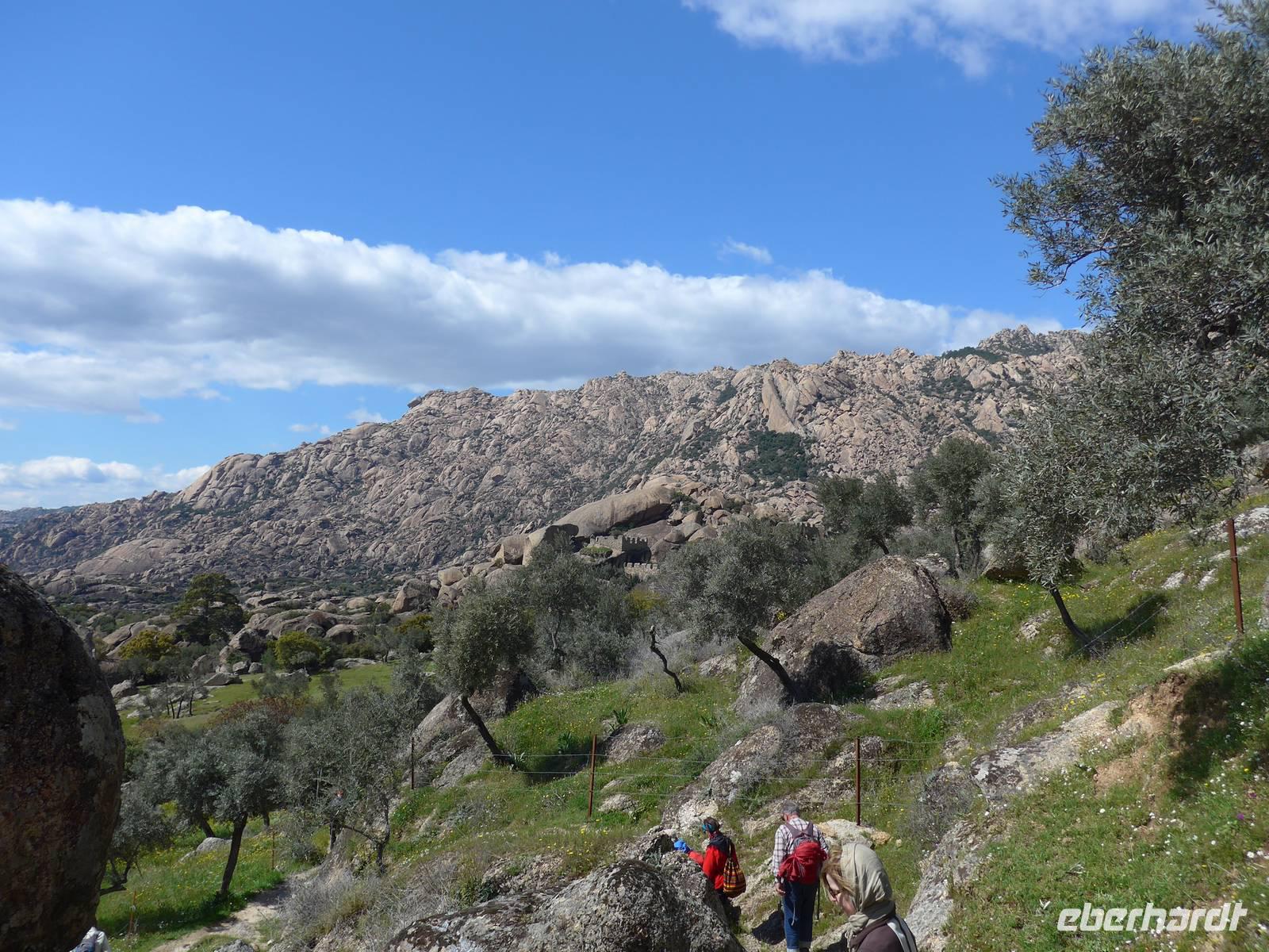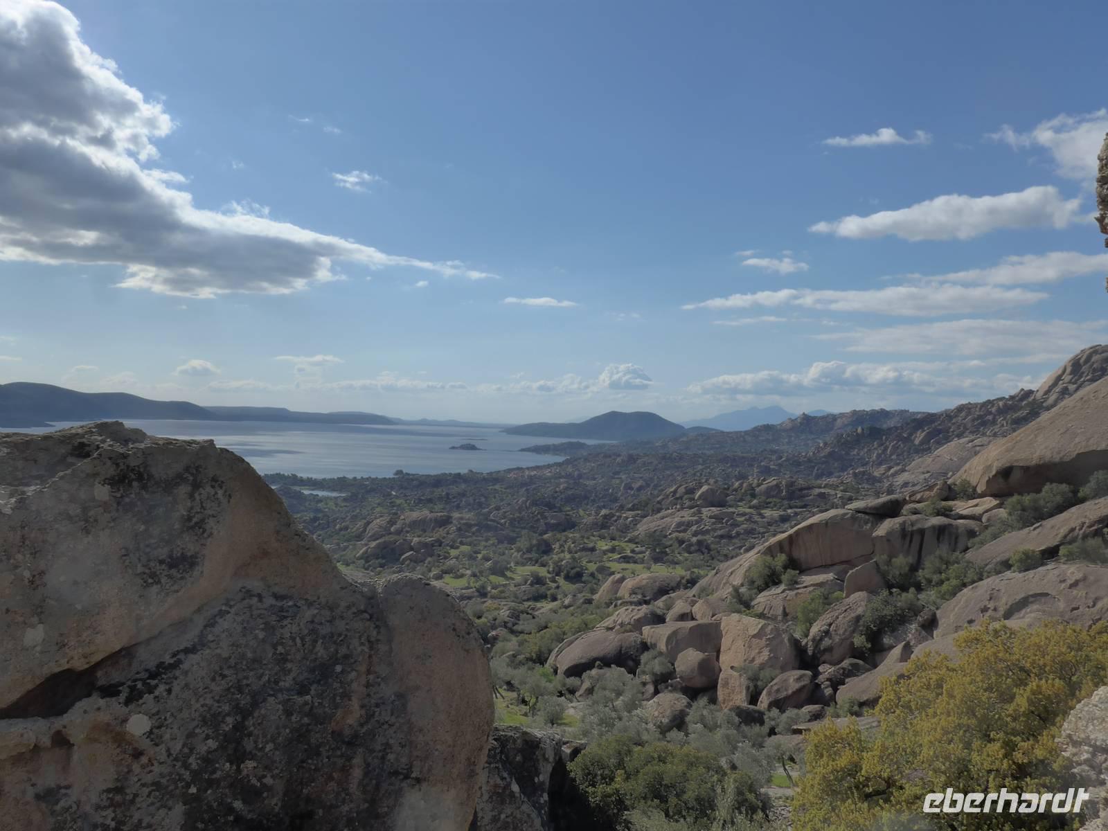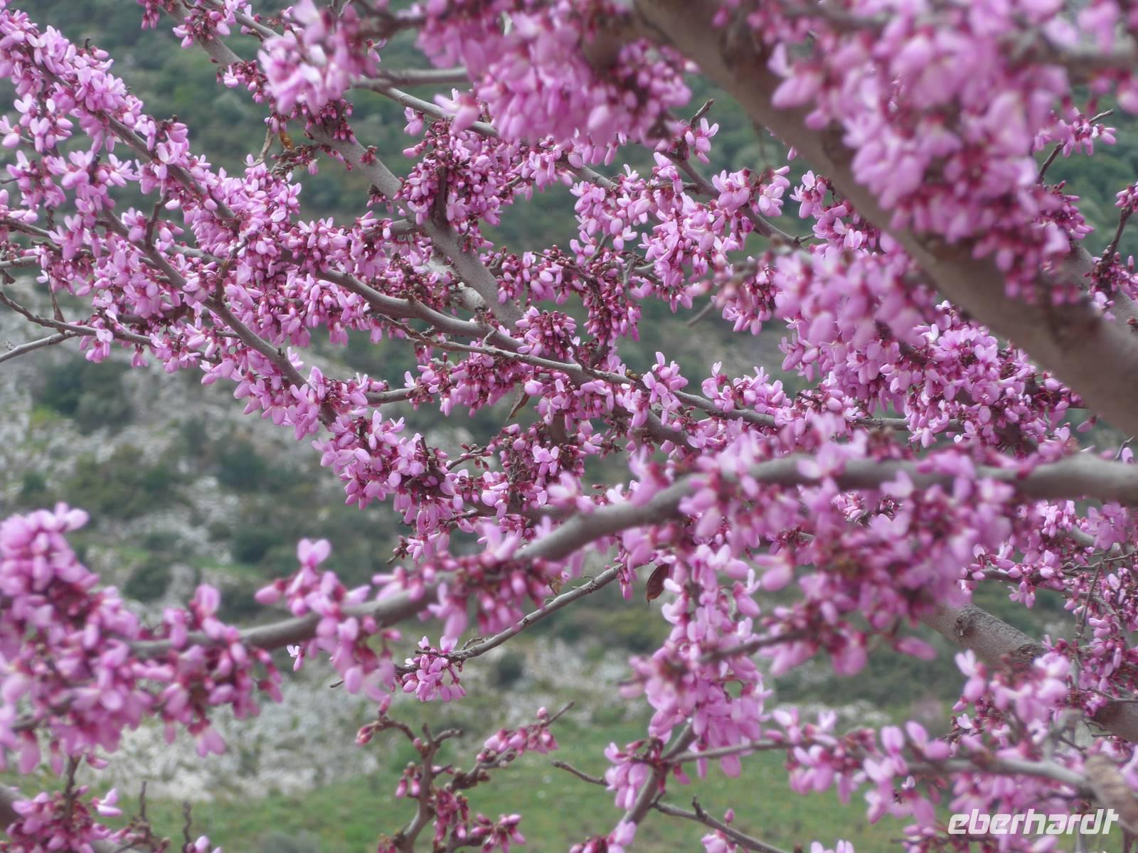Dann führte die Wanderung durch Olivenhaine und wir sahen sogar eine Landschildkröte. Die vielen Frühjahrsblüher erfreuten besonders die "Biologen" unter uns. Gegen Mittag erreichten wir den Wasserfall und stiegen hinunter, um unten unser Picknick zu verzehren. Die Wanderung war bis dahin schon recht kräftezehrend vor allem wegen der aufgeweichten Wege. Deshalb rief Hassan unseren Bus und so konnte, wer wollte zurück fahren. Die meisten aber gingen zu Fuß wieder steil bergan und kurz vor Adatepe auf einen Aussichtsfelsen hoch über dem Ort mit Blick zum Zeus-Altar und auf das Meer. Unsere Wanderung war 15 km lang und mit je 550 Höhenmetern recht anspruchsvoll.