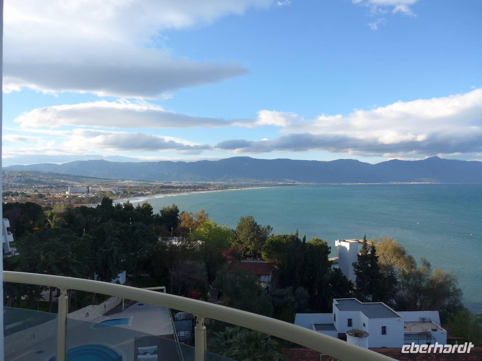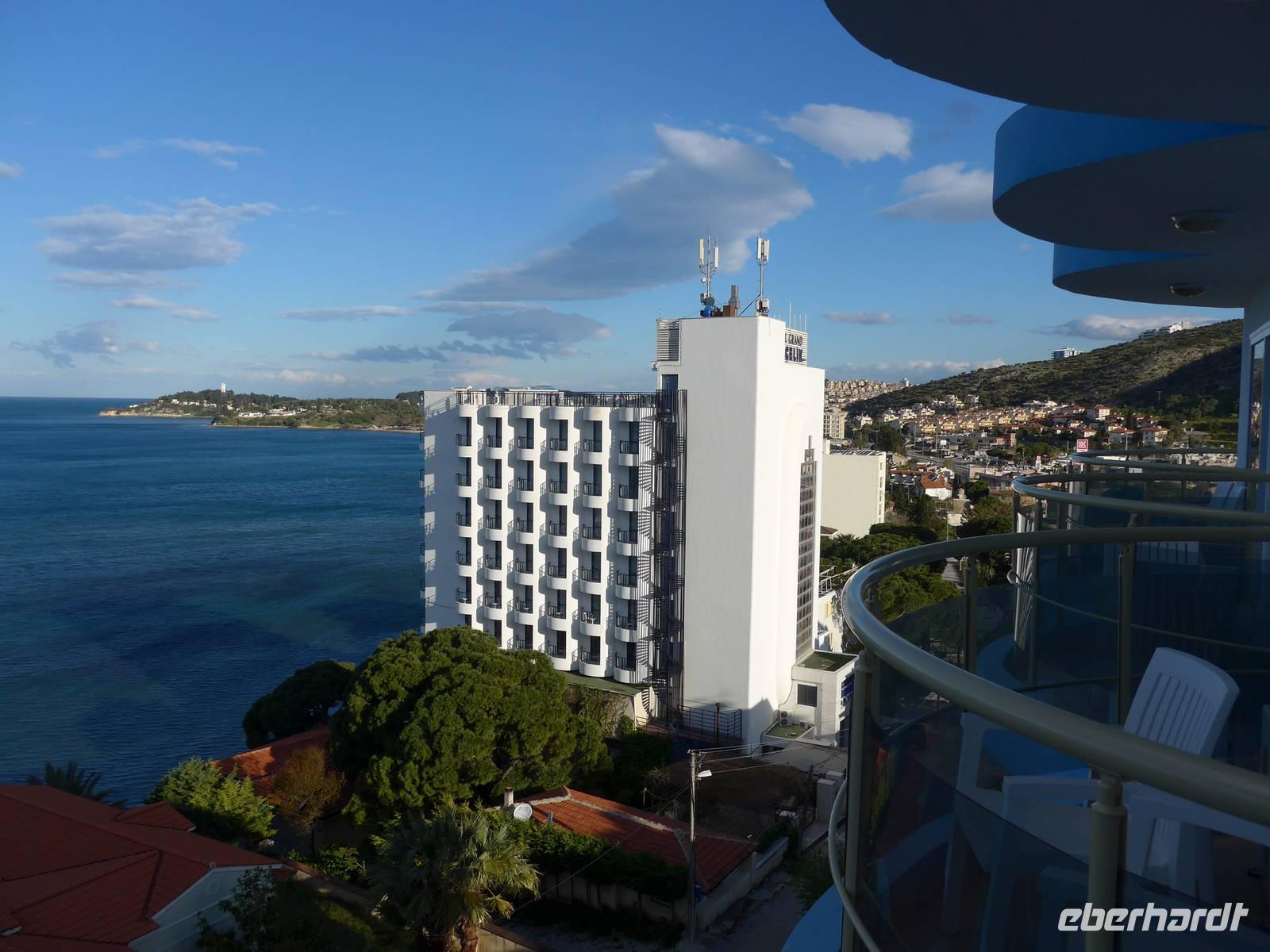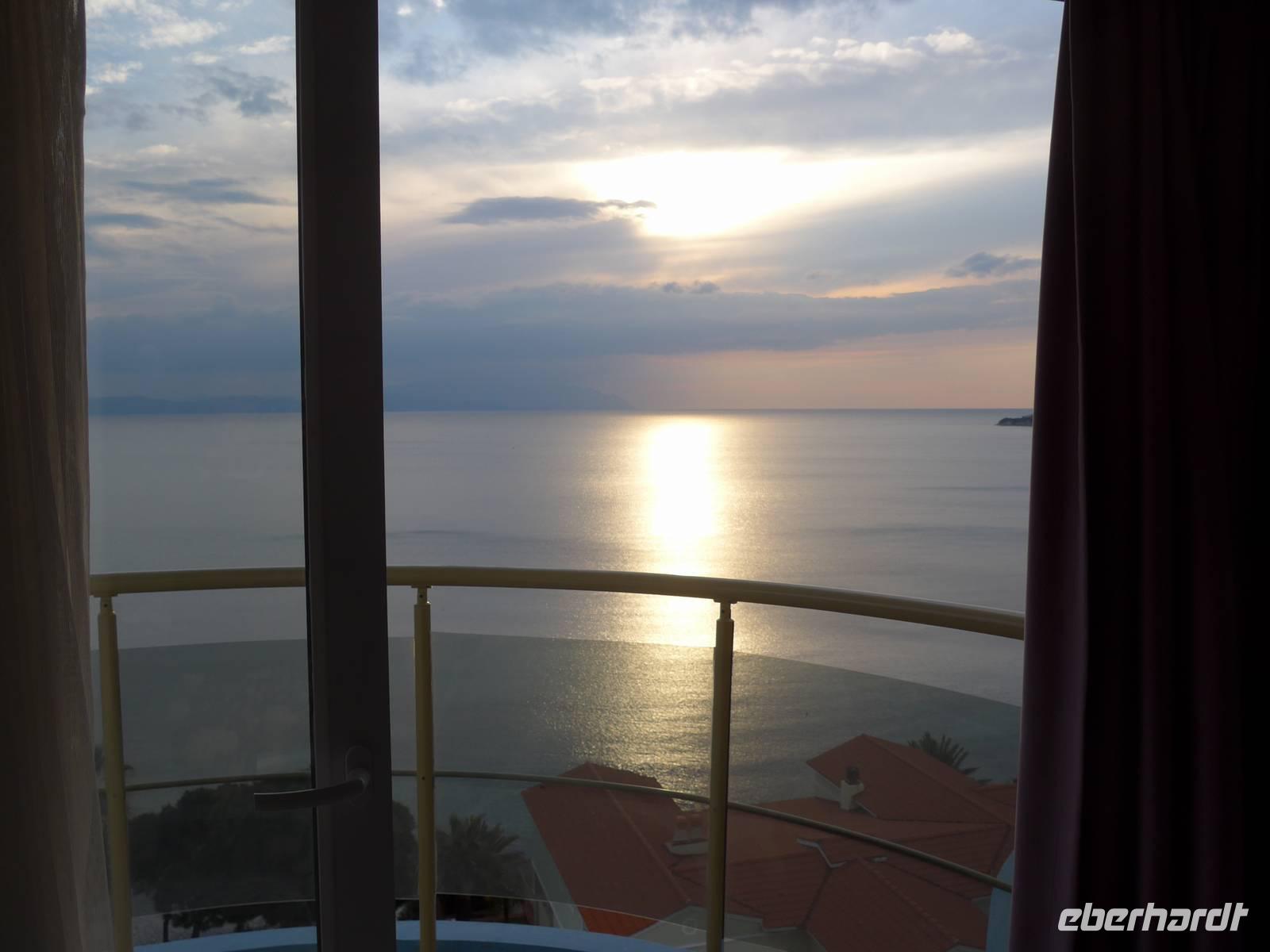 Das Hotel "Aurora" direkt am Meer war so ganz anders als unser gemütliches Bergdorfhotel. Unsere Zimmer in den oberen Etagen boten aber einen tollen Blick zum Sonnenuntergang über das Meer hinüber zur griechischen Insel Samos.
