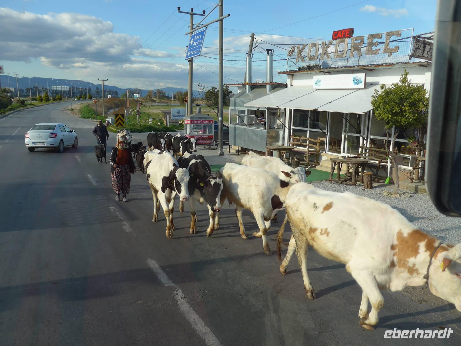 In einem Dorf verrieten große Schilder mit der Aufschrift "GÖZLEME", daß hier leckere Fladenbrote frisch gebacken werden. Wir fanden alle Platz in einem kleinen Lokal und probierten Fladenbrot mit Käse und mit Kartoffeln. Köstlich, und dazu gab es türkischen Tee. Nun waren wir gestärkt für unsere Wanderung.