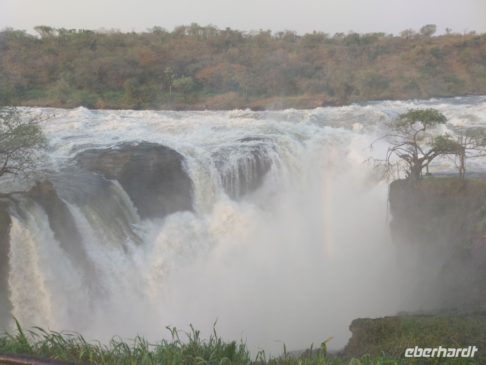 Am Nachmittag fuhren wir weiter zum Murchison Falls Nationalpark. Nach erfolgter Registrierung besichtigten wir noch den Murchison Fall. Der Wasserfall, welcher dem Park seinen Namen gibt. Ohne weitere Besucher konnten wir dem beeindruckenden Schauspiel zusehen, wie das Wasser des Victoria-Nils durch den 7 m breiten Spalt 42 m in die Tiefe stürzt.