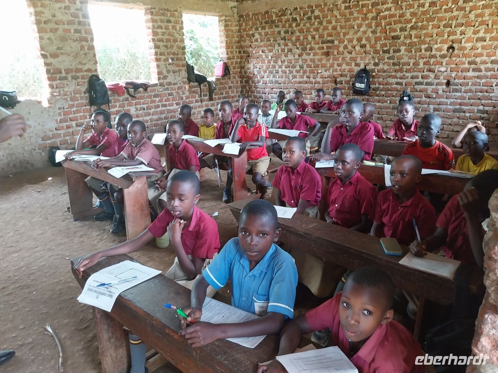 Anschließend besuchten wir die örtliche Schule. Der Schulleiter begrüßte uns und zeigte uns die Klassenzimmer, den Unterricht der älteren Klassenstufen, aber auch die Schlafräume an, da eine Vielzahl der Kinder aufgrund des langen Schulwegs leider nur zu den Ferien nach Hause kommen kann.