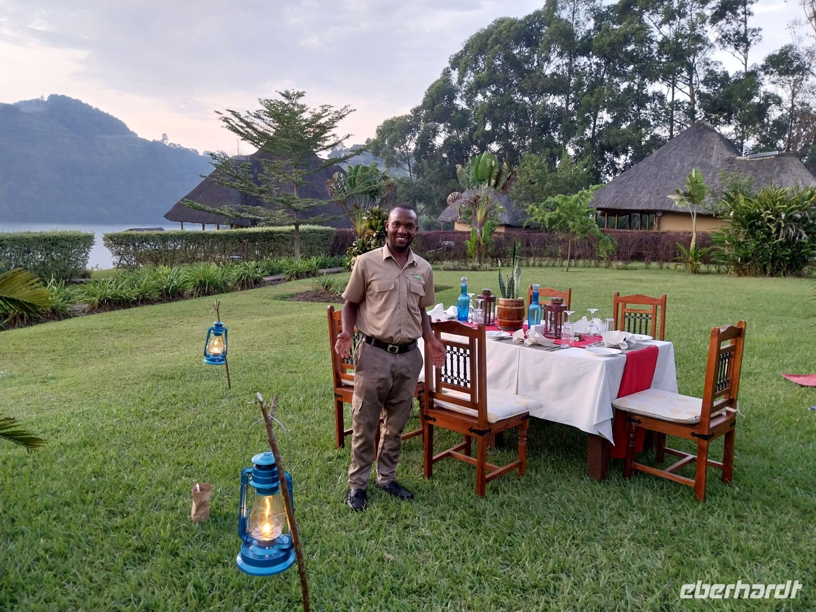 Bei unserer Rückkunft wurden zuerst seitens der Angestellten unserer Schuhe geputzt. Am Abend erhielten wir noch ein tolles Abendessen unter freiem Himmel mit Kerzenschein in unserer Lodge.